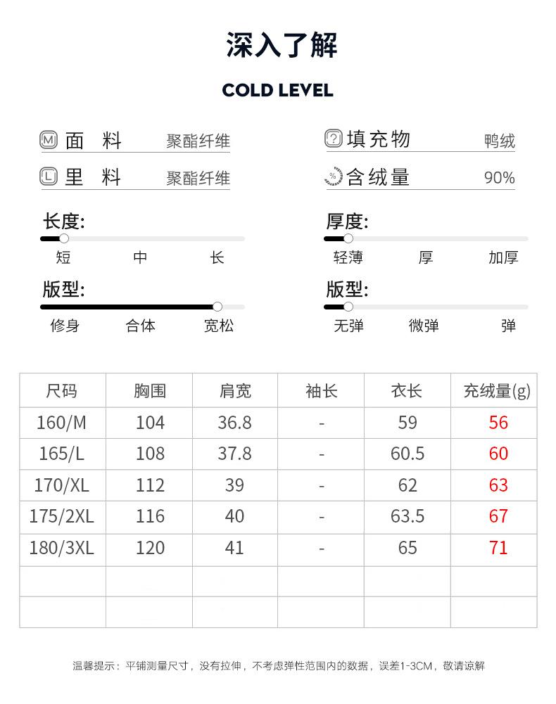 160/M, 165/L, 170/XL, 175/2XL, 180/3XL
