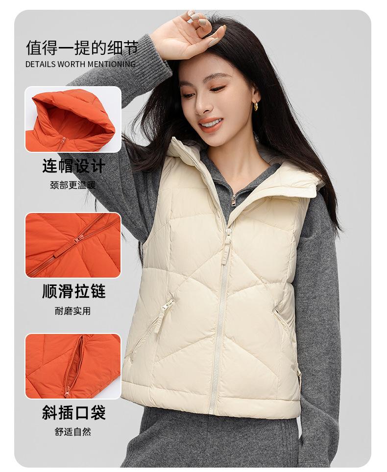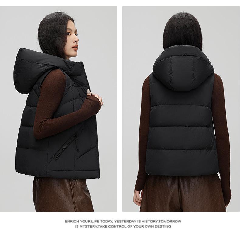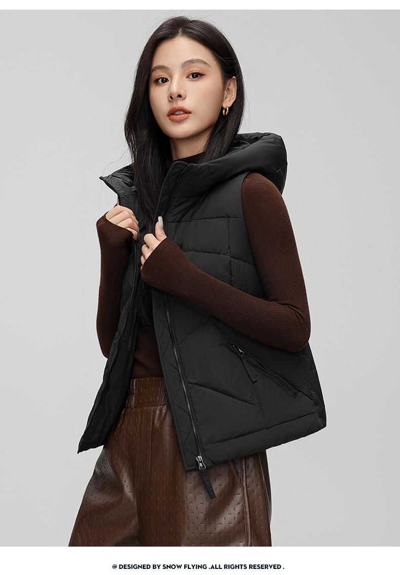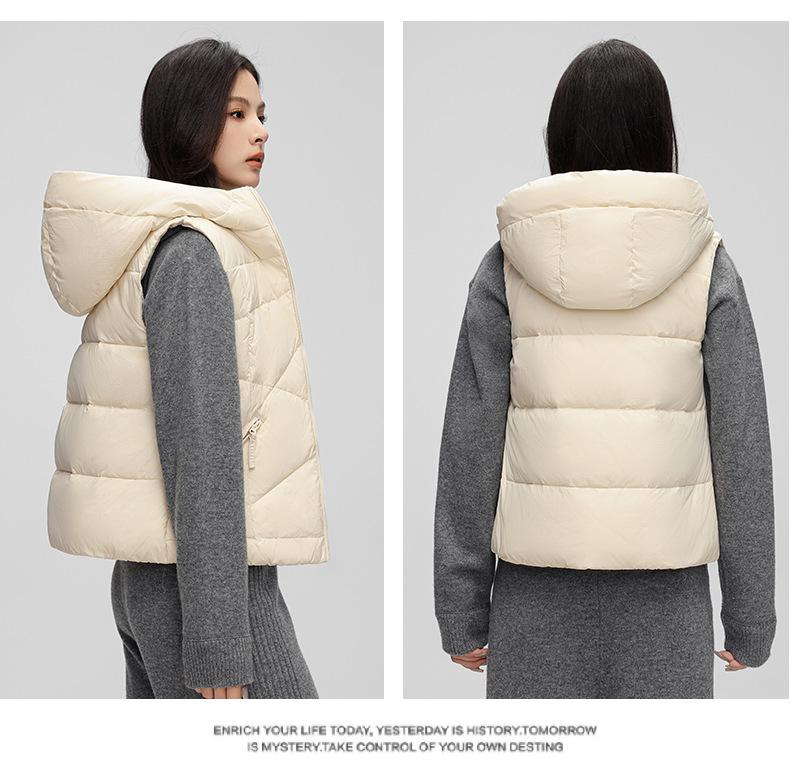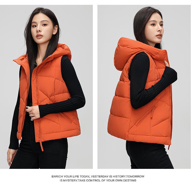 Chaqueta Chaleco Ligero de Plumón para Nieve para Mujer Corto Otoño e Invierno Nuevo con Capucha Coreano para Mujer Chaleco de Plumón de Pato