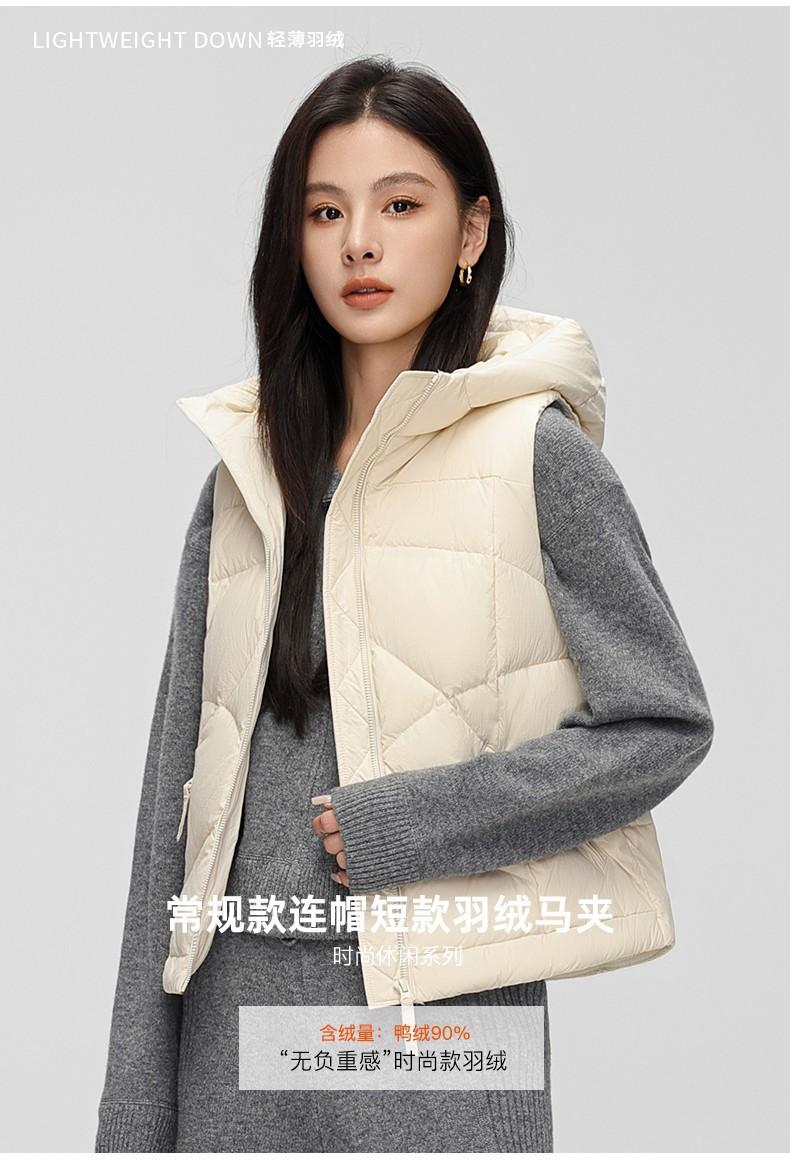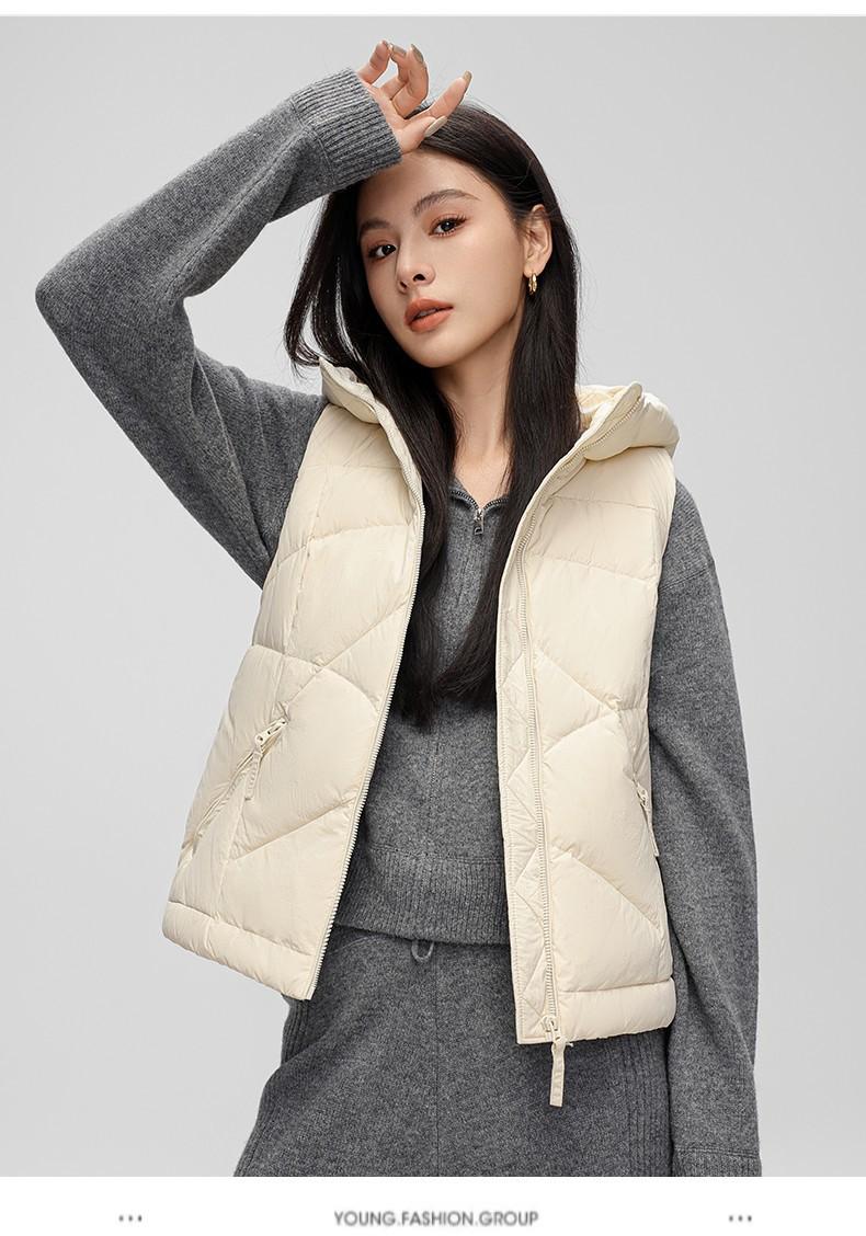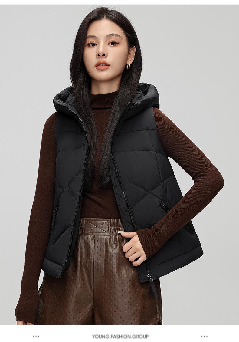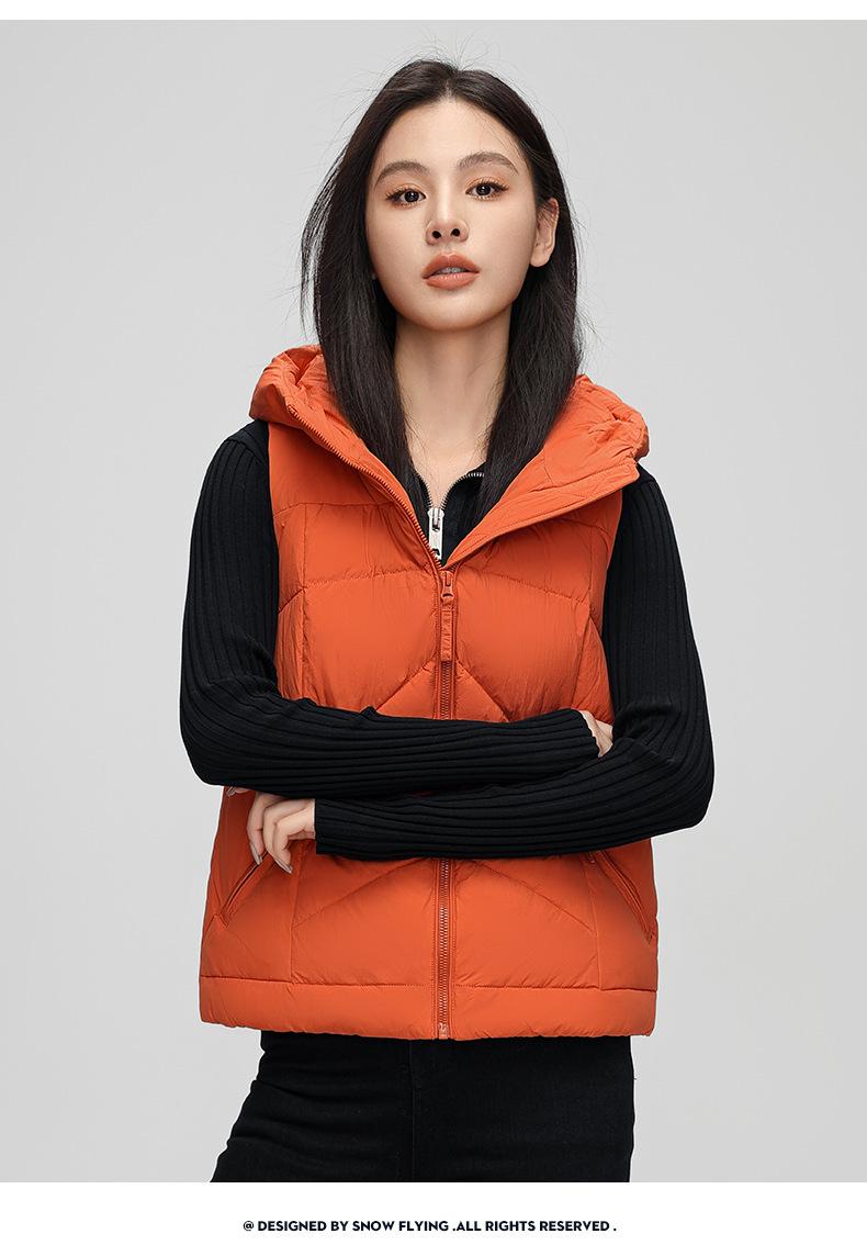 Chaqueta Chaleco Ligero de Plumón para Nieve para Mujer Corto Otoño e Invierno Nuevo con Capucha Coreano para Mujer Chaleco de Plumón de Pato