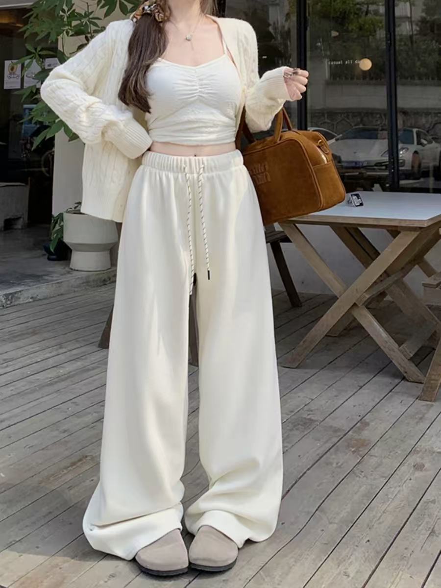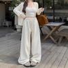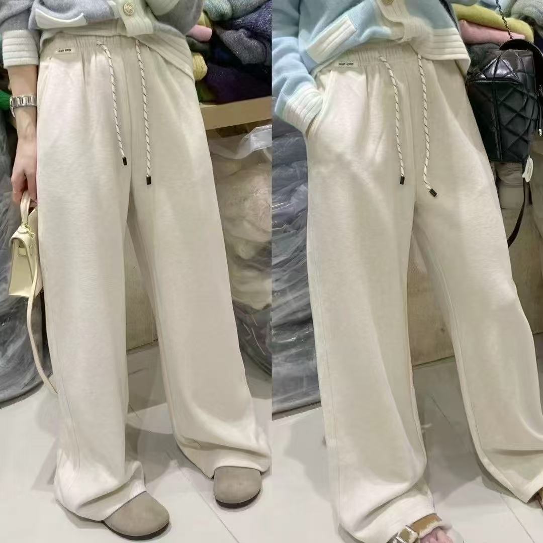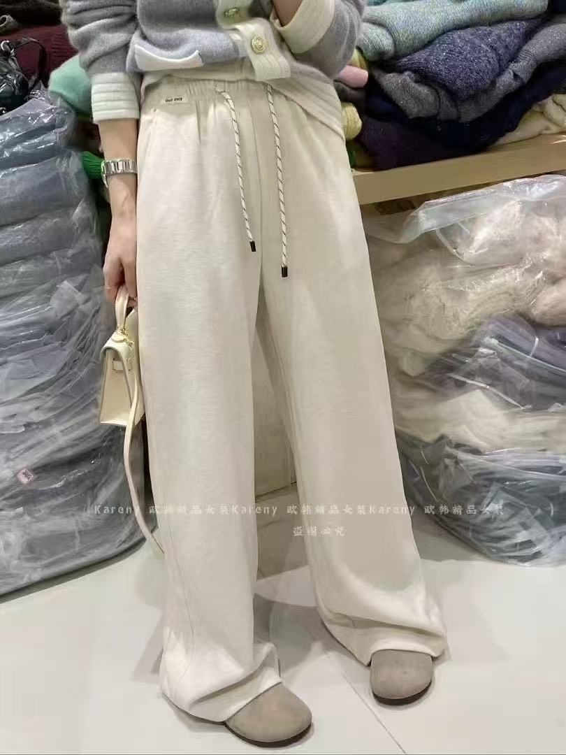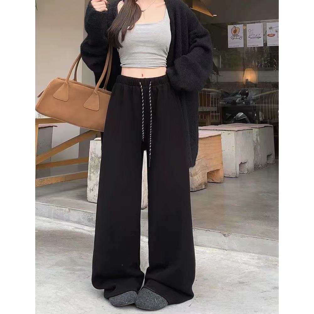 Pantalones casuales de pernera ancha con cordón en la cintura elástica para mujer 2025 primavera nuevo estilo coreano holgados delgados cintura alta pantalones largos