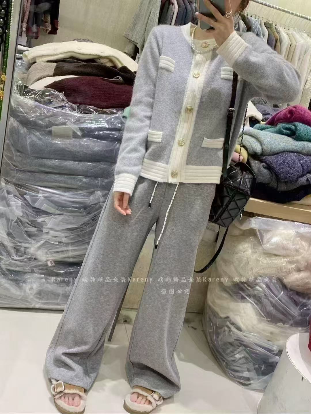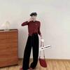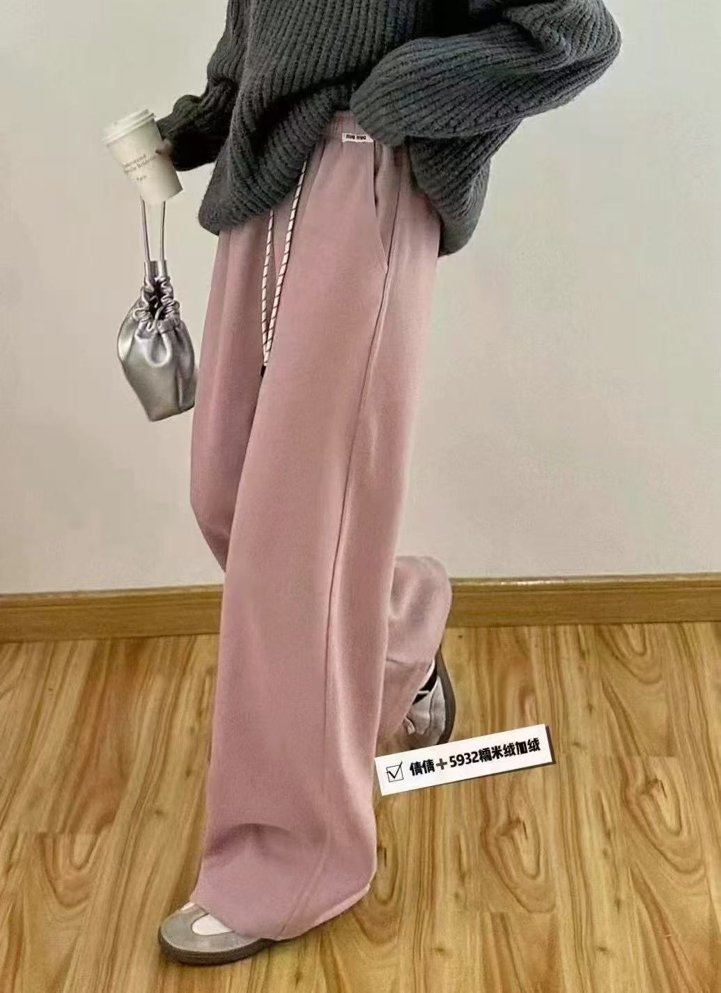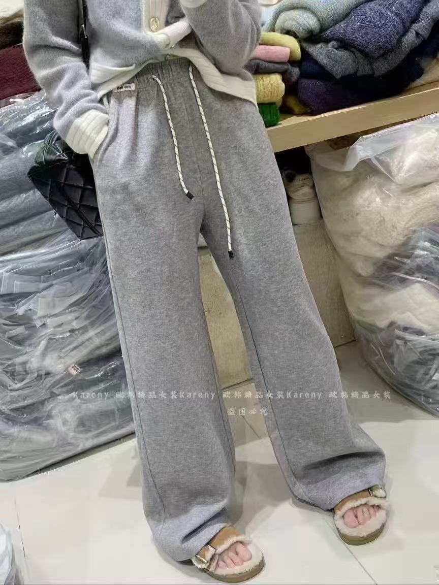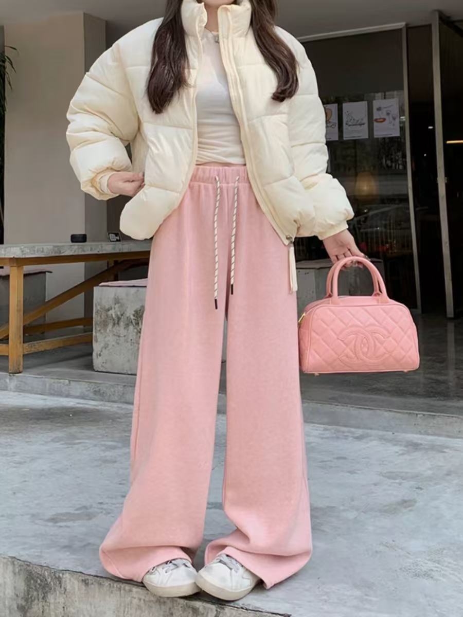Pantalones casuales de pernera ancha con cordón en la cintura elástica para mujer 2025 primavera nuevo estilo coreano holgados delgados cintura alta pantalones largos