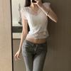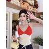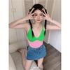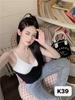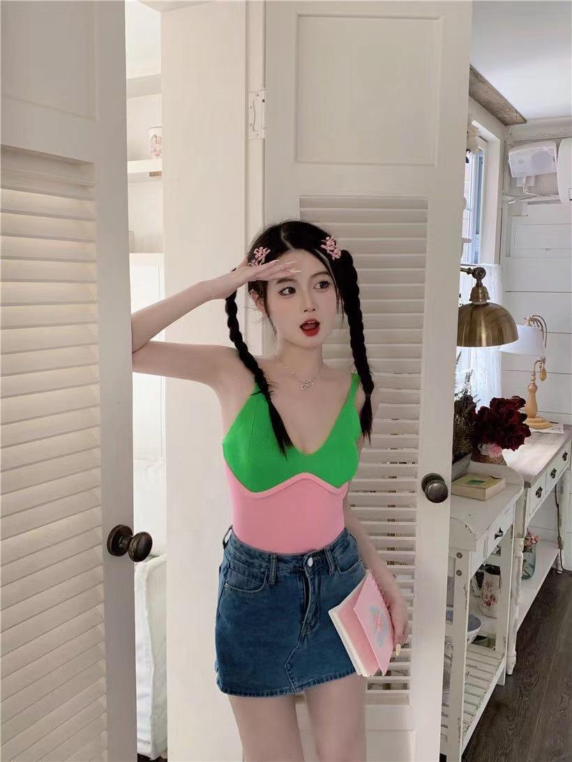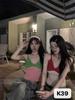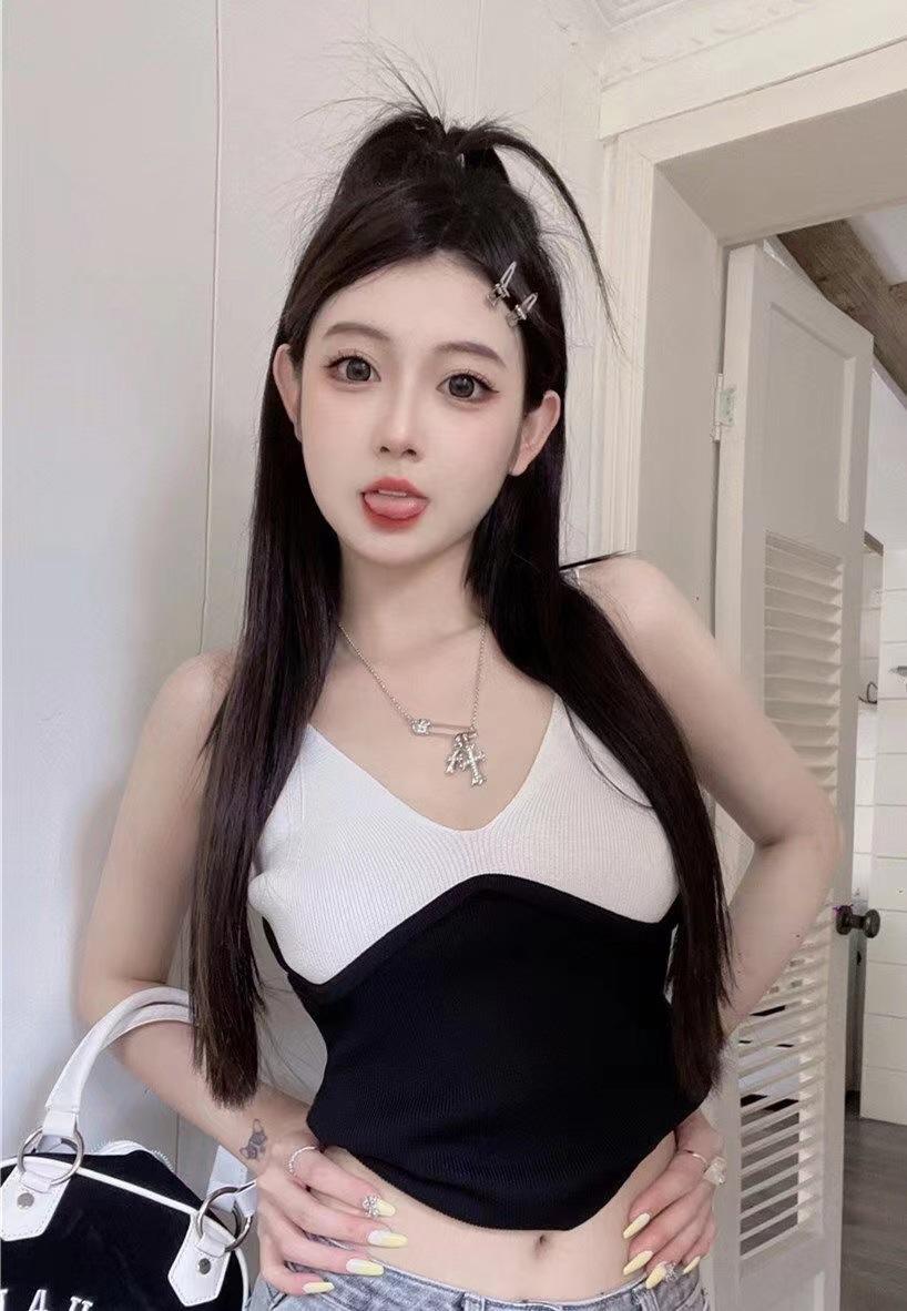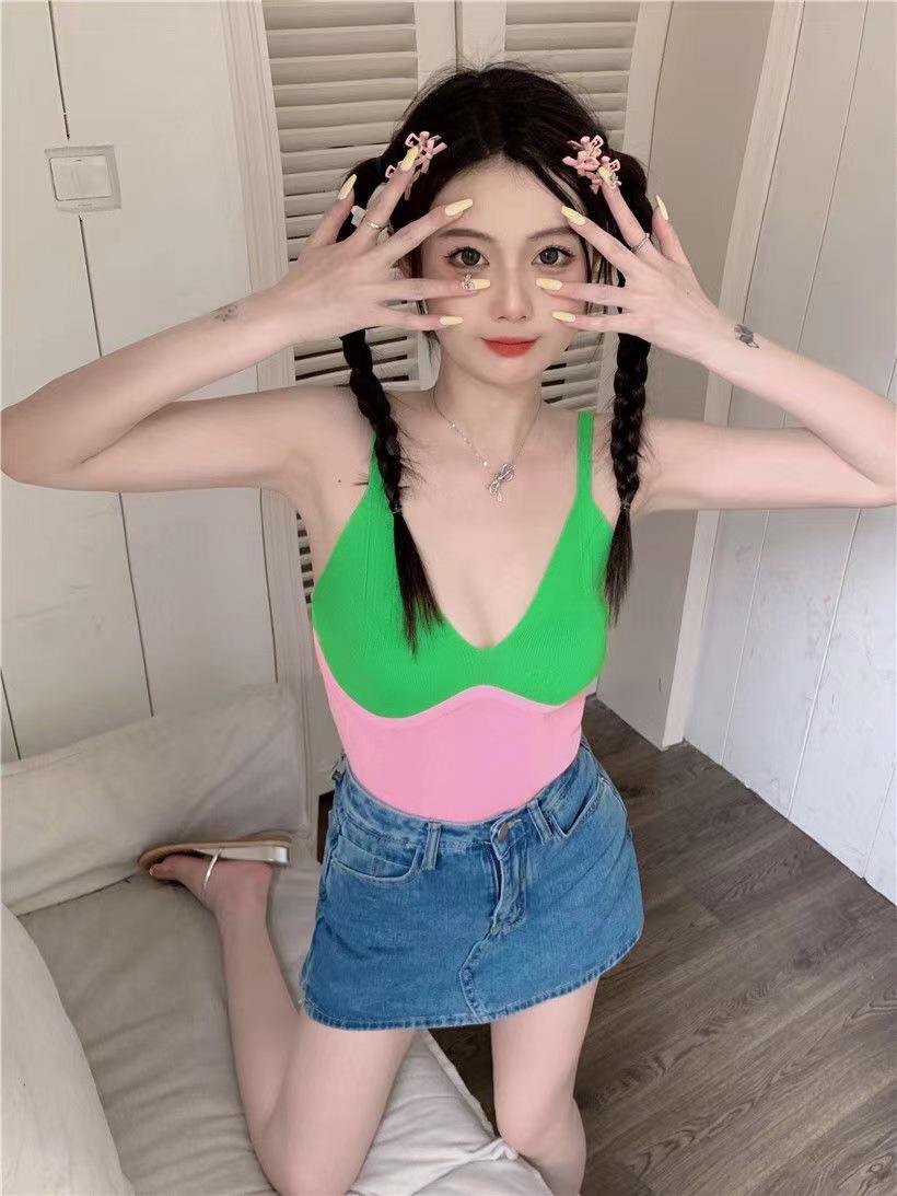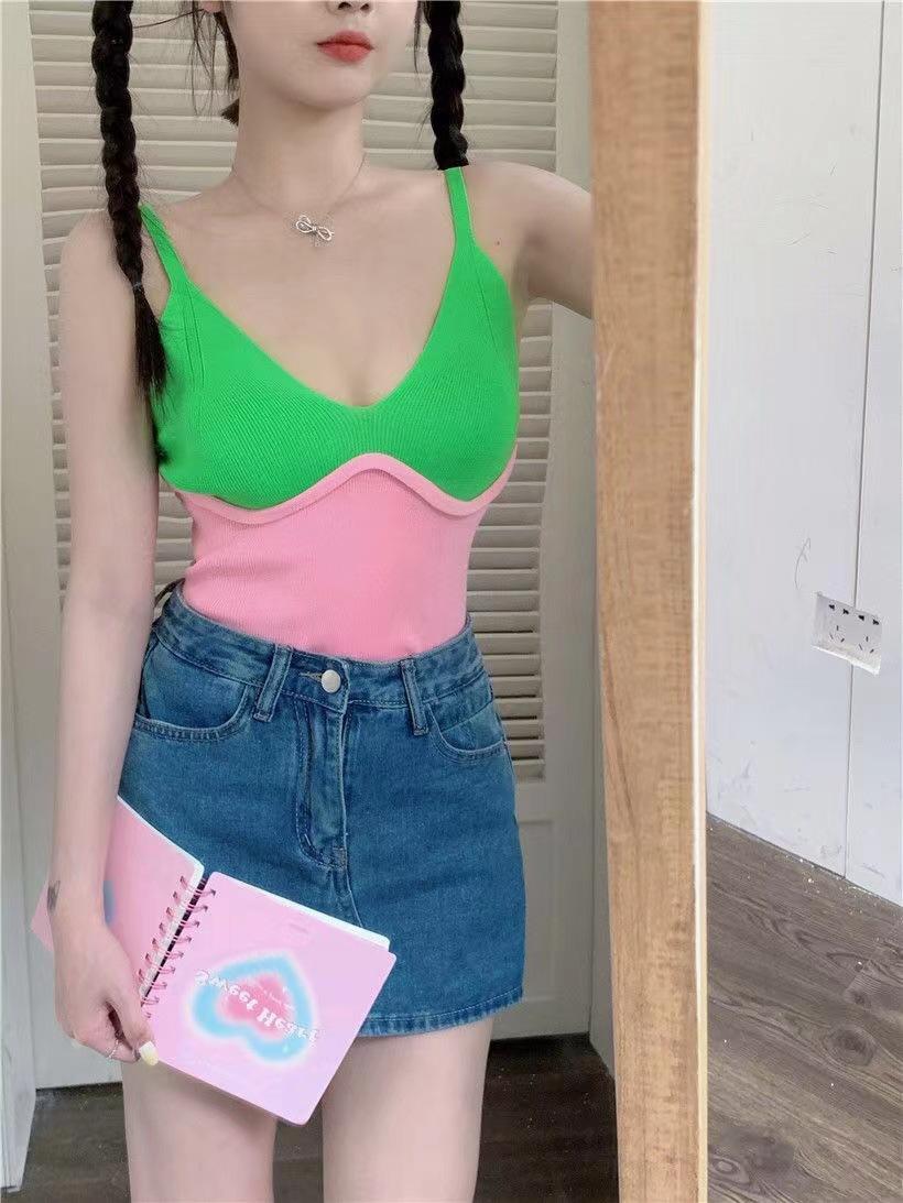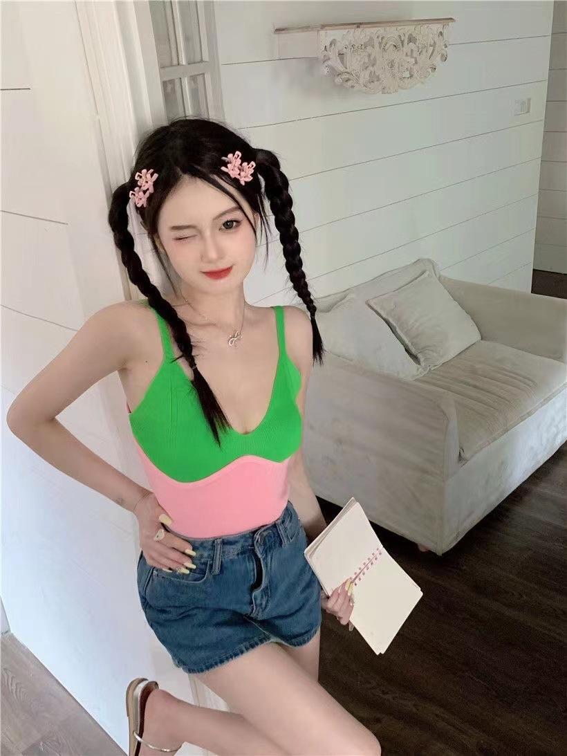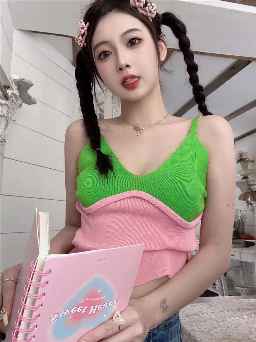 Retro Rojo Sexy Sling para Mujer Verano Nuevo Chaleco Seda de Hielo Look Adelgazante Cuello V Top Corto sin Mangas Trendy