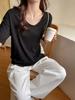 Verano Nuevo Negro Cuello en V Suelto Nicho de Alta Gama Camiseta de Manga Corta para Mujer Estilo Lazy Casual Sencillo Camiseta Básica