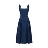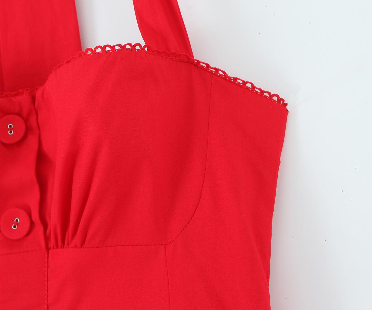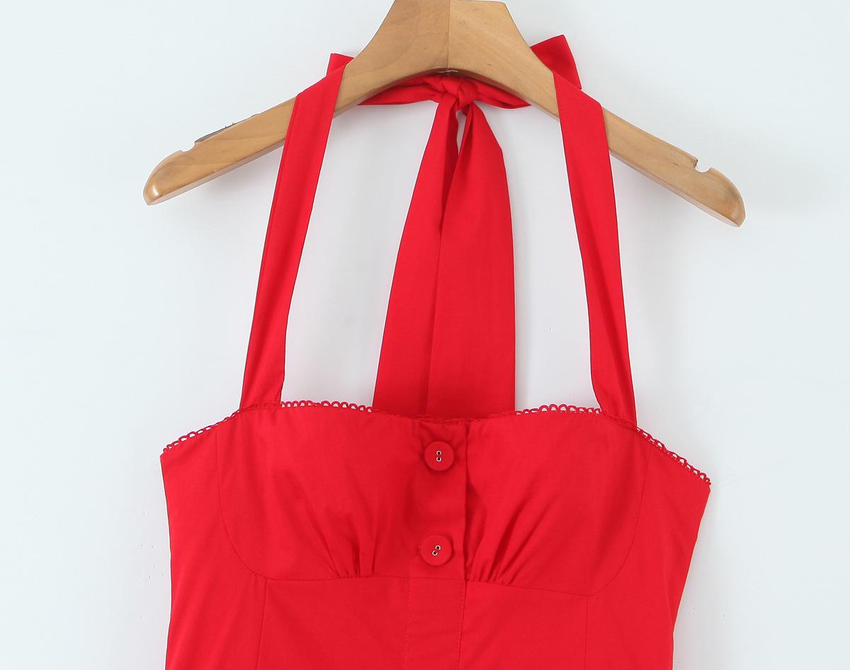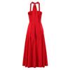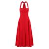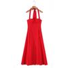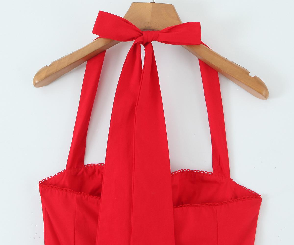 Estilo Europeo y Americano Francés Retro Elegante Cuello Halter Tirantes de Lazo Sexy Espalda Descubierta Cintura Top Tubo Vestido Falda Larga