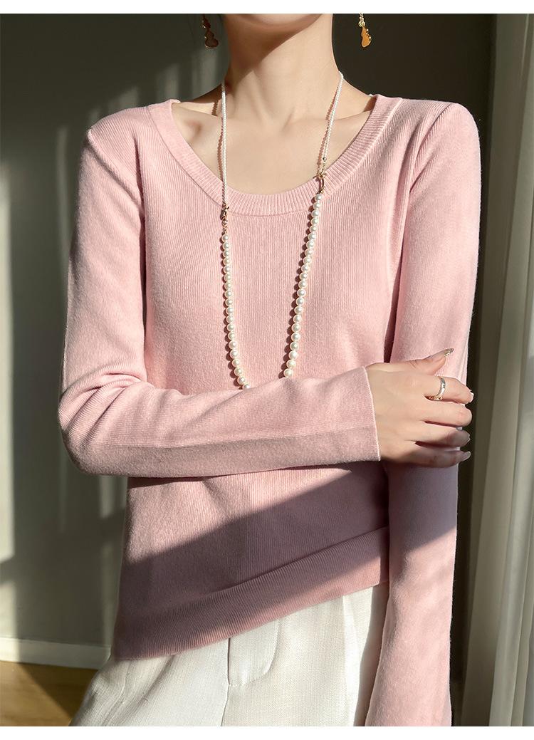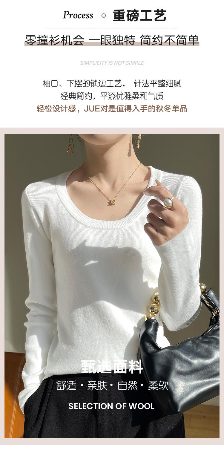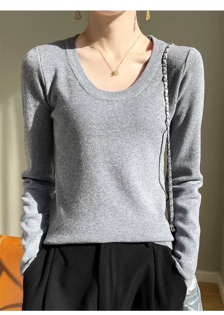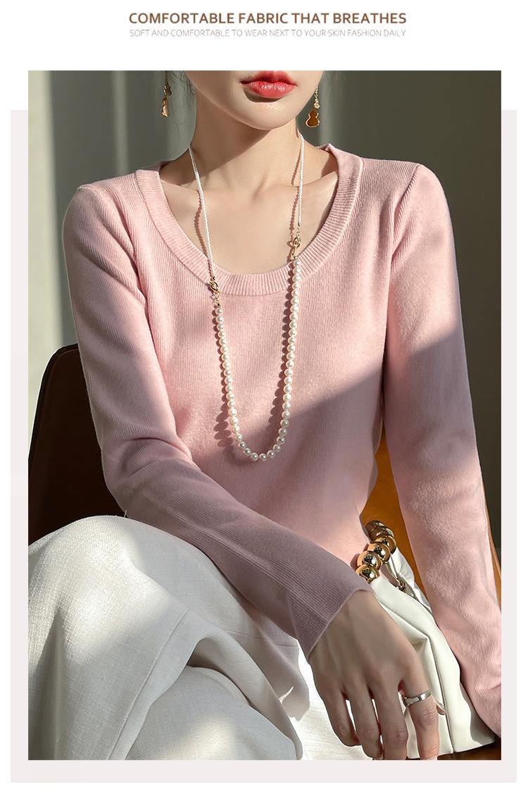 Suéter de Otoño Temprano 2024 Nuevo Cuello Redondo Manga Larga para Mujer Color Sólido Holgado Sencillo Elegante Combinable Camiseta Básica Top