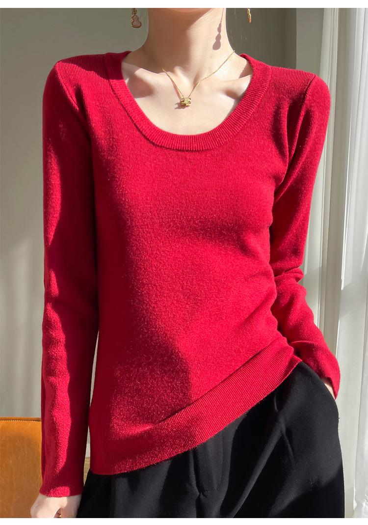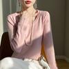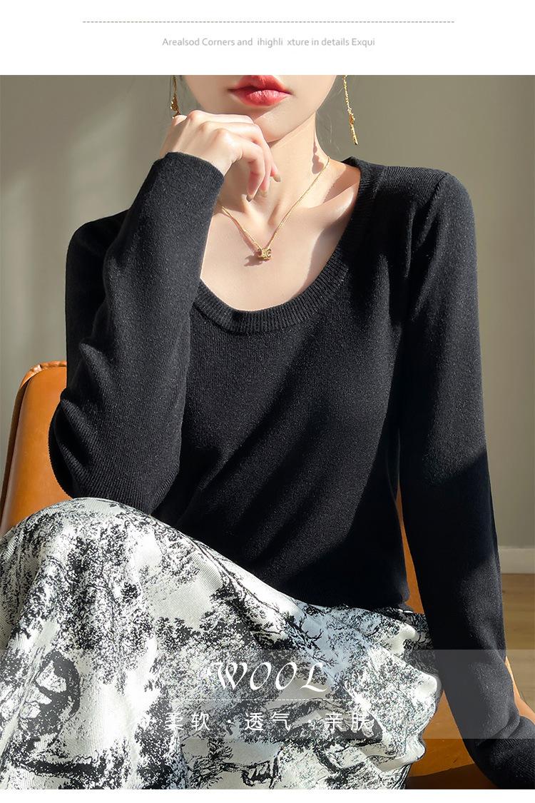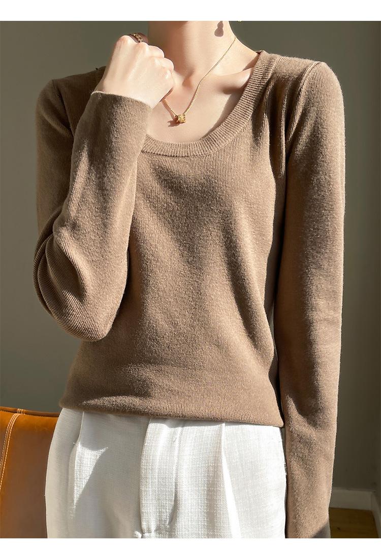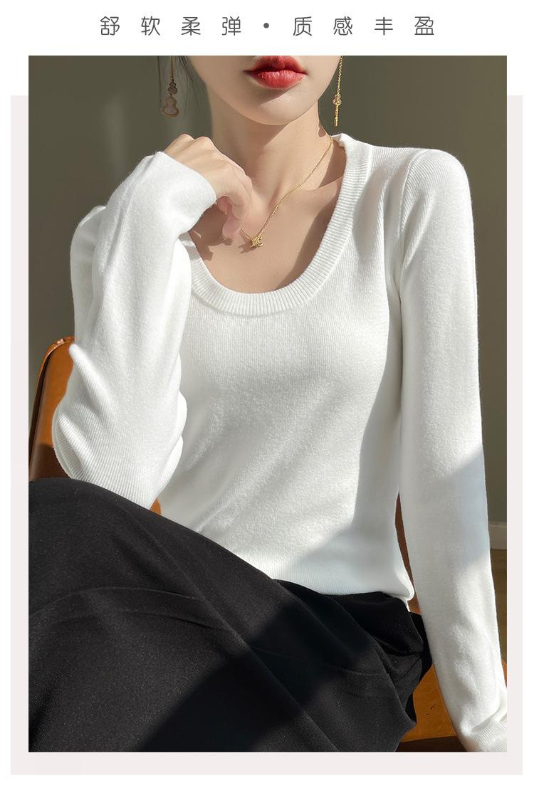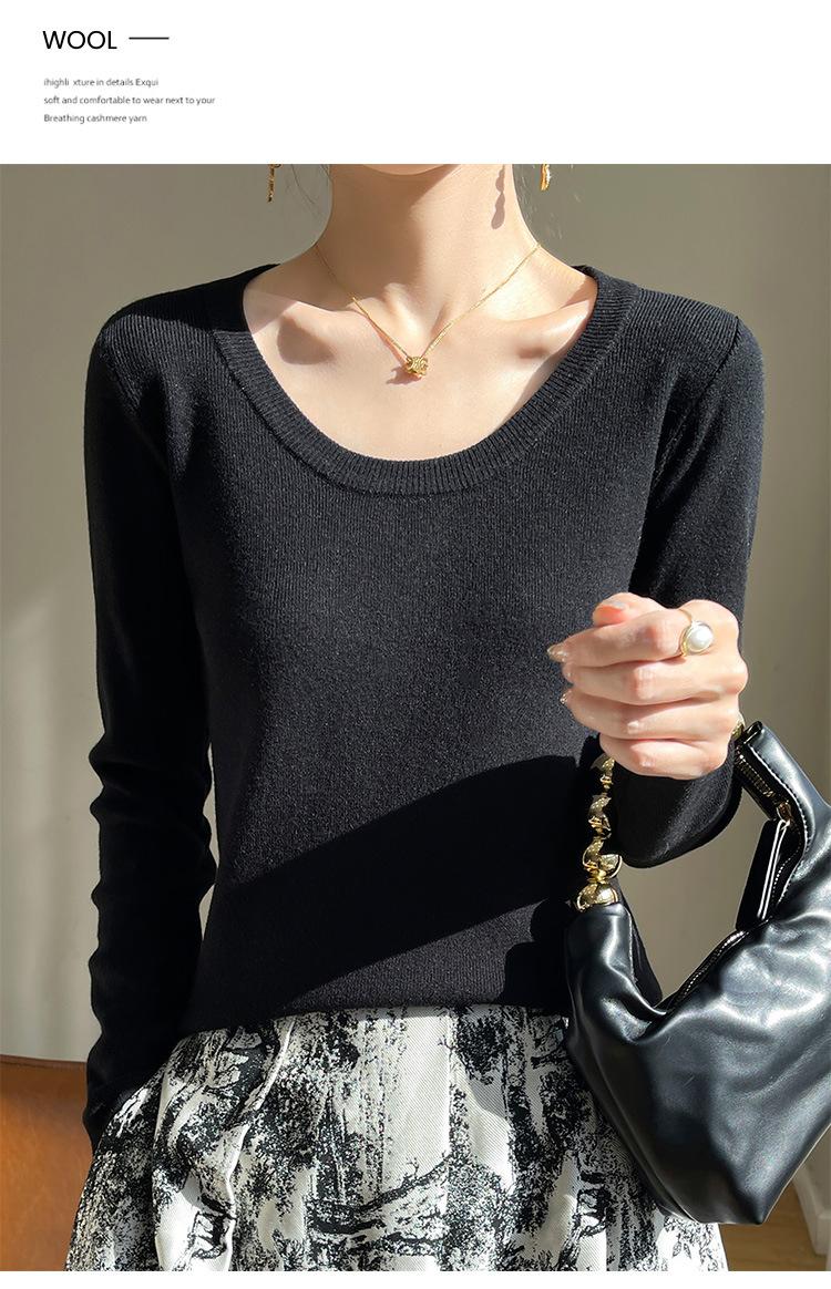 Suéter de Otoño Temprano 2024 Nuevo Cuello Redondo Manga Larga para Mujer Color Sólido Holgado Sencillo Elegante Combinable Camiseta Básica Top