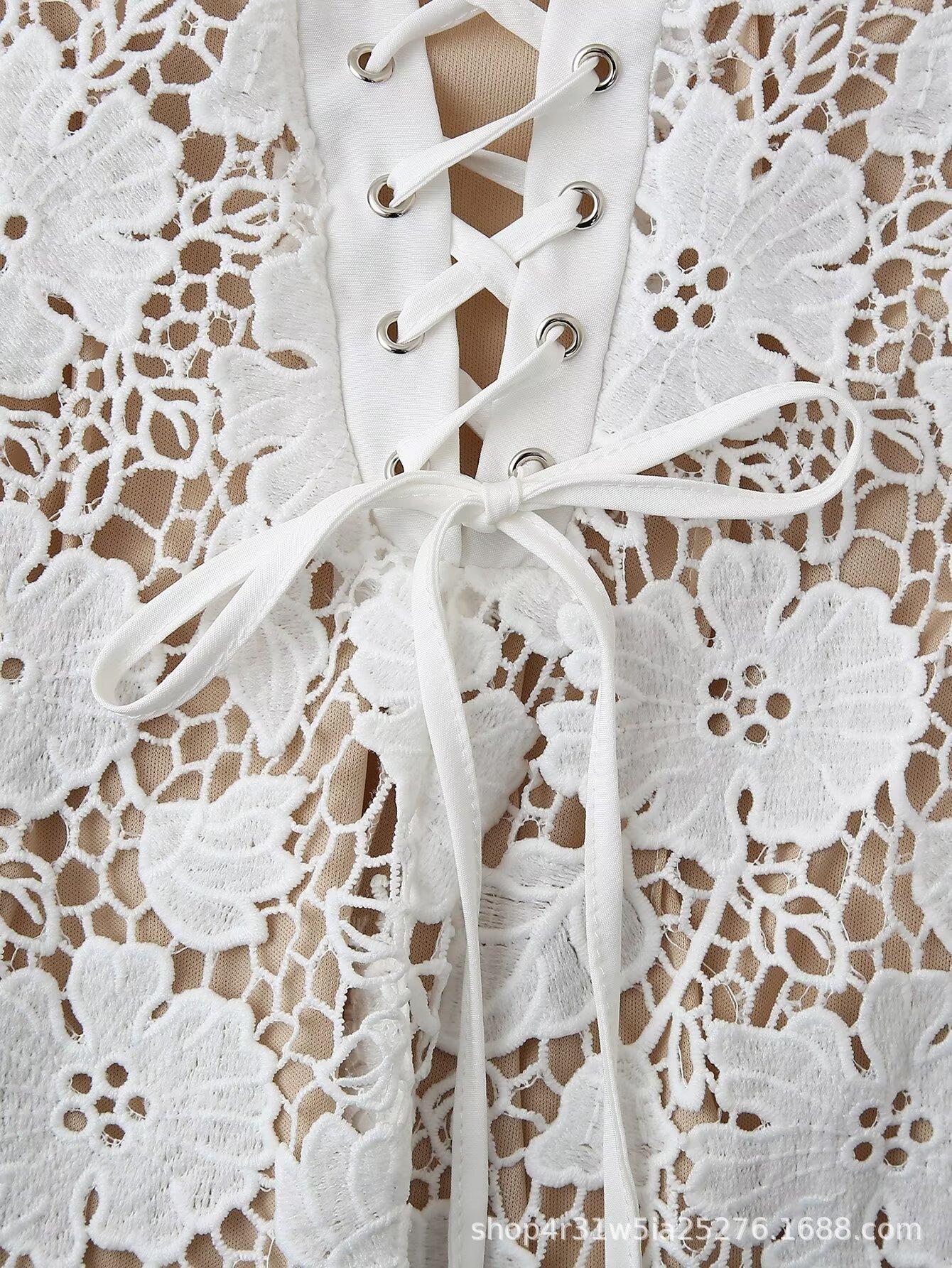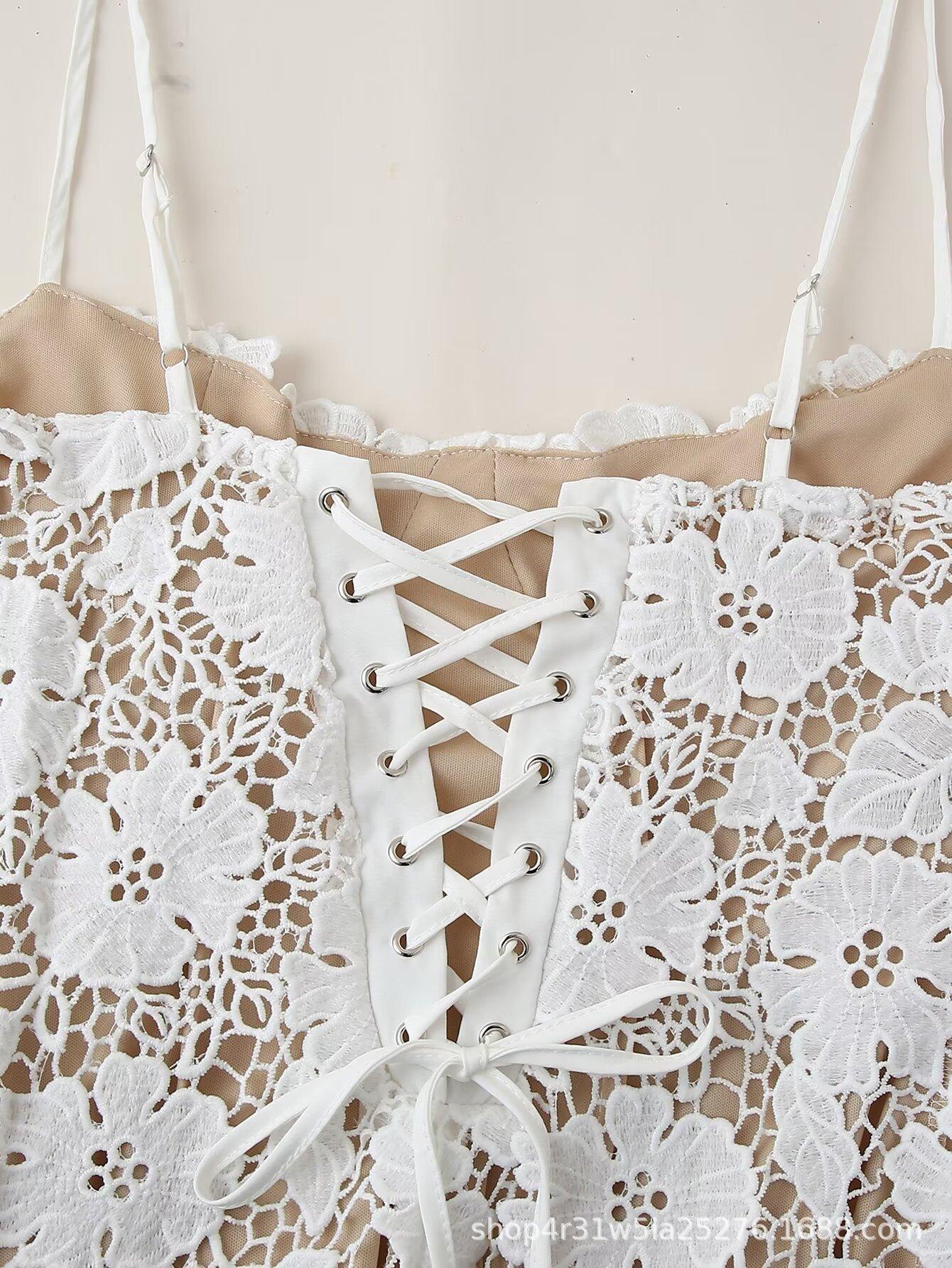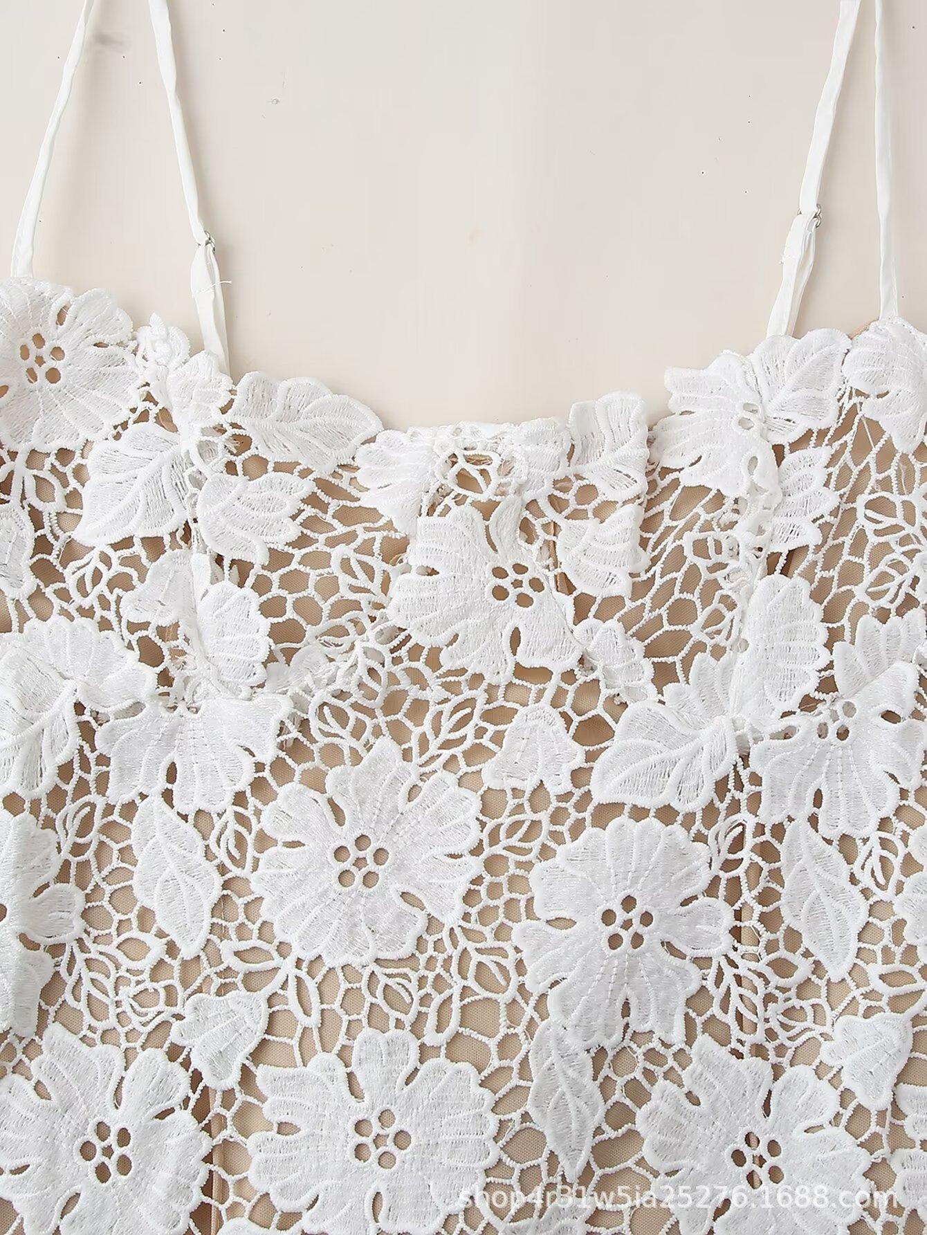 Europeo y Americano 2024 Nuevo Estilo de Verano Vestido de Tirantes Delgado sin Mangas con Abertura y Diseño de Tirantes de Encaje Venta al por Mayor