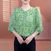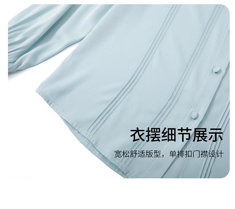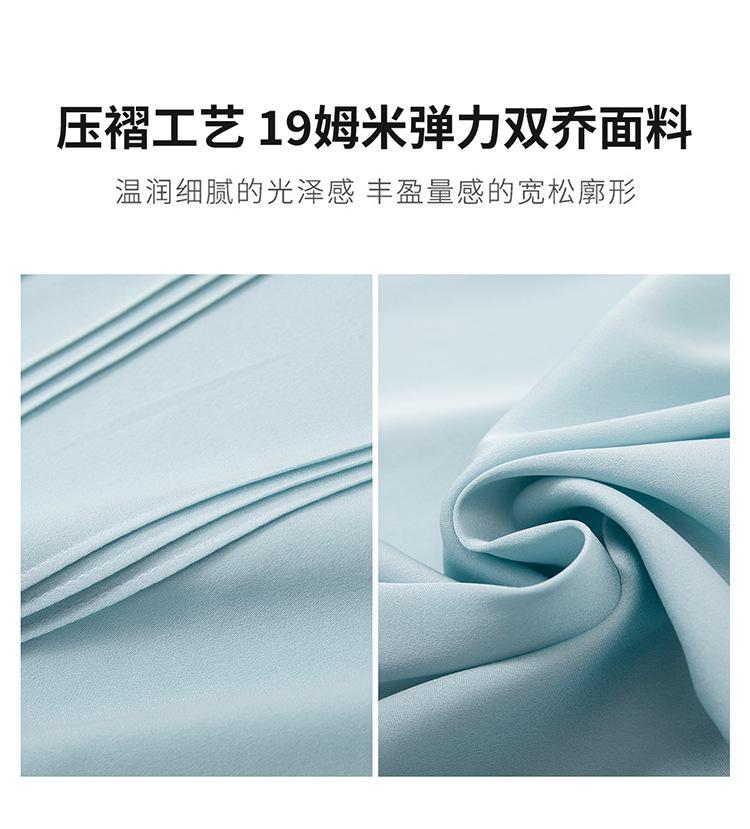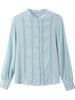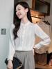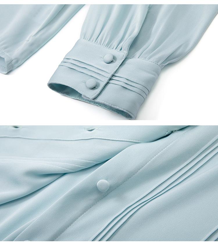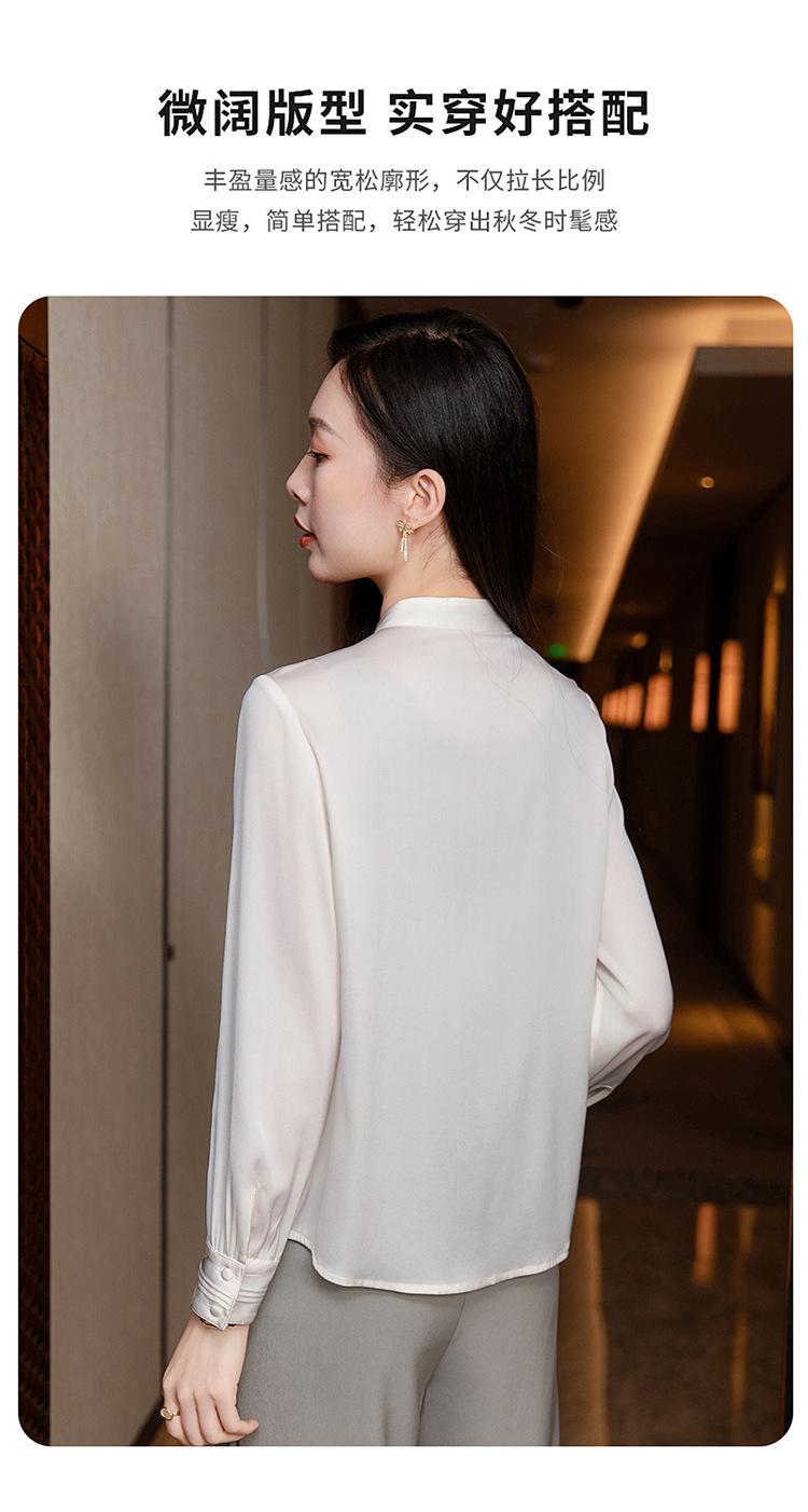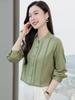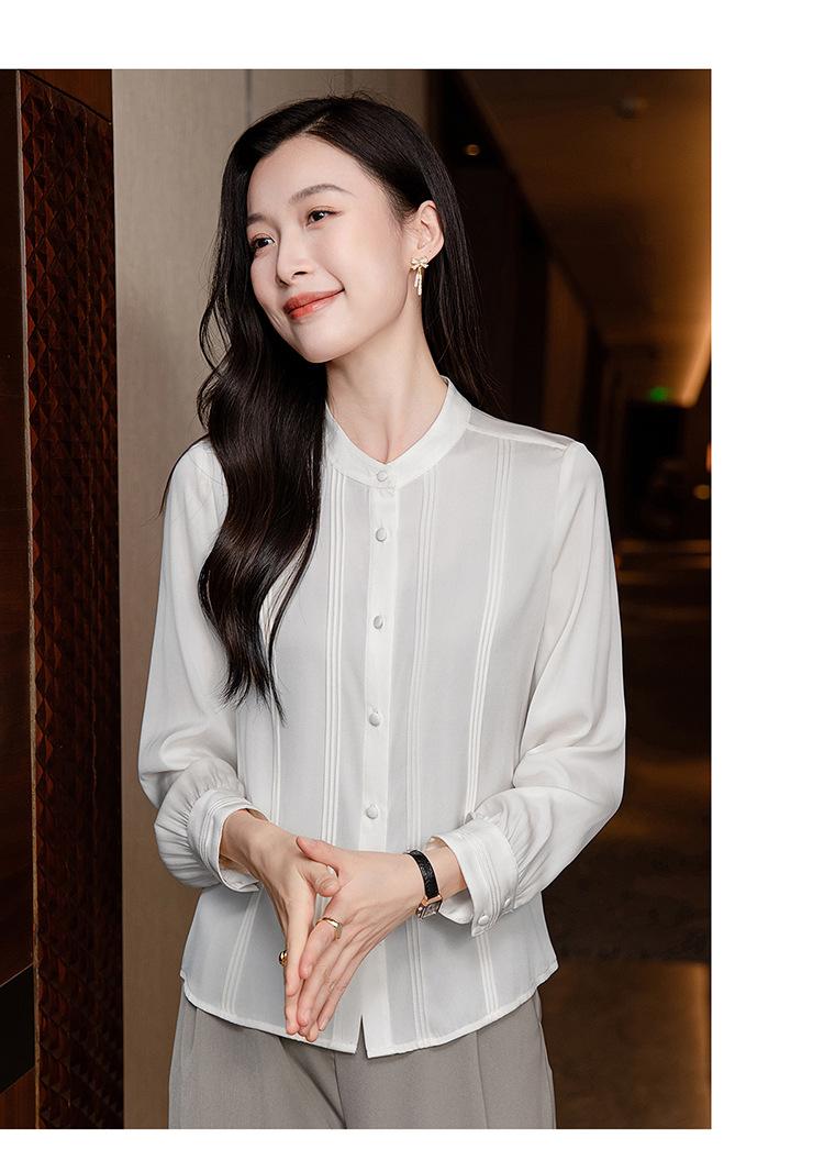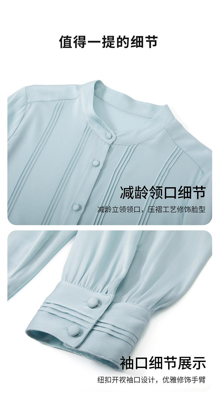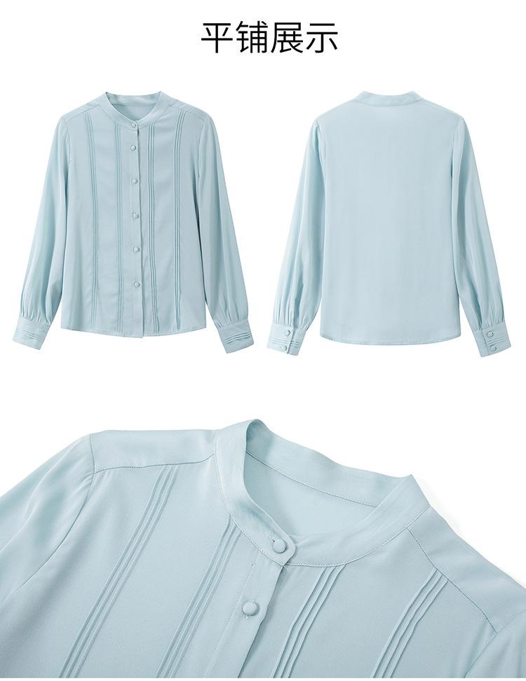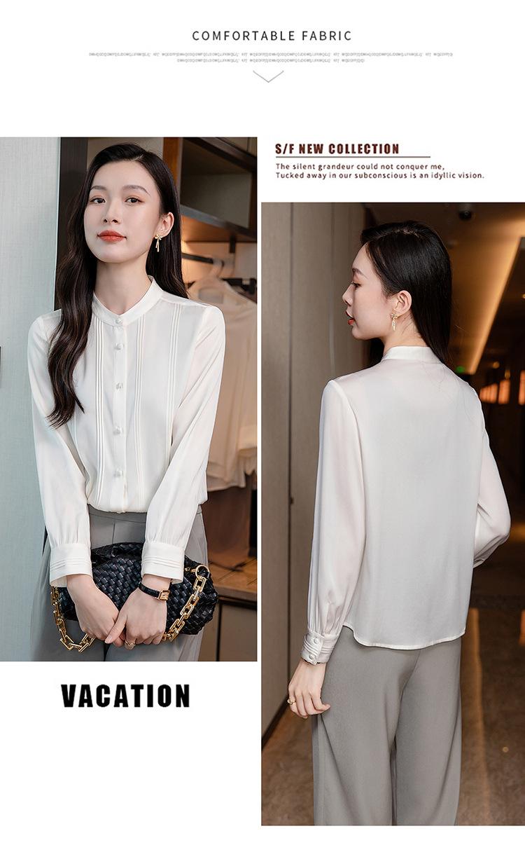 Primavera y Otoño Nuevo Estilo Color Sólido Diseño Plisado Cuello Redondo Camisa de Seda, Top Versátil y Elegante para Mujer