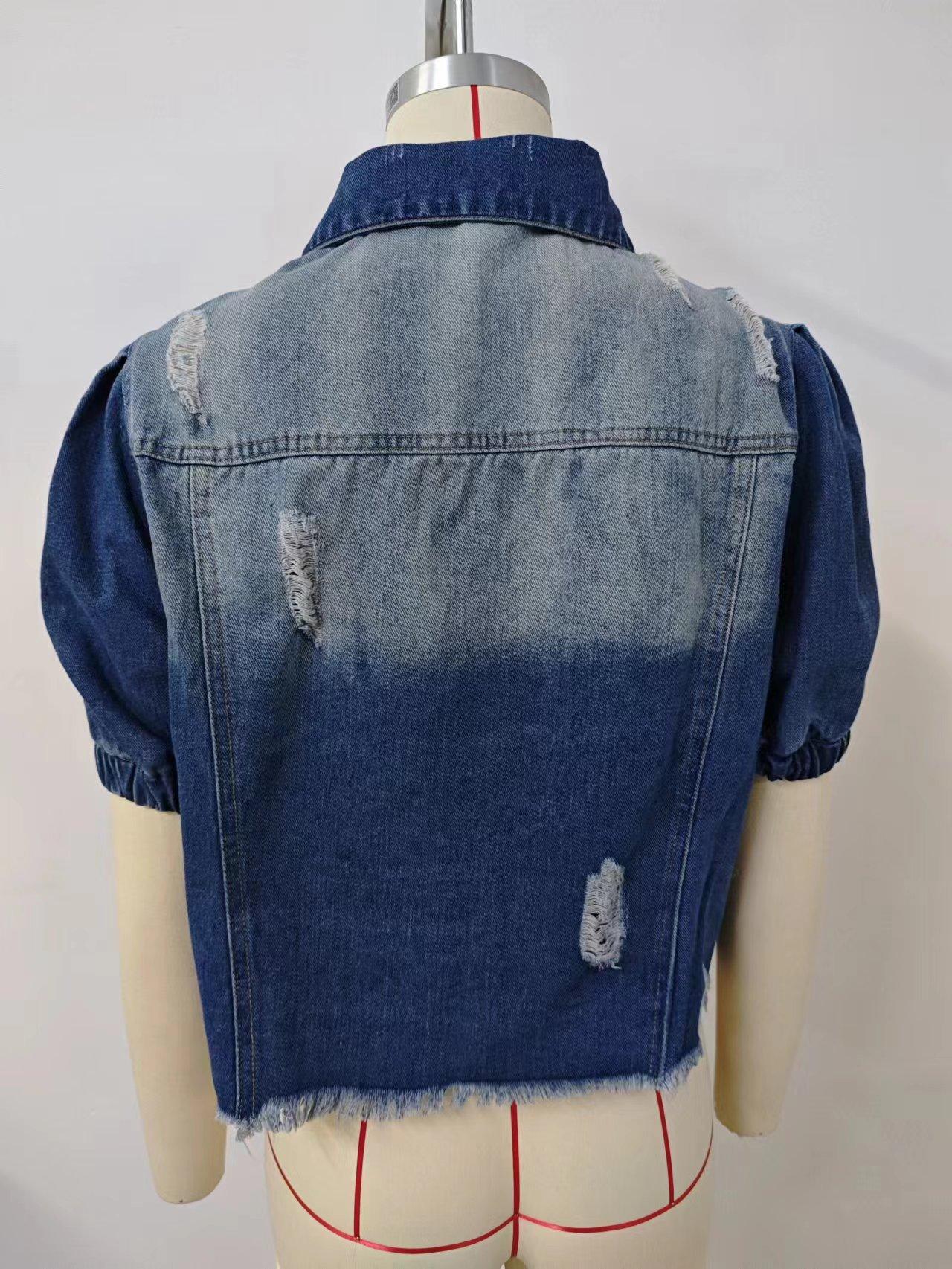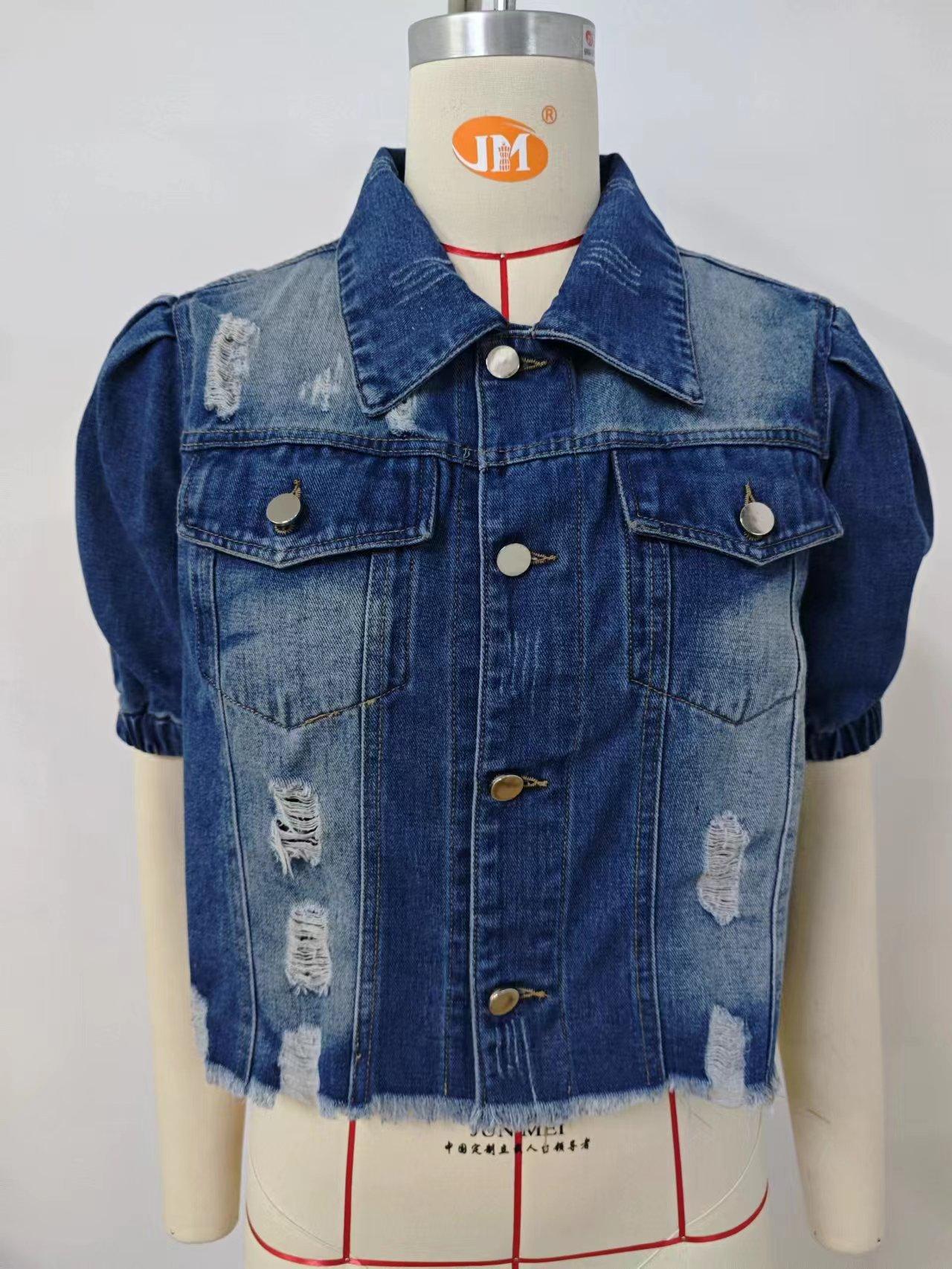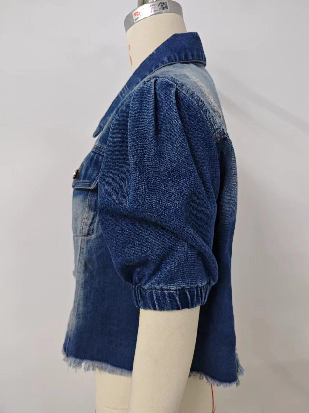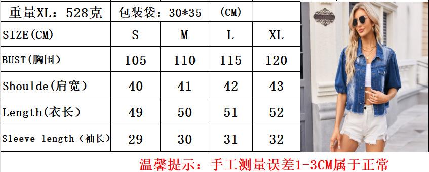 Abrigo corto de mezclilla ajustado de manga princesa casual lavado nuevo de primavera de comercio exterior transfronterizo europeo y americano estación independiente de Amazon