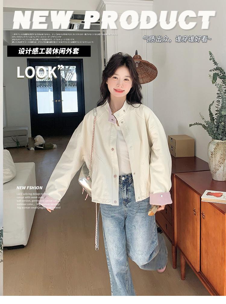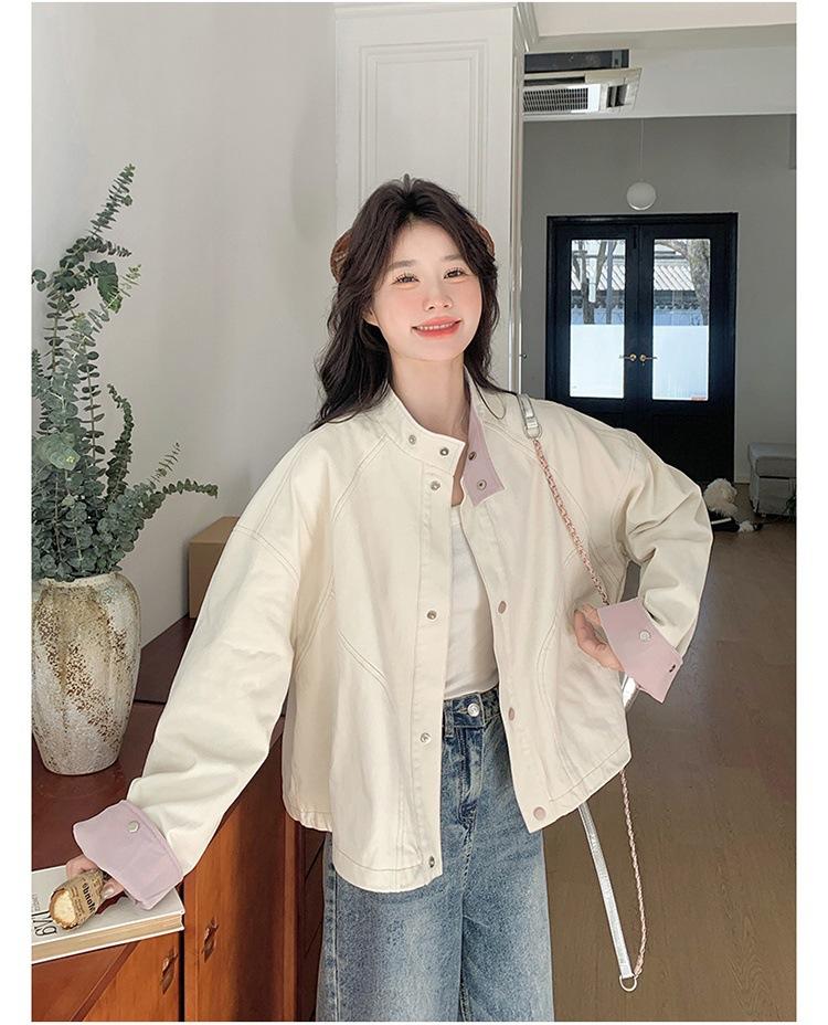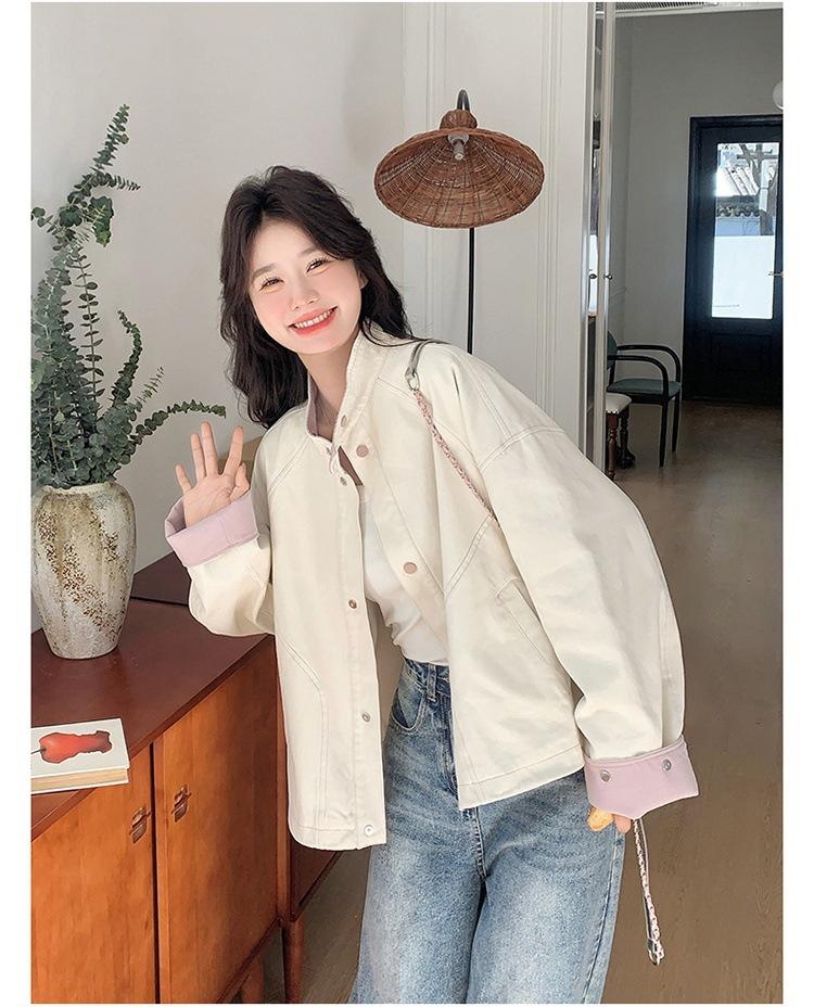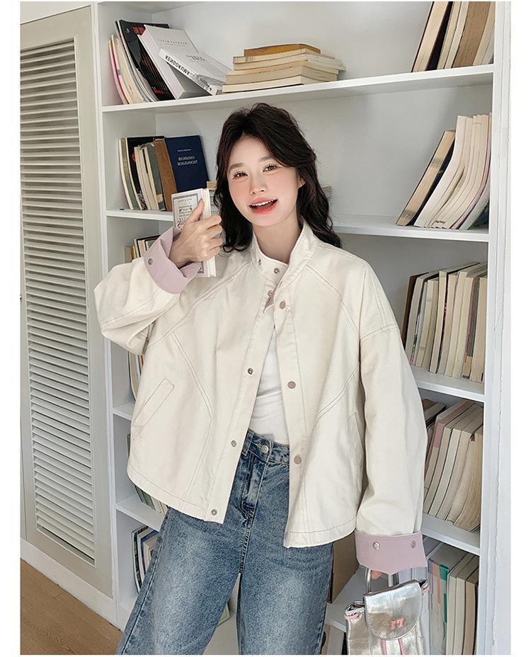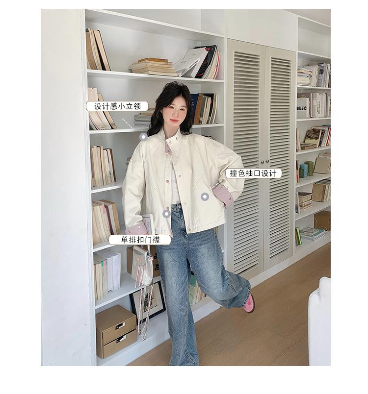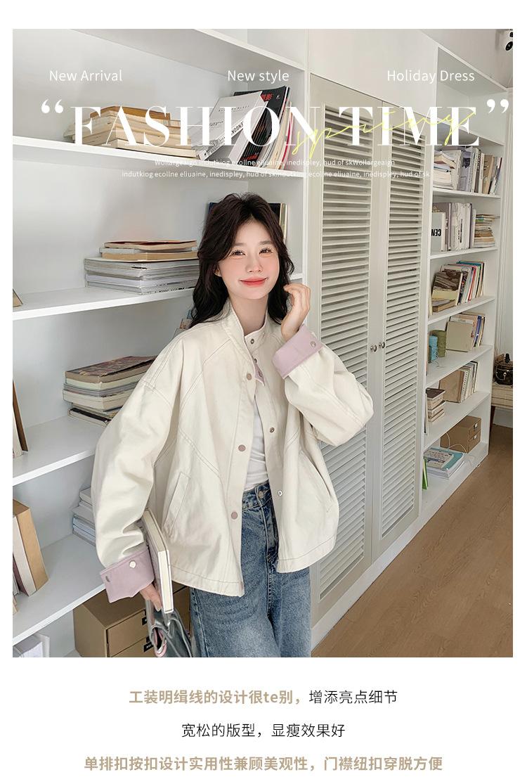 Chaqueta de Béisbol Casual de Cuello Redondo 2025 Nueva Ropa Exterior Petite Patchwork a Cuadros Puños Chaqueta Versátil Mujer A5655