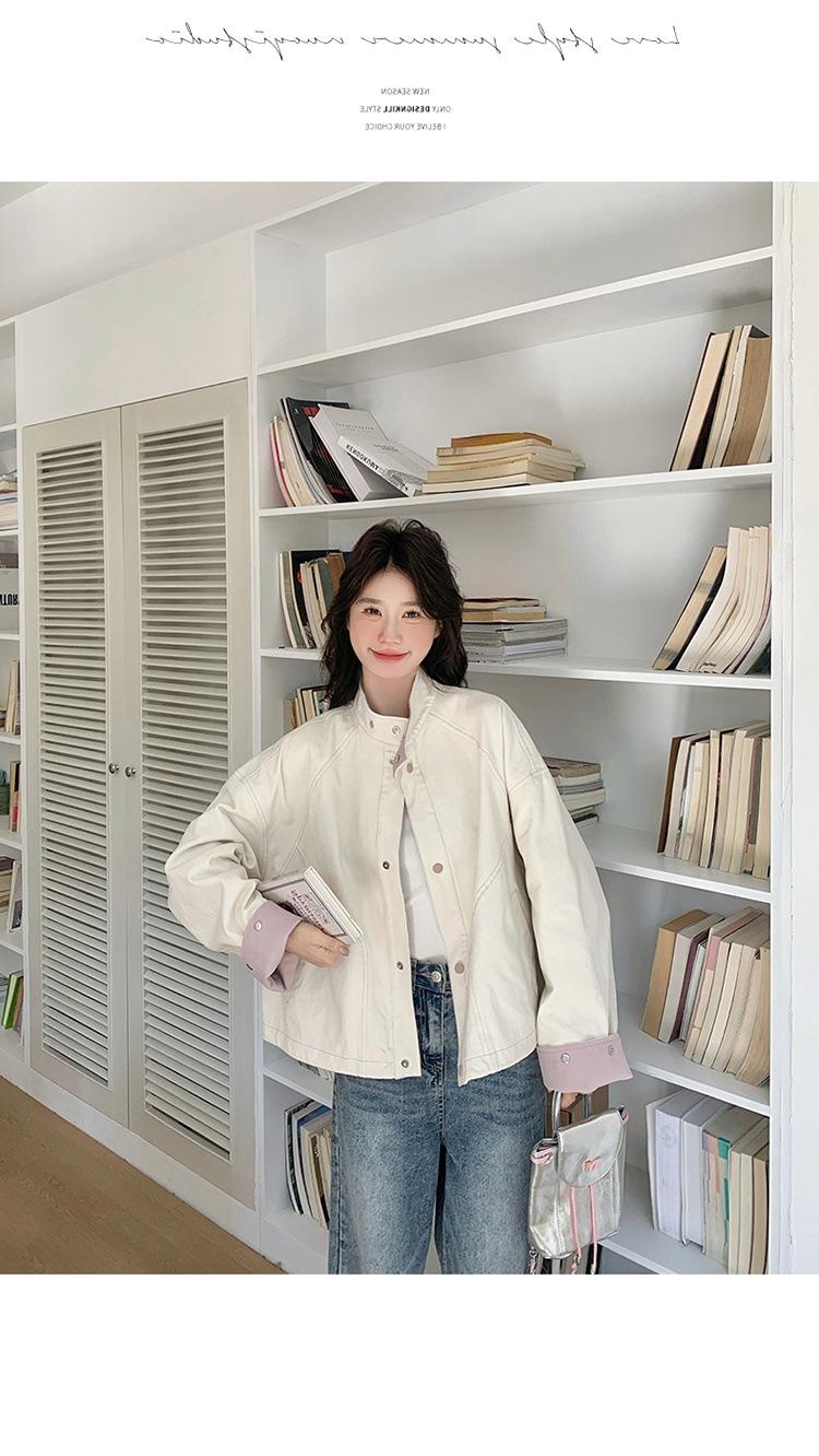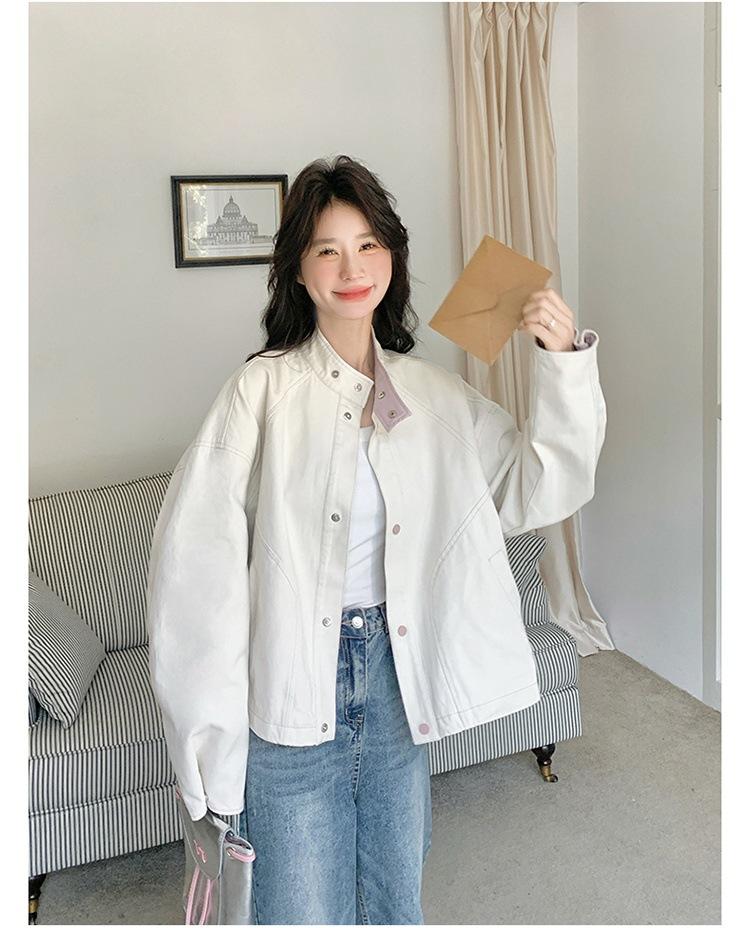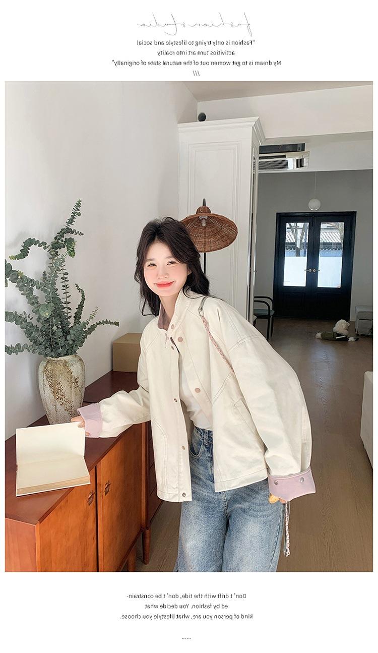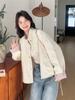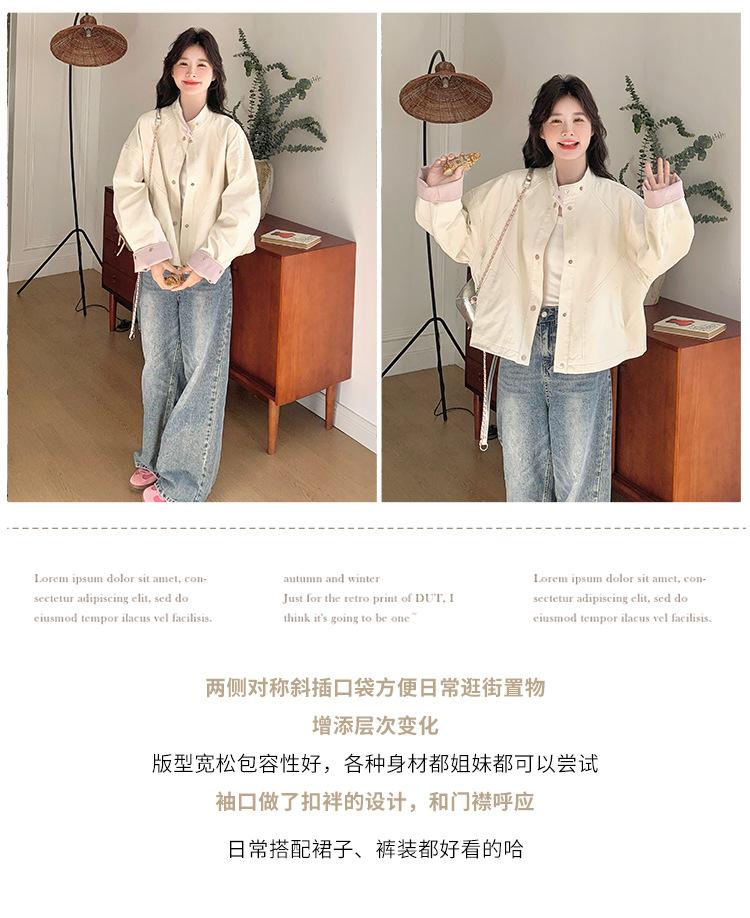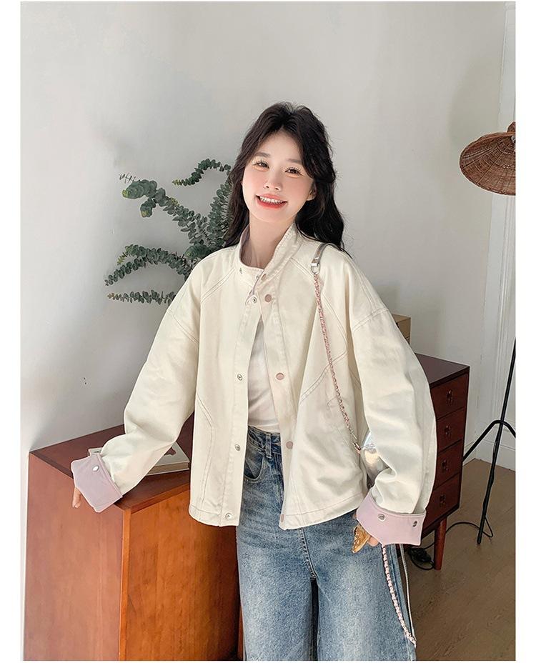 Chaqueta de Béisbol Casual de Cuello Redondo 2025 Nueva Ropa Exterior Petite Patchwork a Cuadros Puños Chaqueta Versátil Mujer A5655