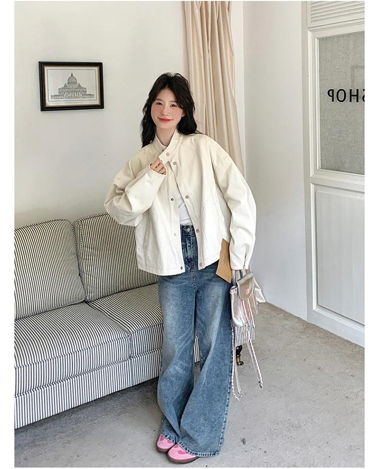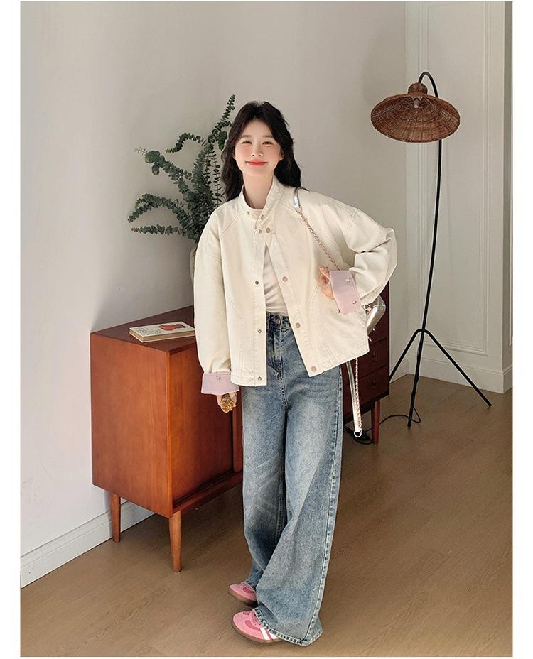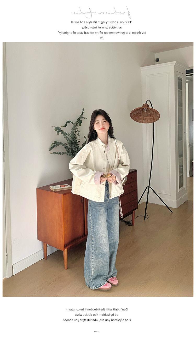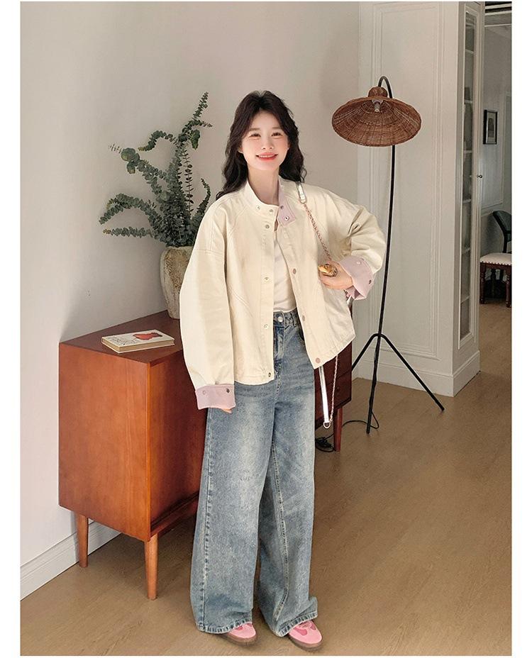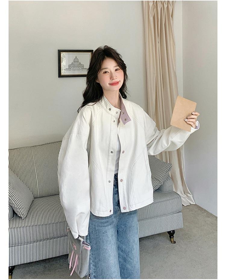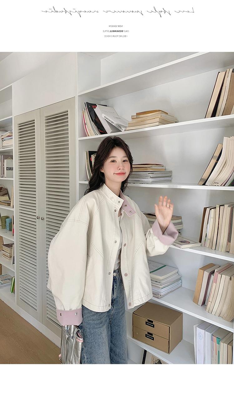 Chaqueta de Béisbol Casual de Cuello Redondo 2025 Nueva Ropa Exterior Petite Patchwork a Cuadros Puños Chaqueta Versátil Mujer A5655