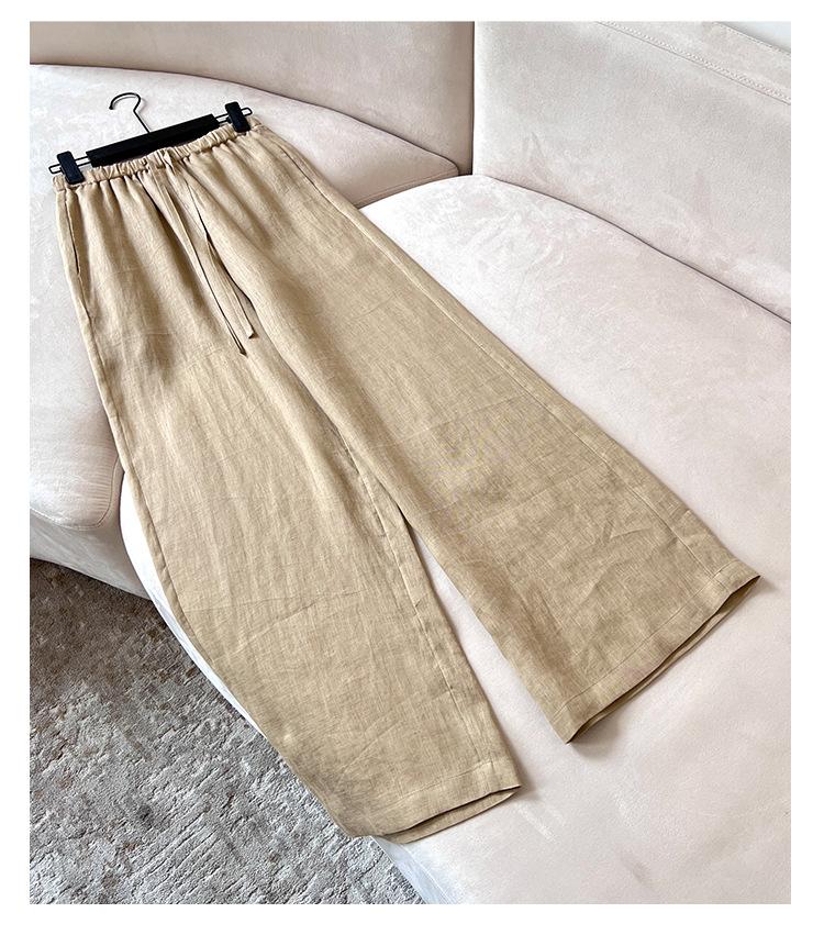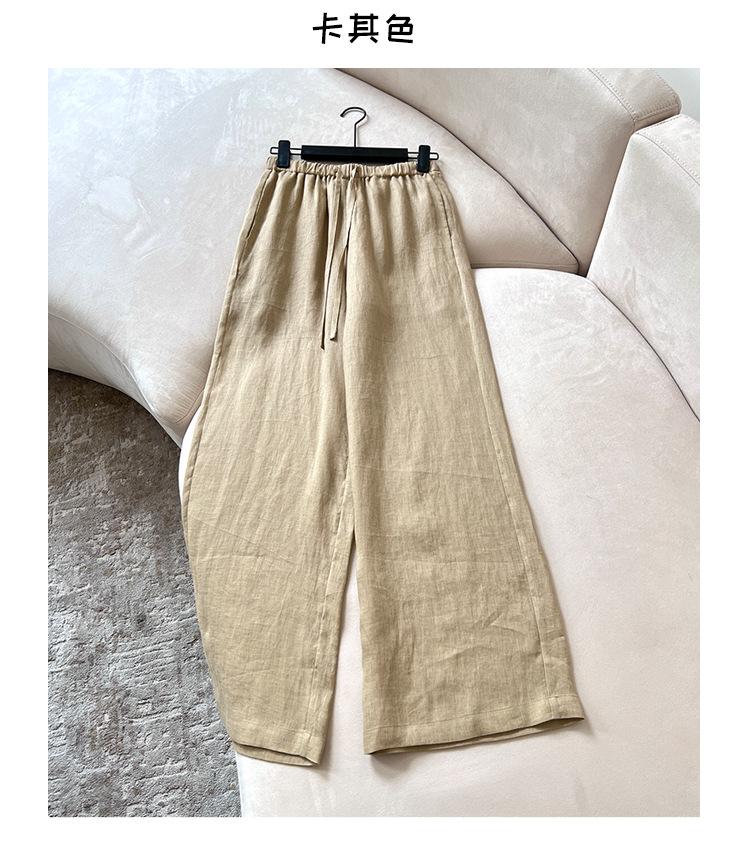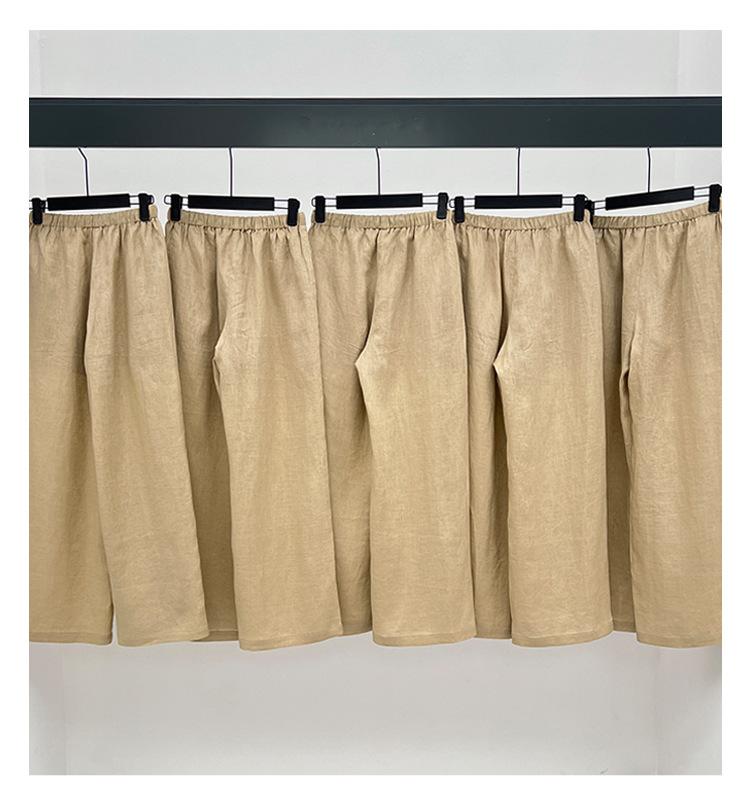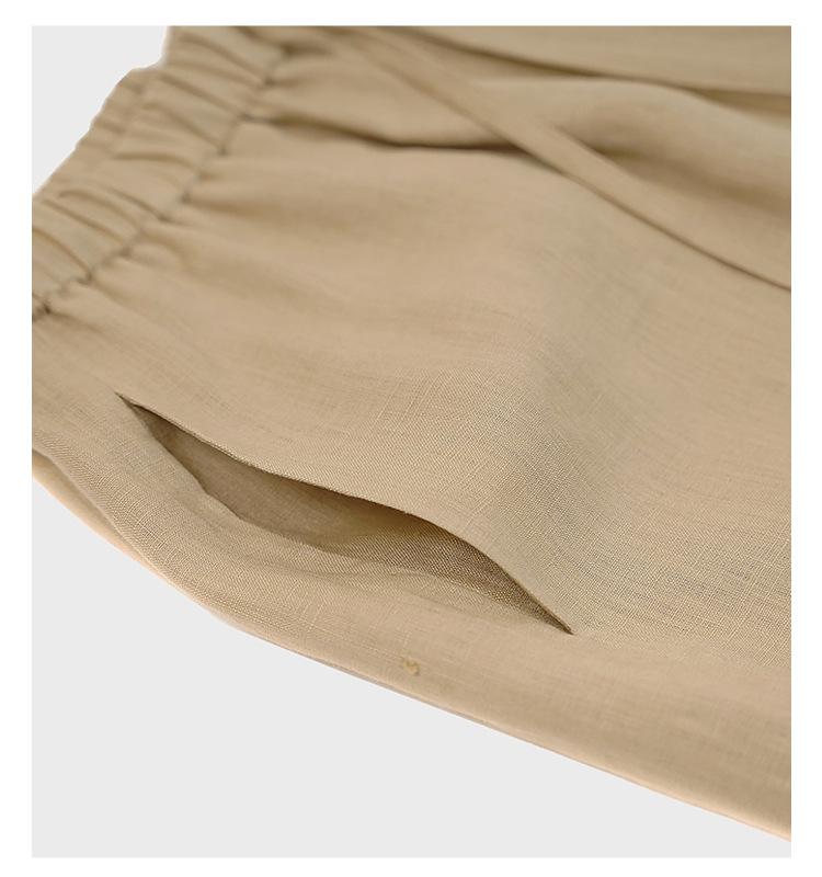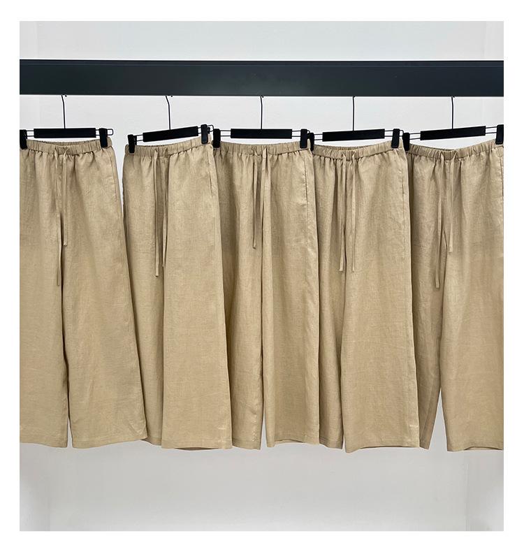 Anfeiona 2025 Nuevo Caqui Lino Textura Natural Cordón Cintura Elástica Pierna Recta Pantalones Casuales Simples para Mujer