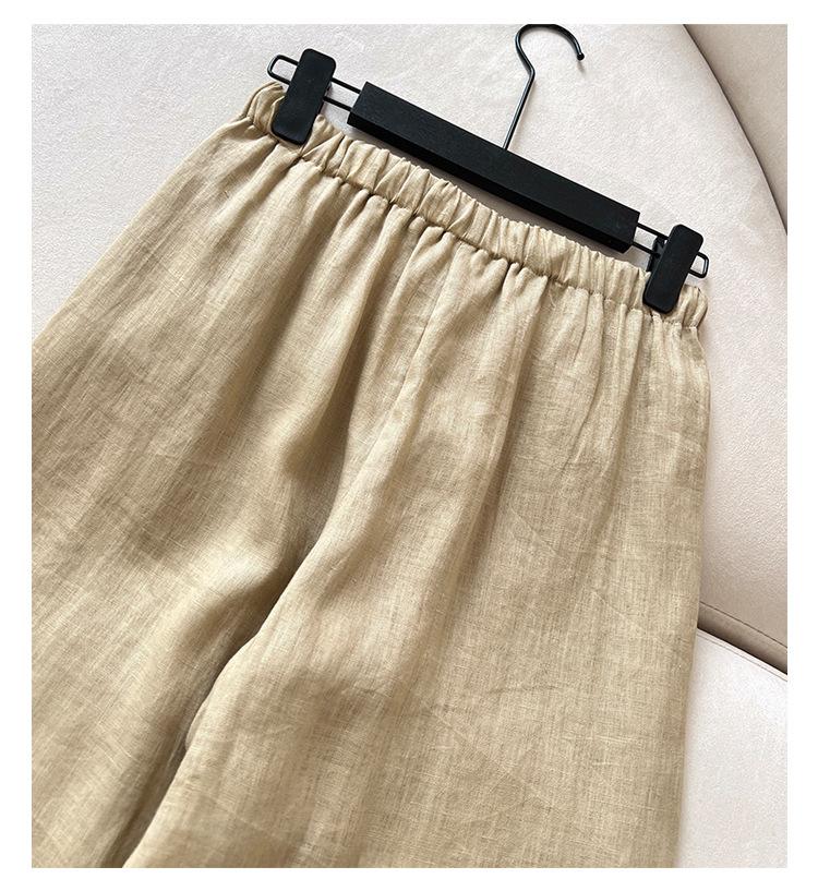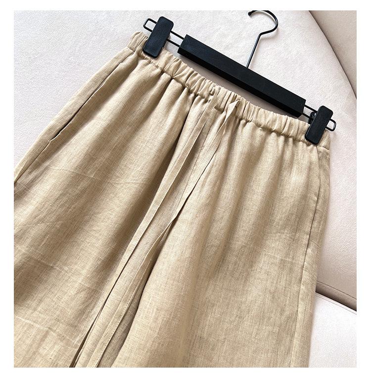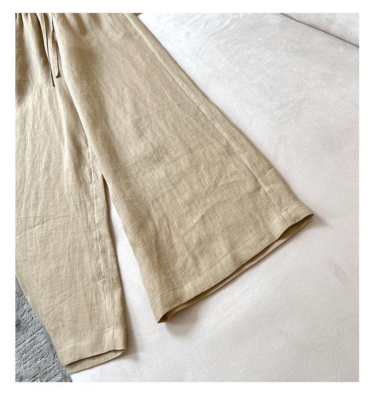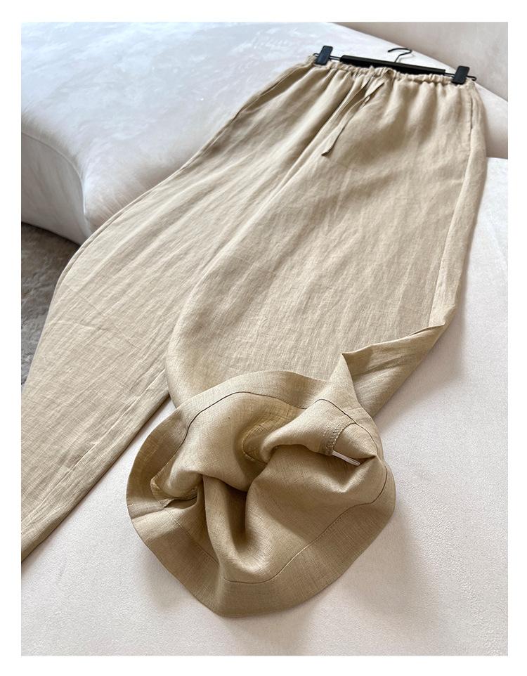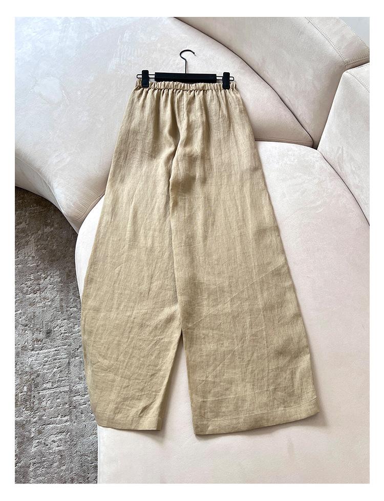 Anfeiona 2025 Nuevo Caqui Lino Textura Natural Cordón Cintura Elástica Pierna Recta Pantalones Casuales Simples para Mujer