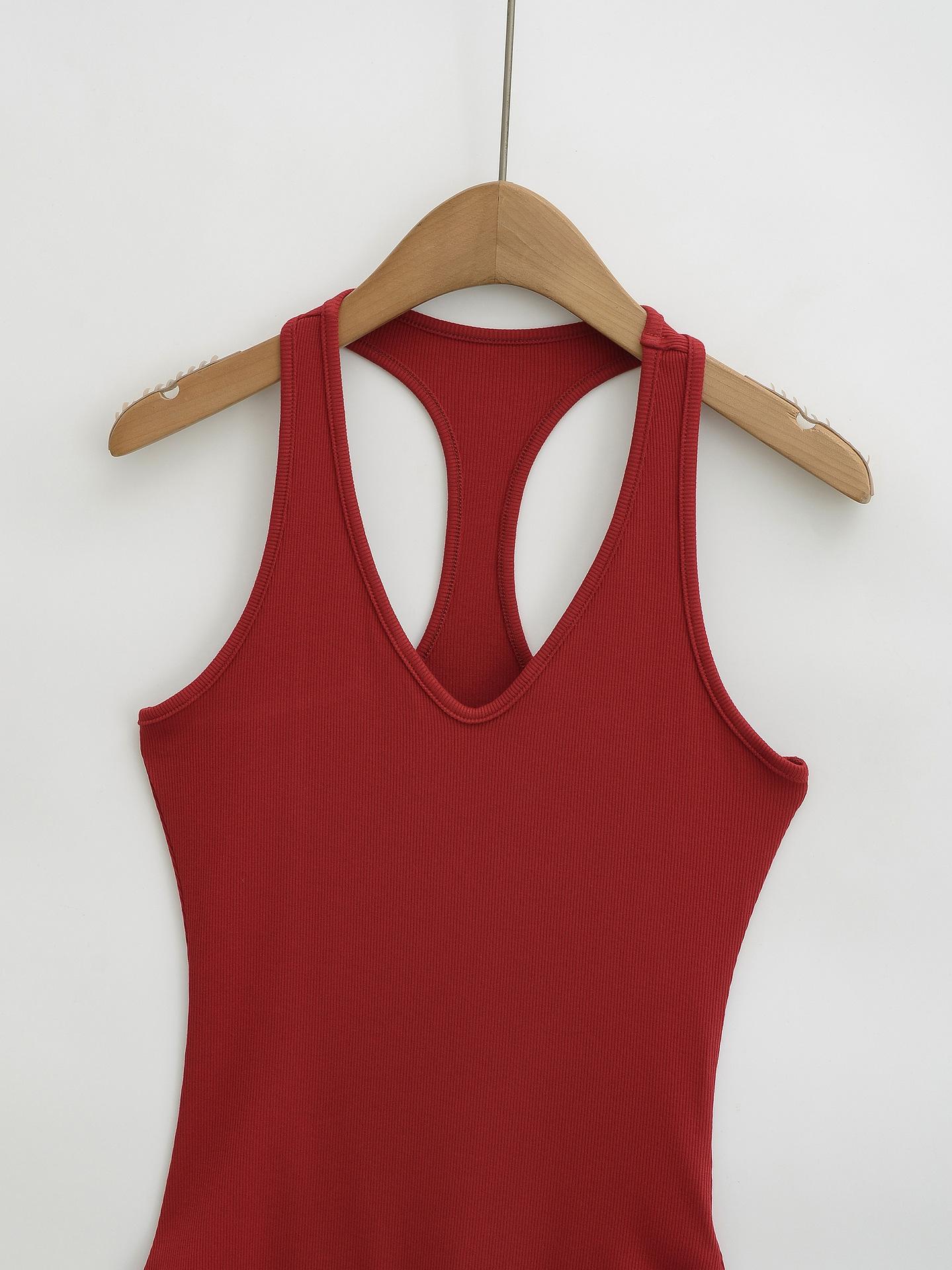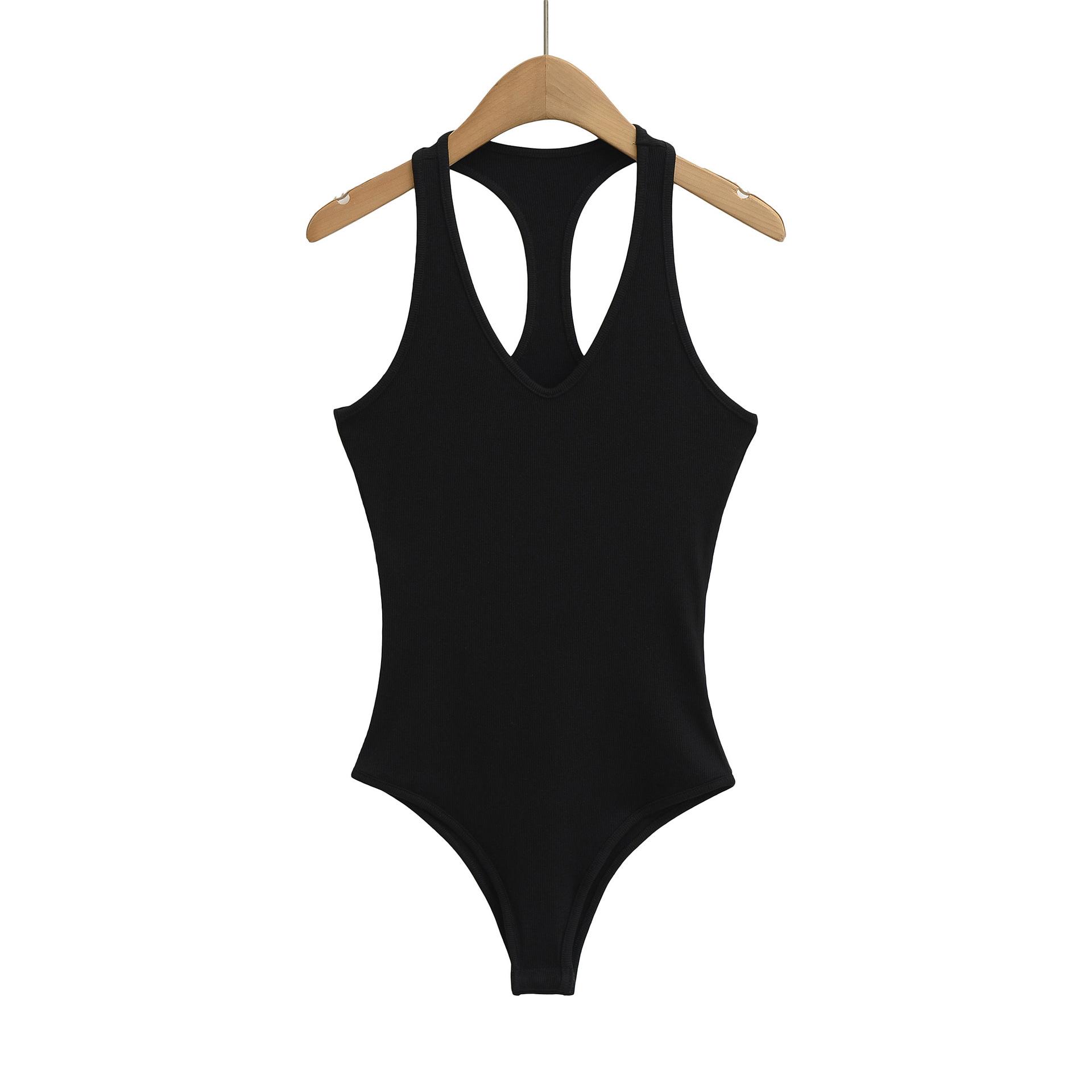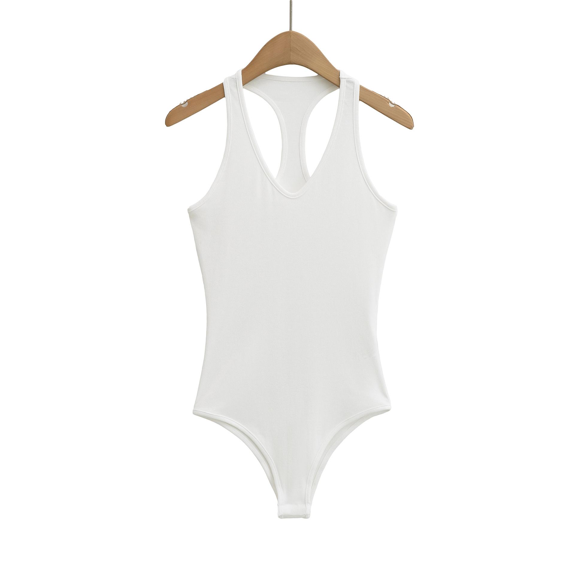 2508-Mono ajustado de estilo europeo y americano para mujer 2024 Nuevo Sexy Sexy Chaleco sin mangas Camiseta básica