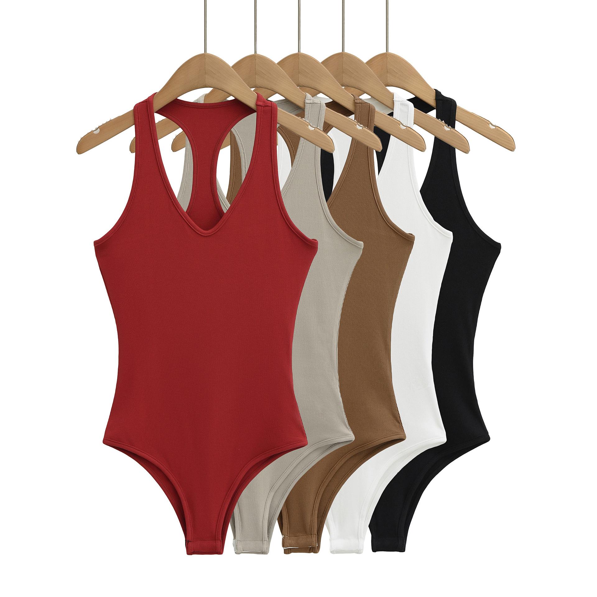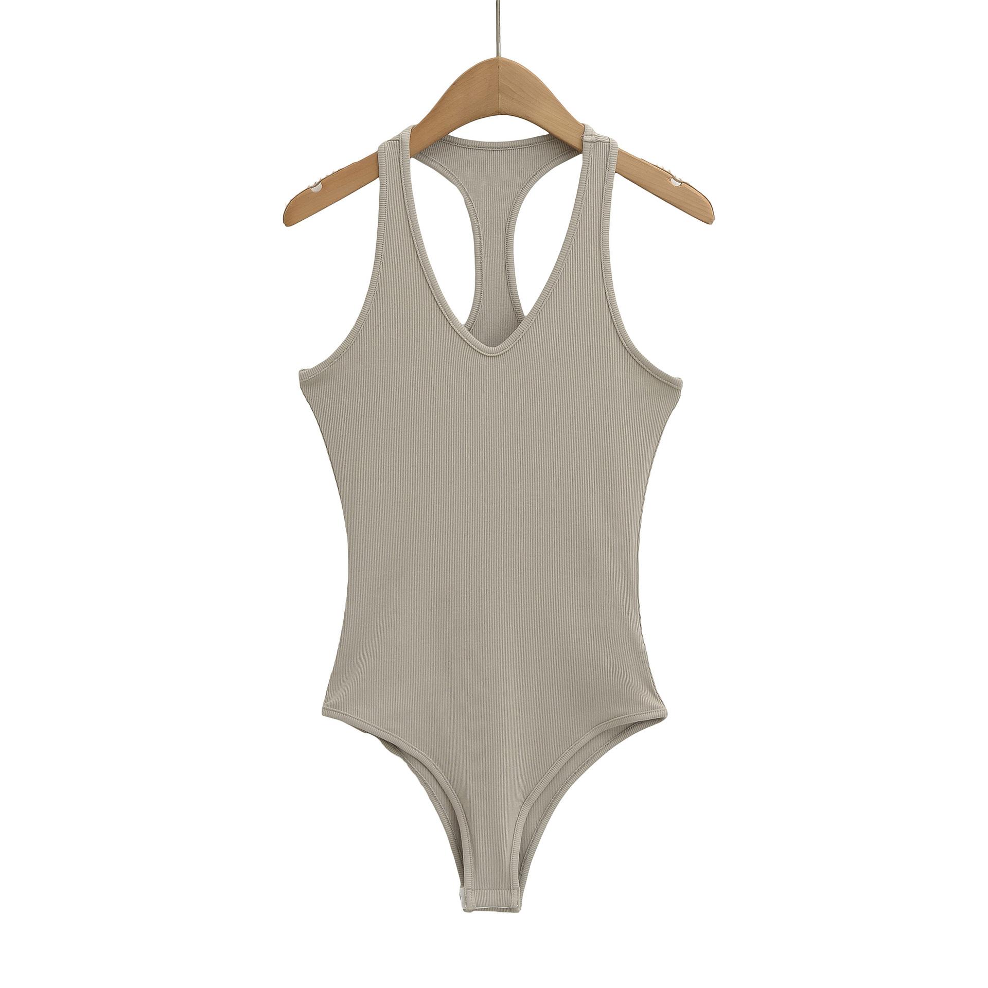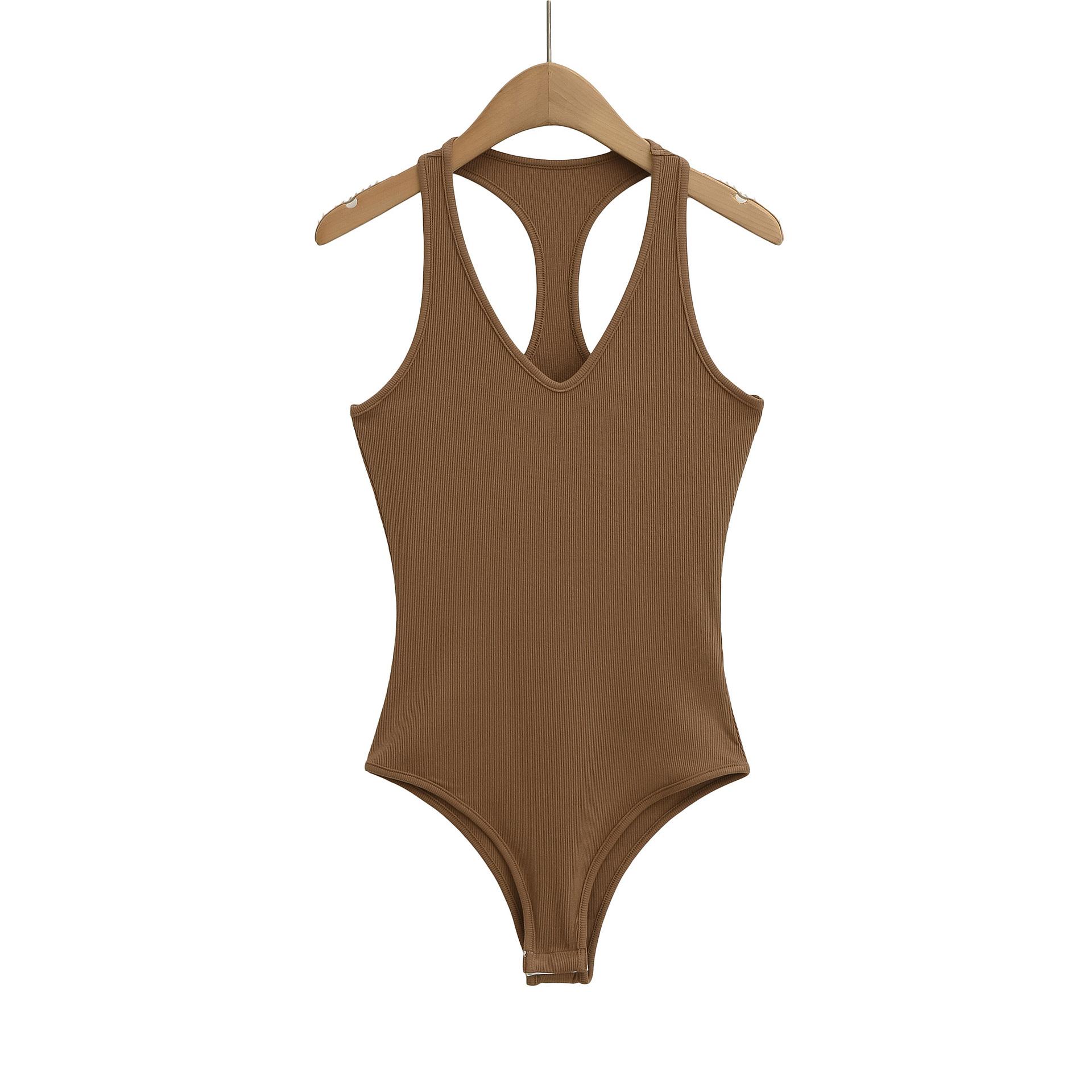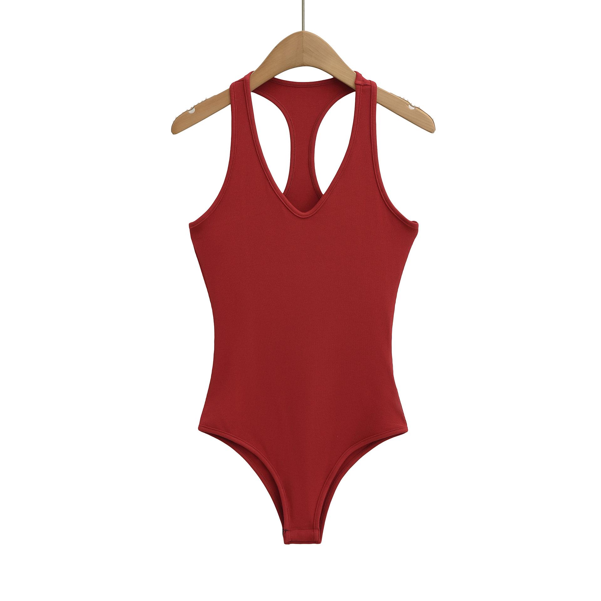 2508-Mono ajustado de estilo europeo y americano para mujer 2024 Nuevo Sexy Sexy Chaleco sin mangas Camiseta básica