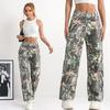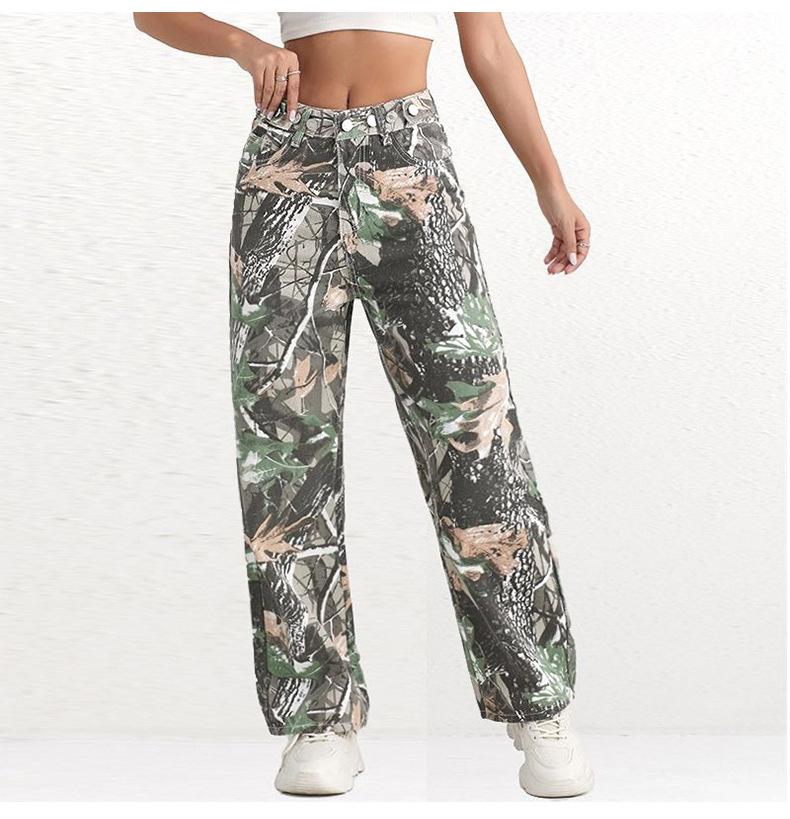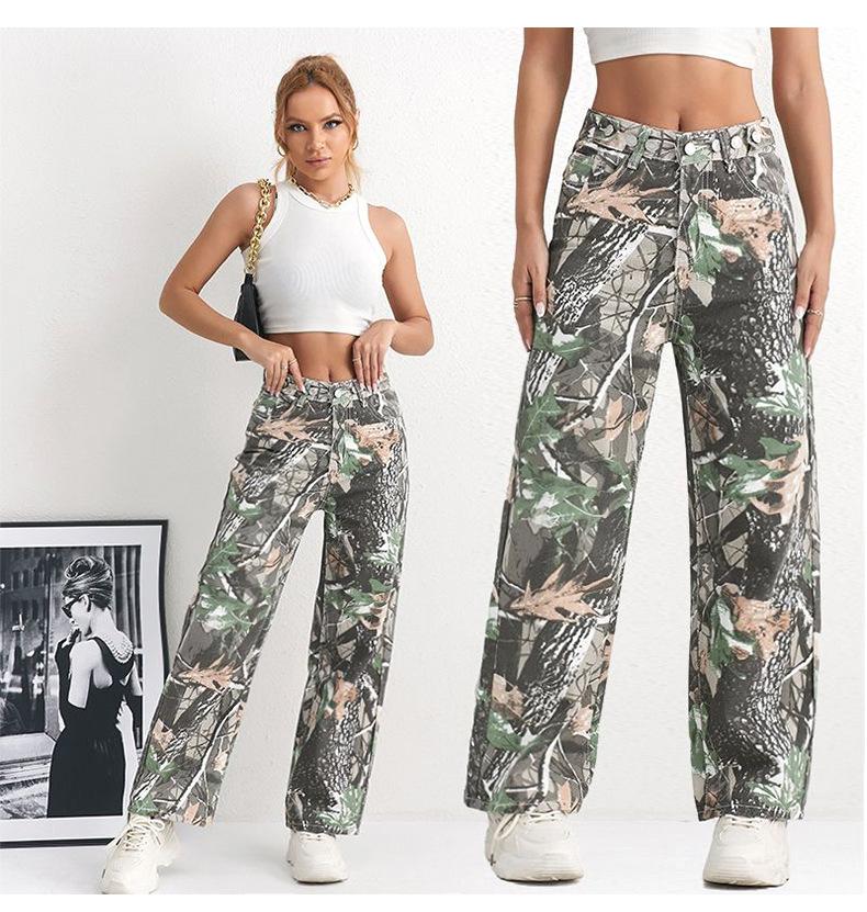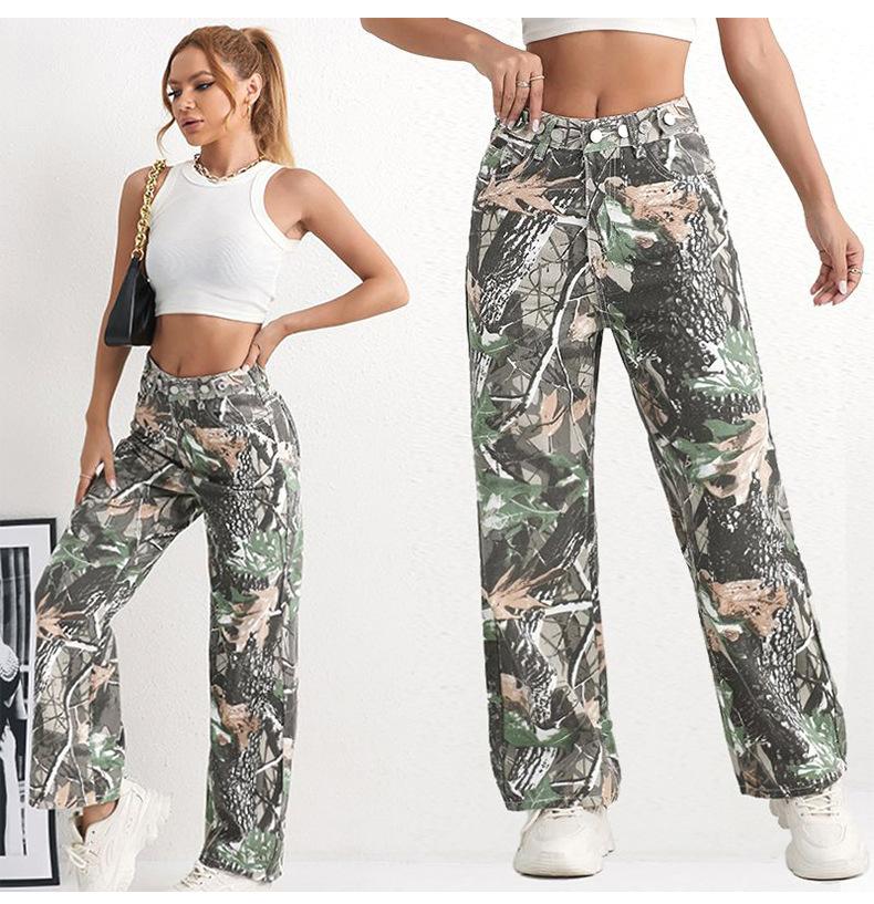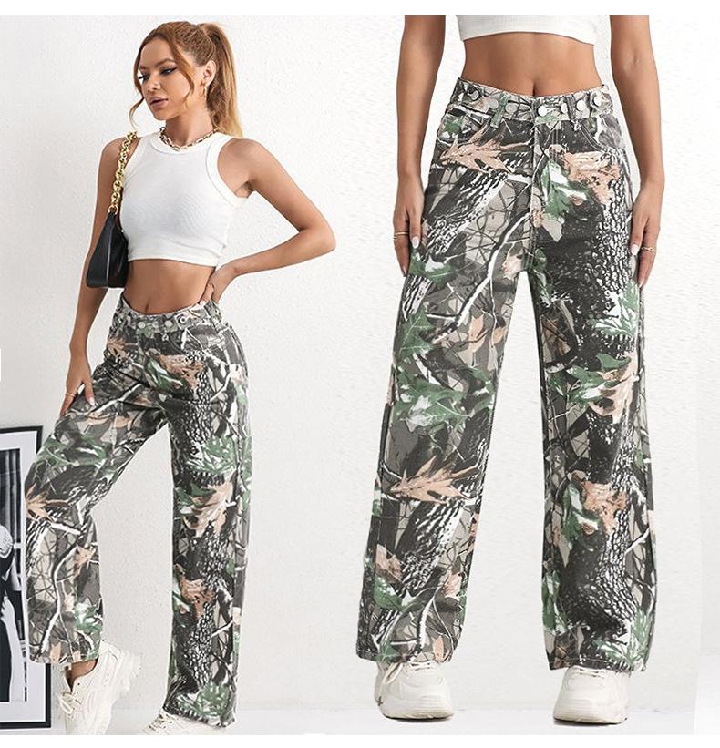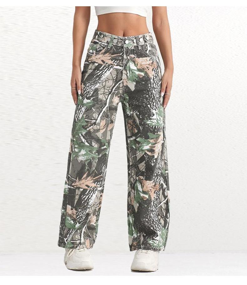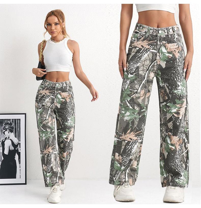 Jeans de Colores con Flores de Árbol Europeas y Americanas Transfronterizas de Amazon para Mujer 2025 Nueva Moda Estampados Sueltos Adelgazantes Pantalones de Pierna Ancha