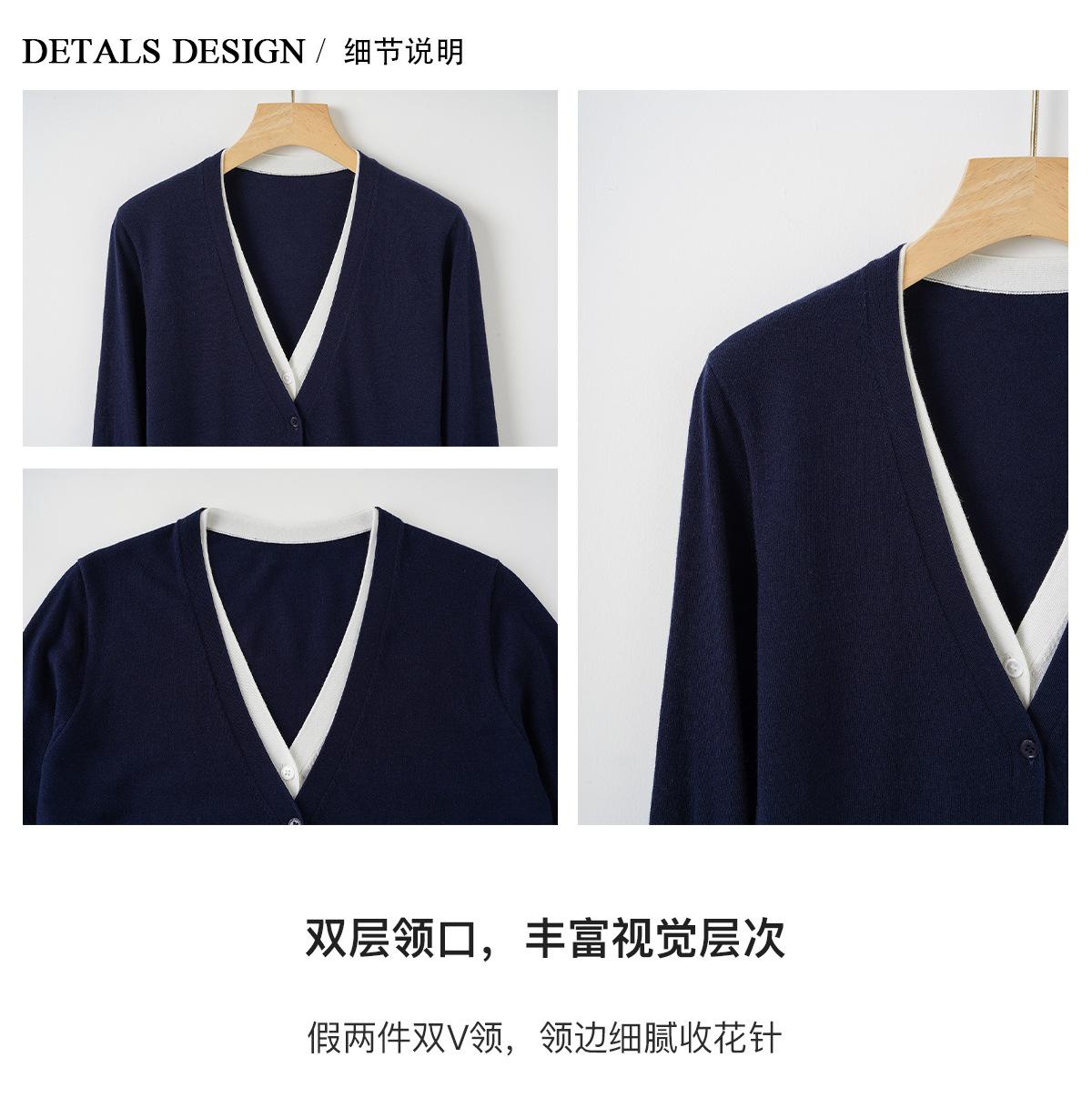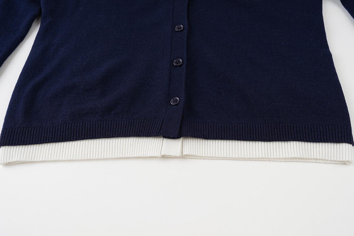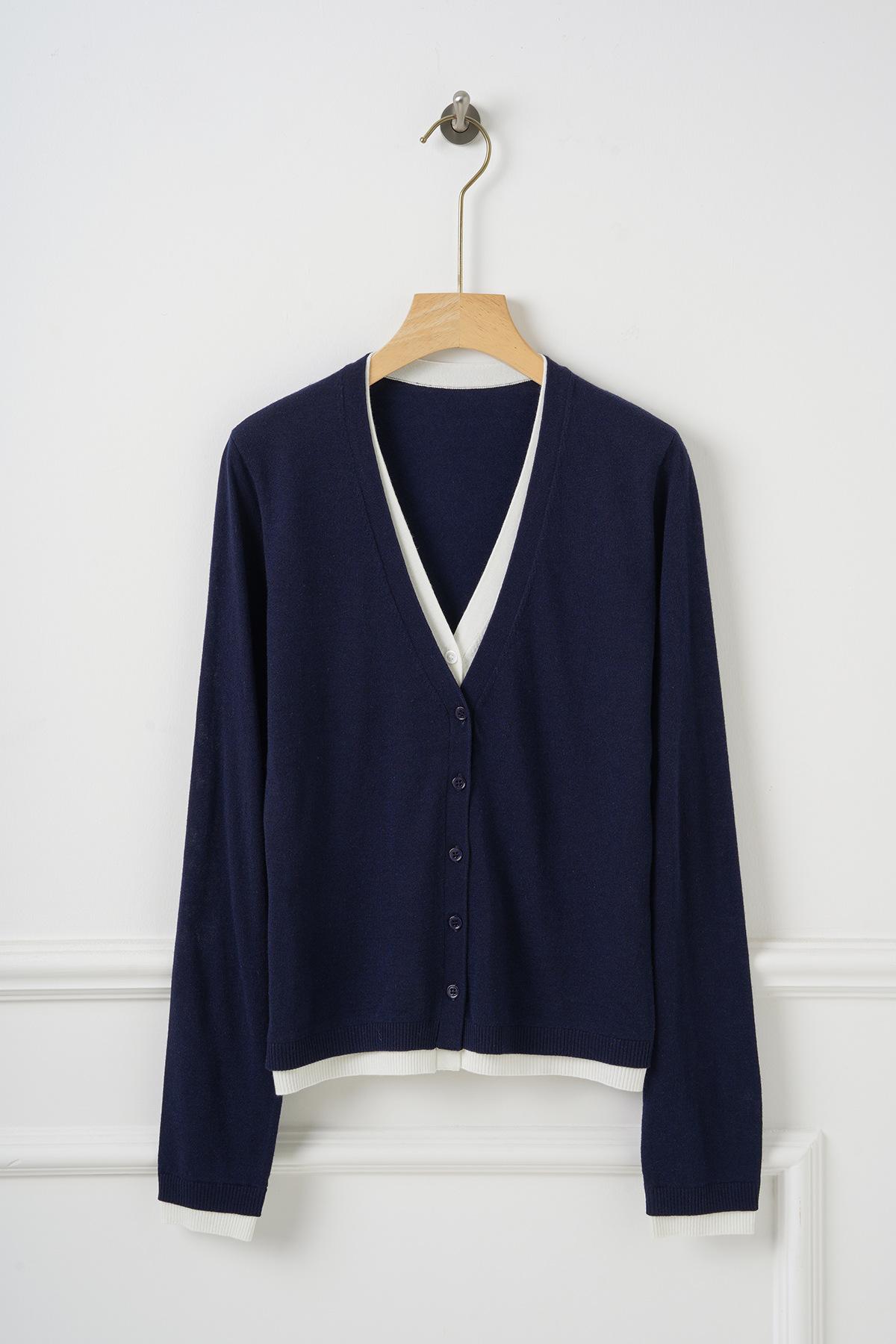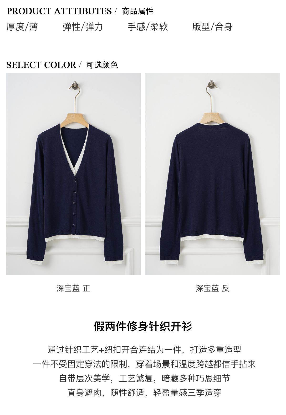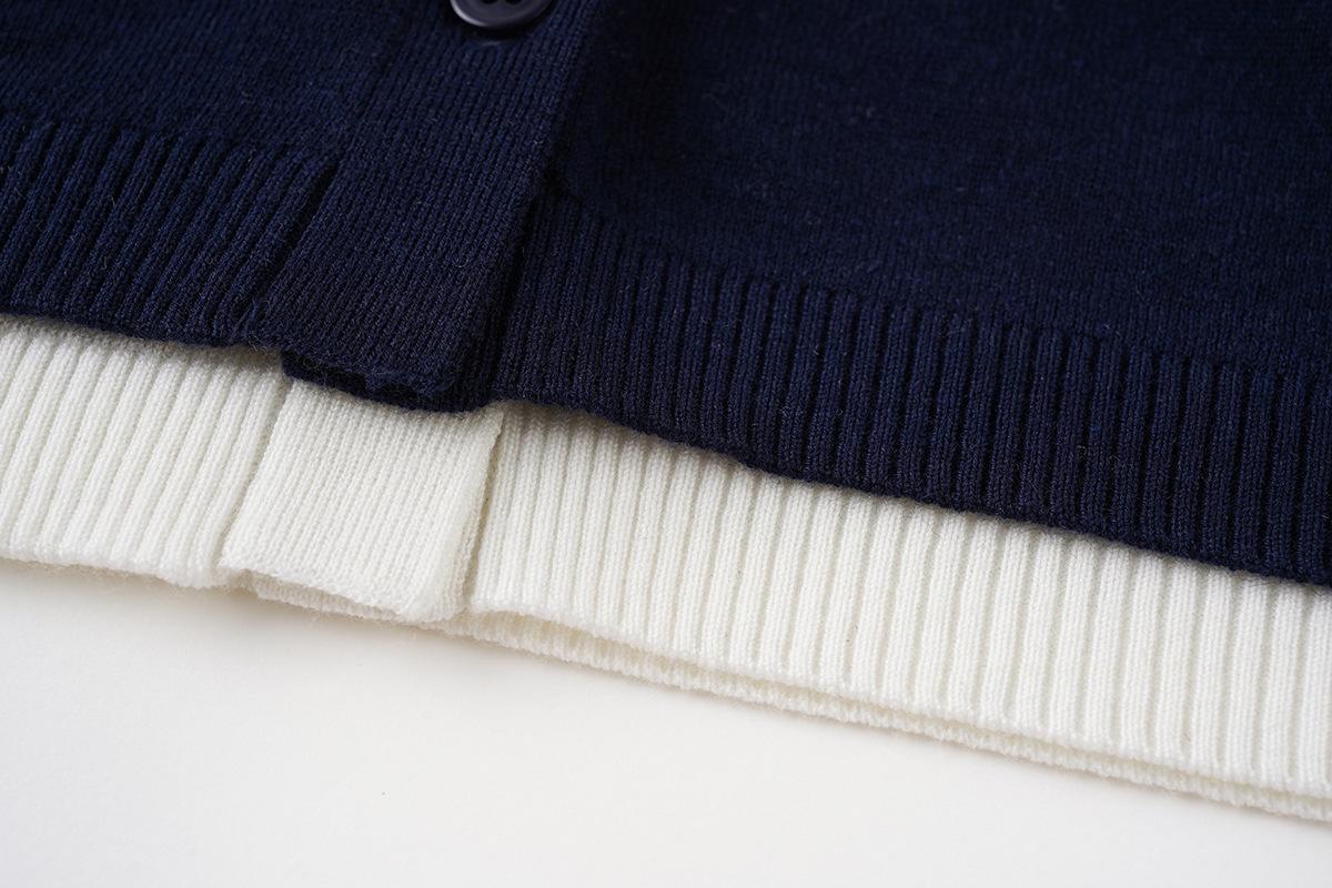 25 nuevo top de punto patchwork de principios de otoño falso de dos piezas de manga larga cárdigan acondicionado de lana fina ajustado cárdigan pequeño