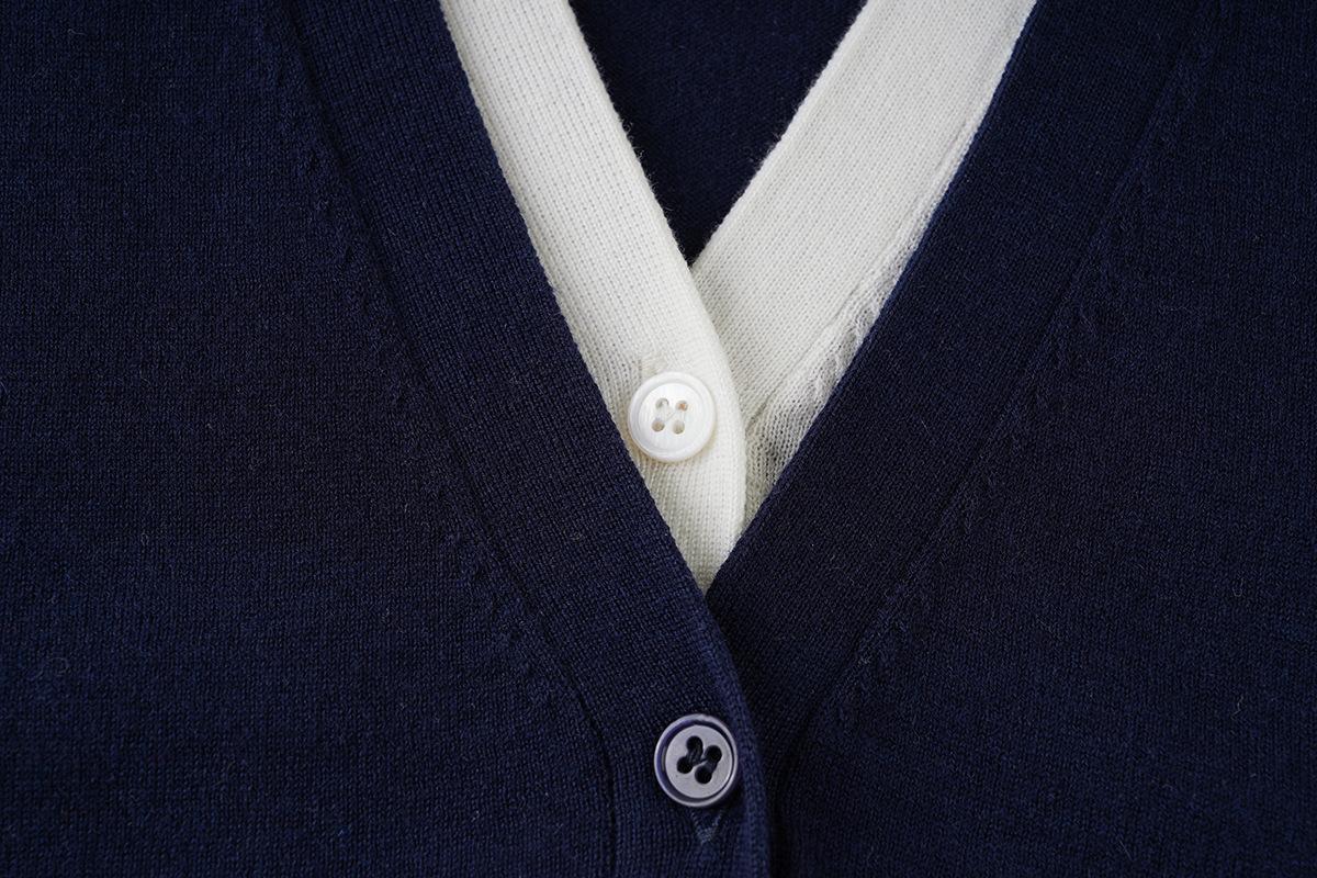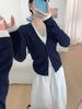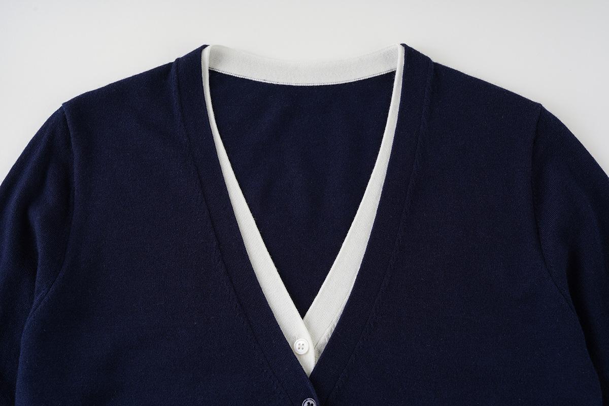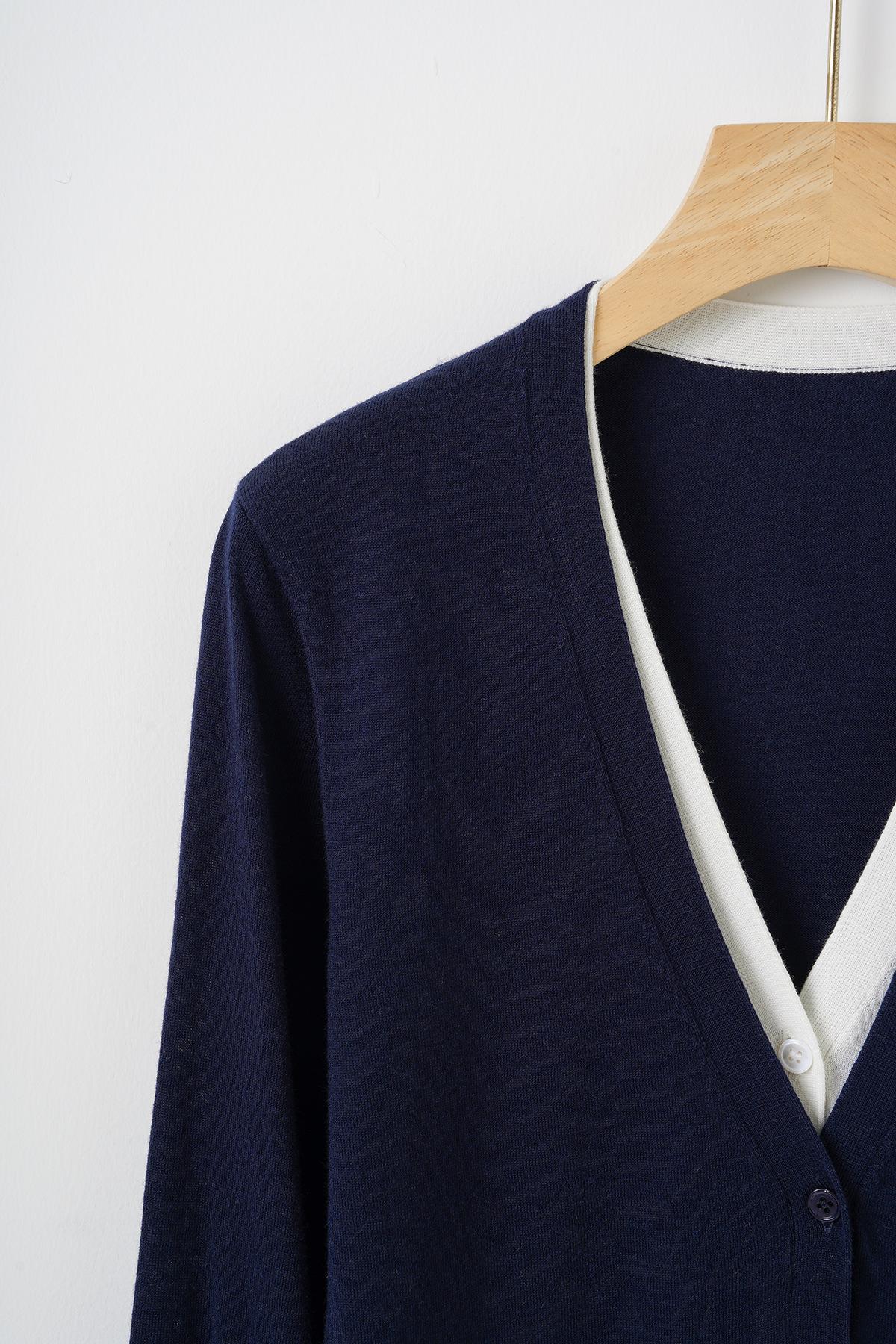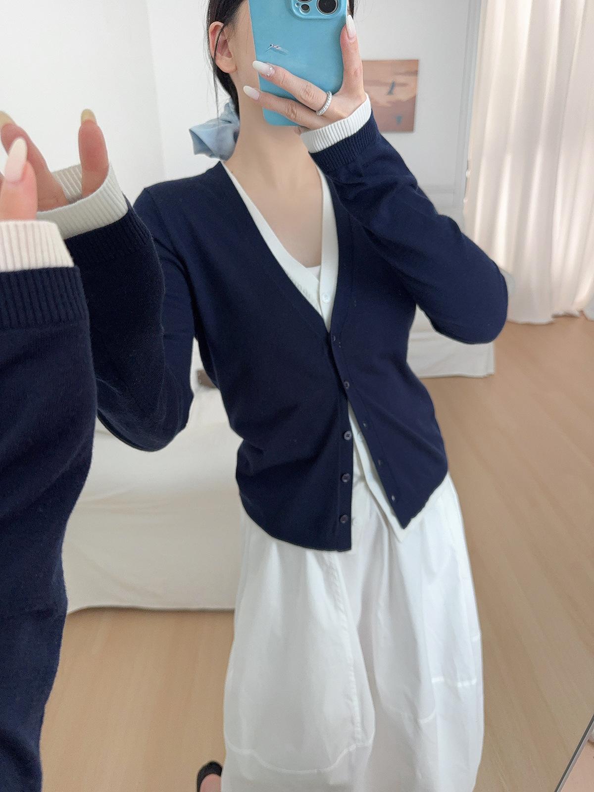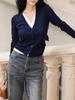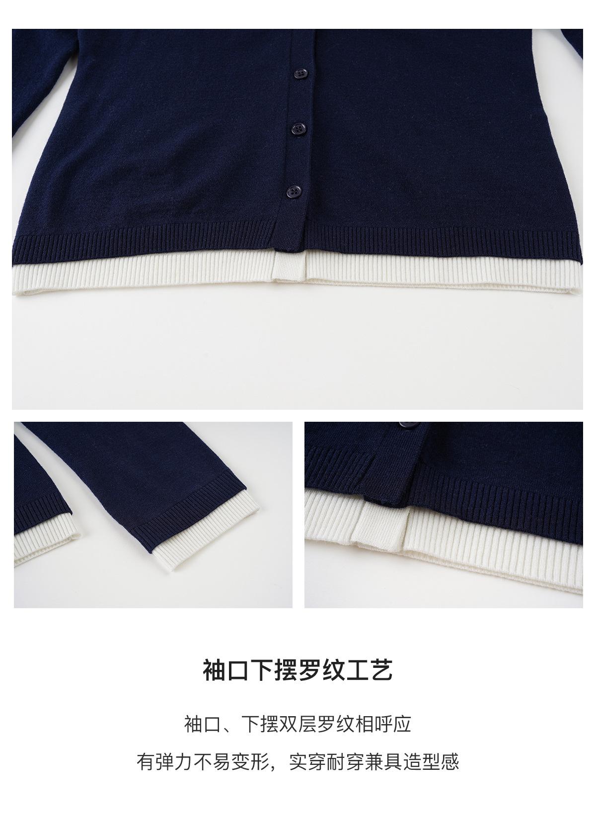 25 nuevo top de punto patchwork de principios de otoño falso de dos piezas de manga larga cárdigan acondicionado de lana fina ajustado cárdigan pequeño