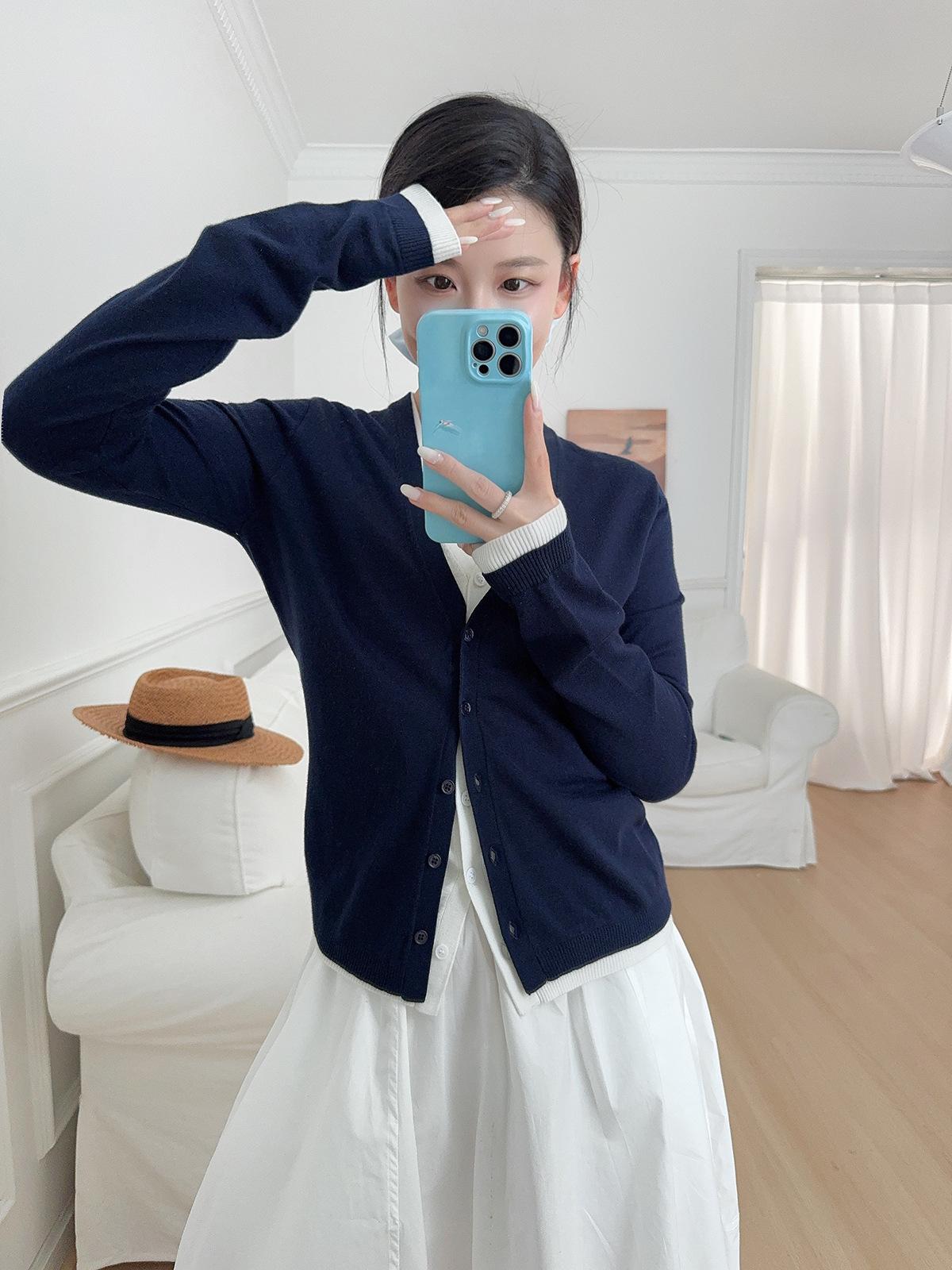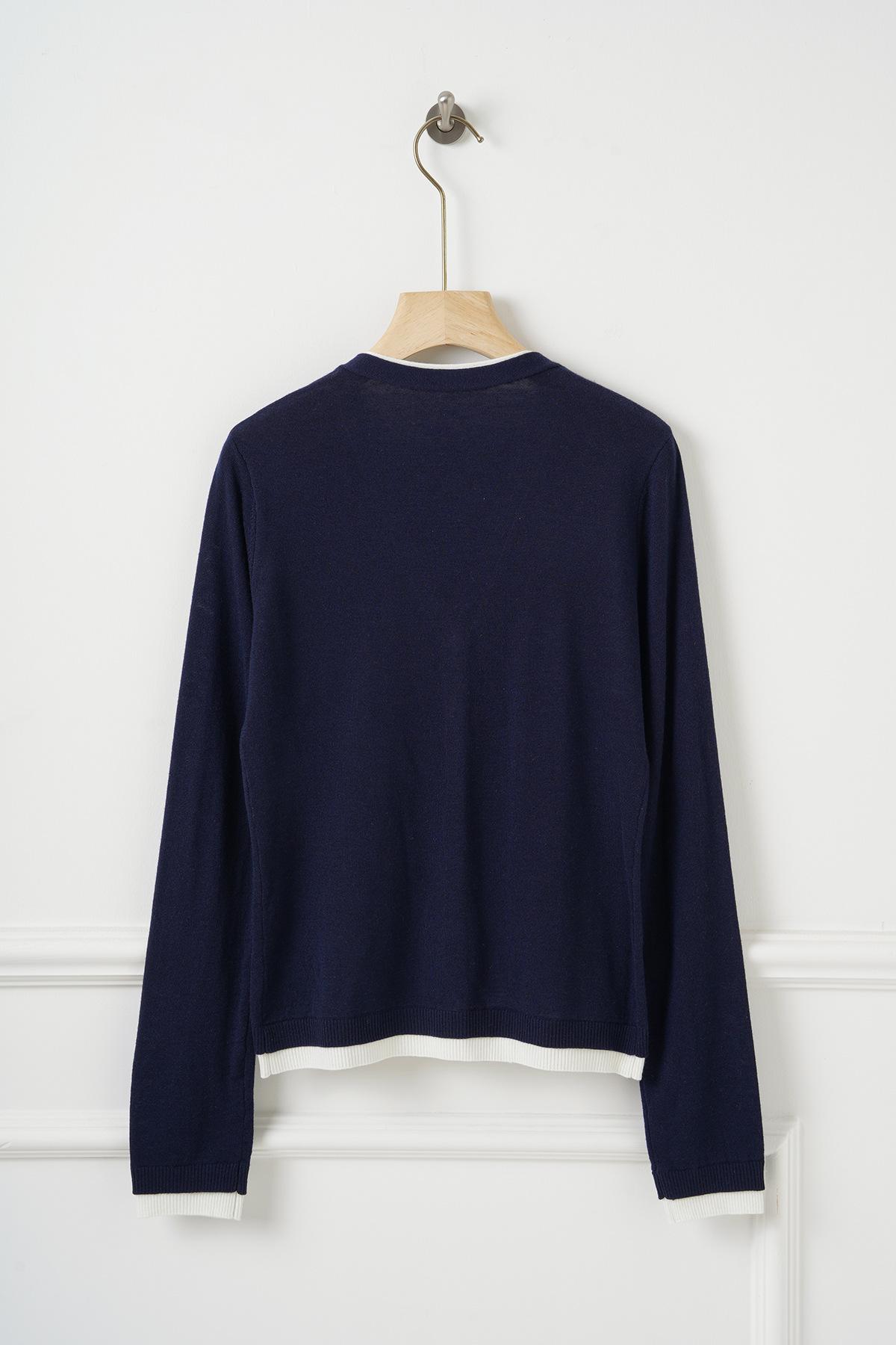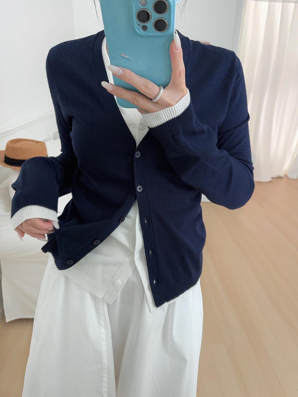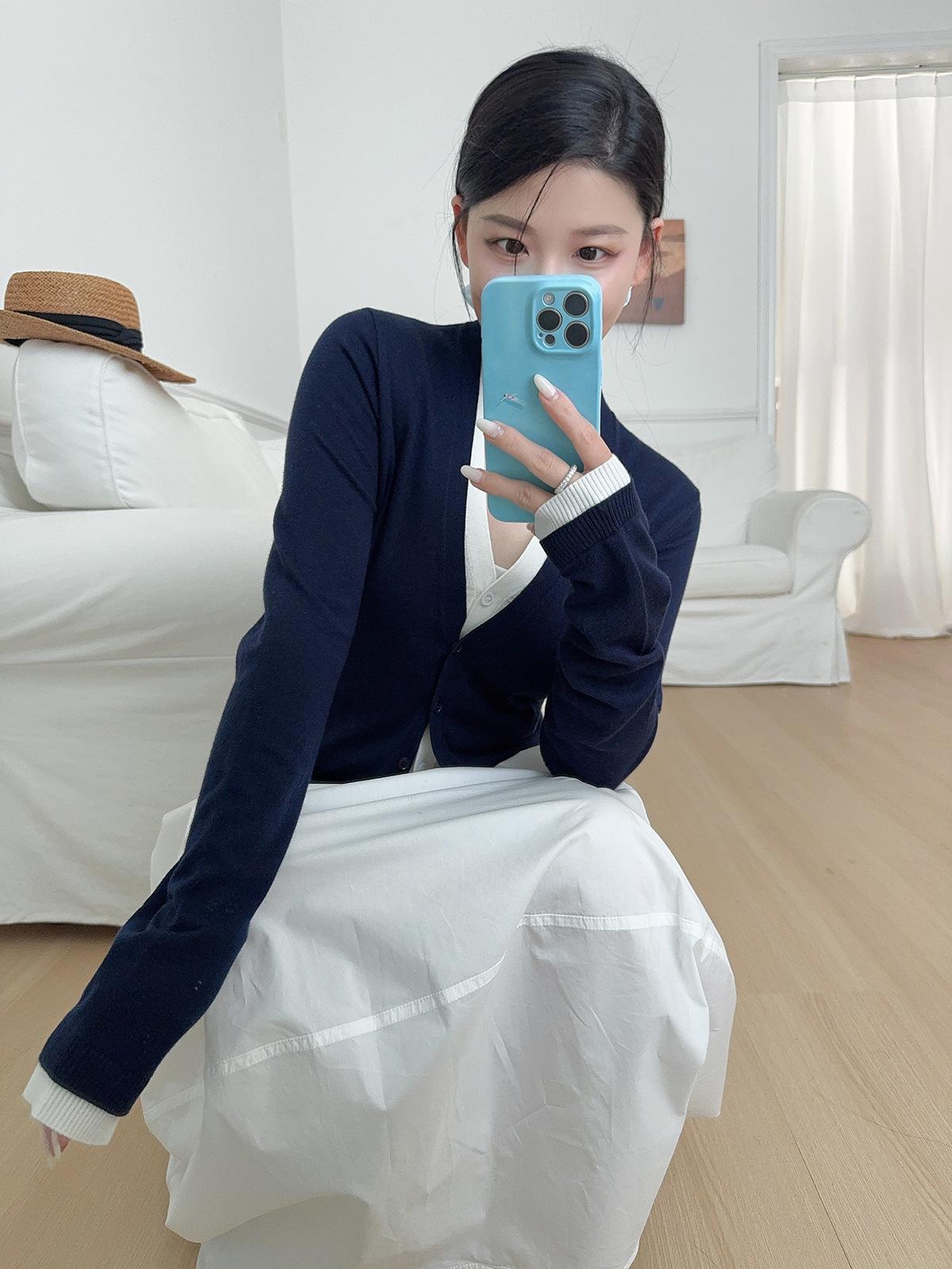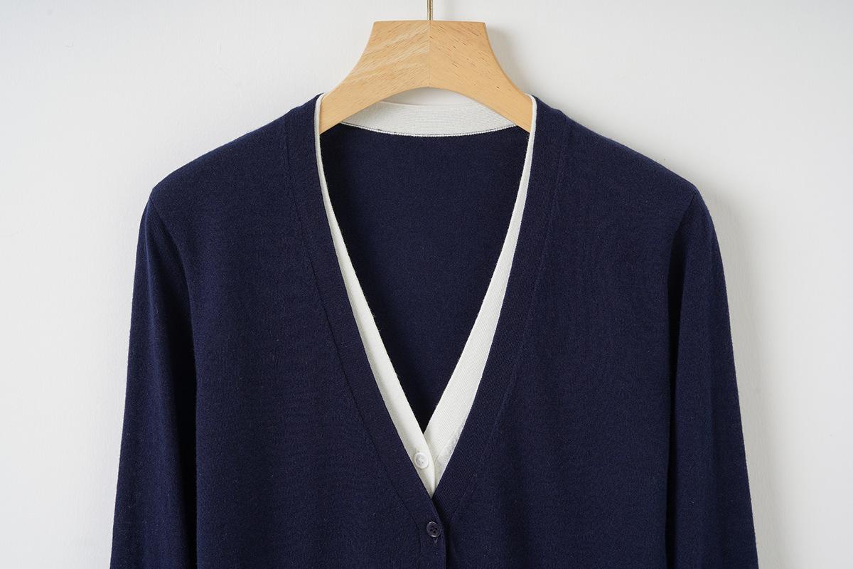 25 nuevo top de punto patchwork de principios de otoño falso de dos piezas de manga larga cárdigan acondicionado de lana fina ajustado cárdigan pequeño