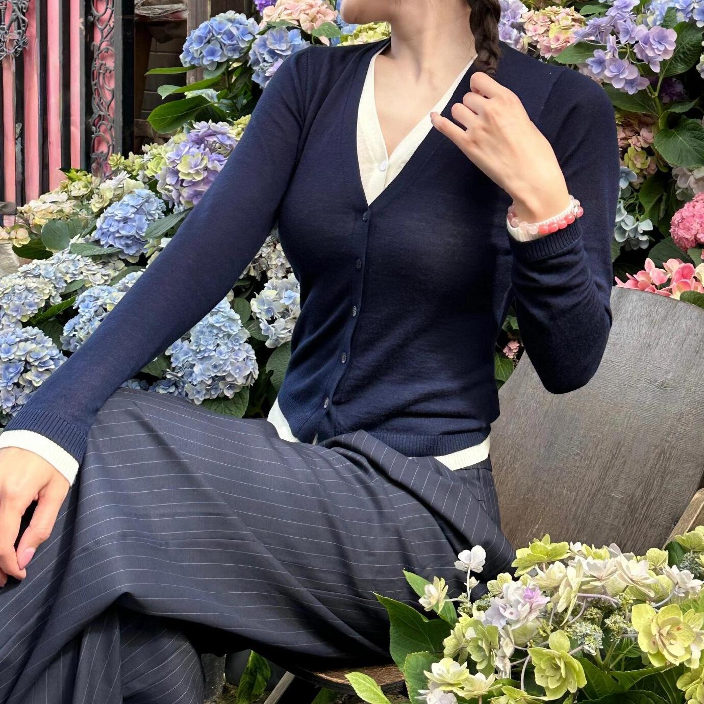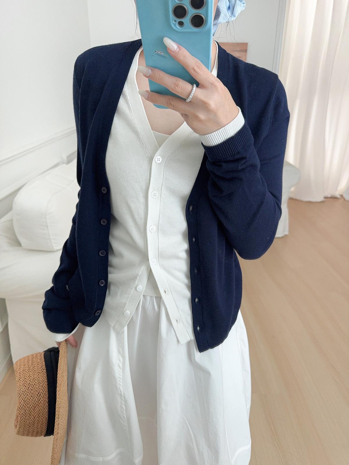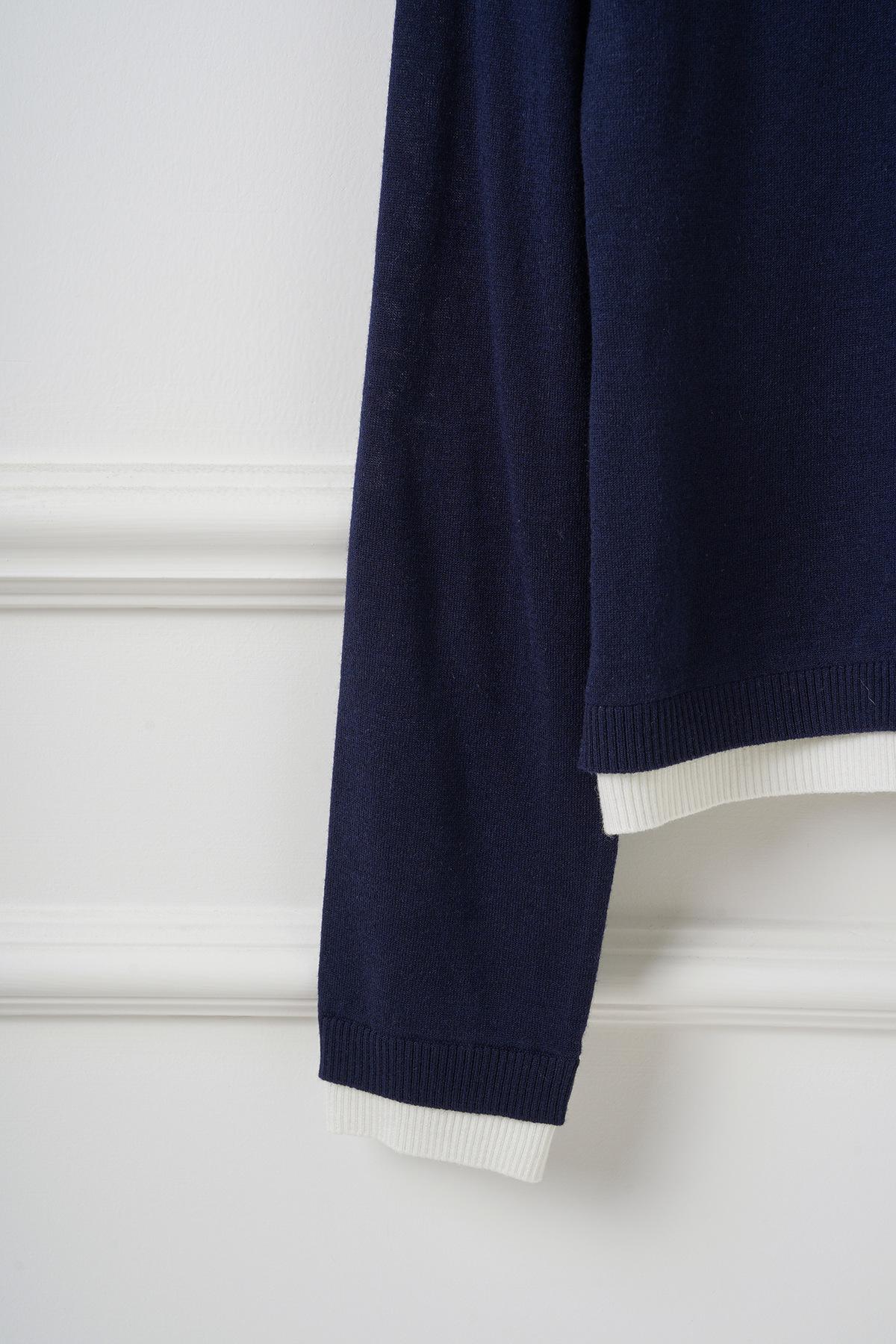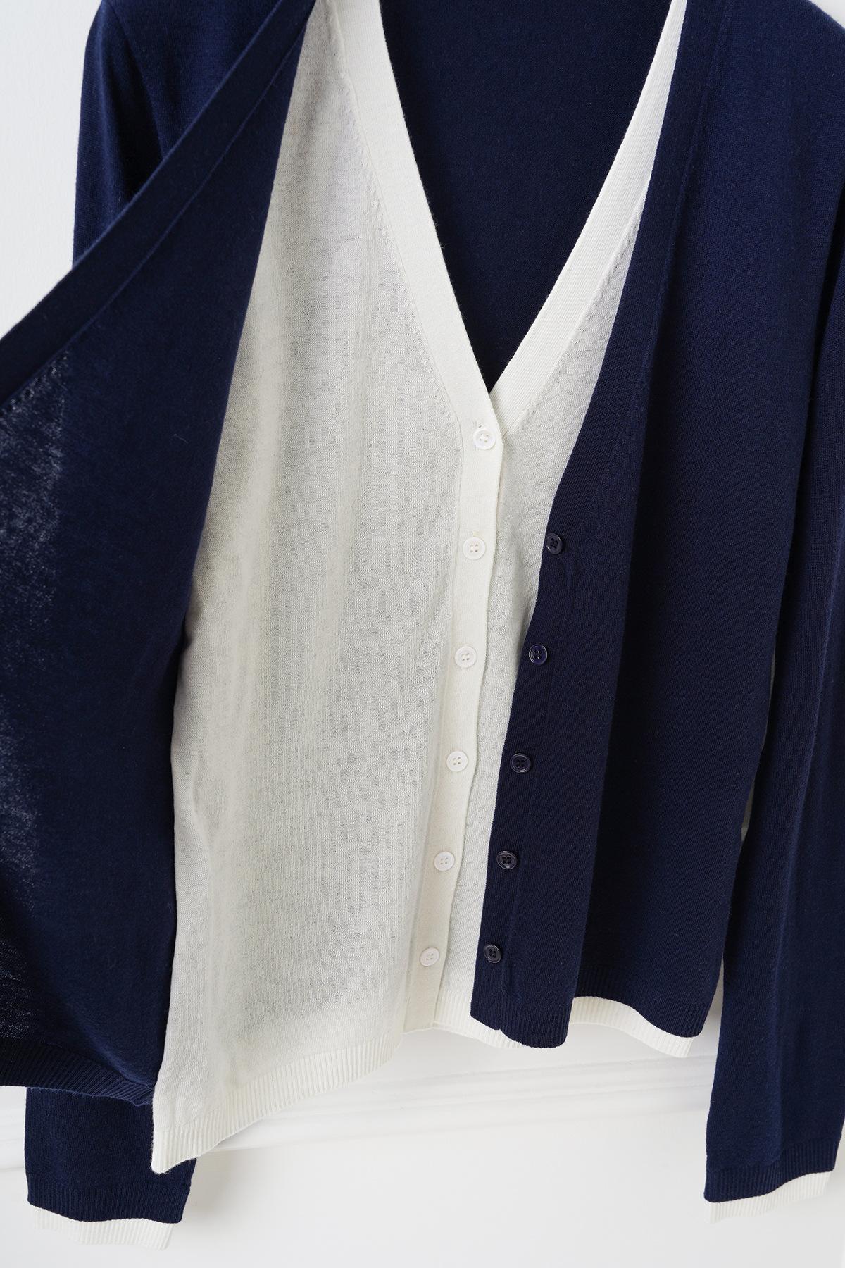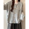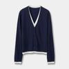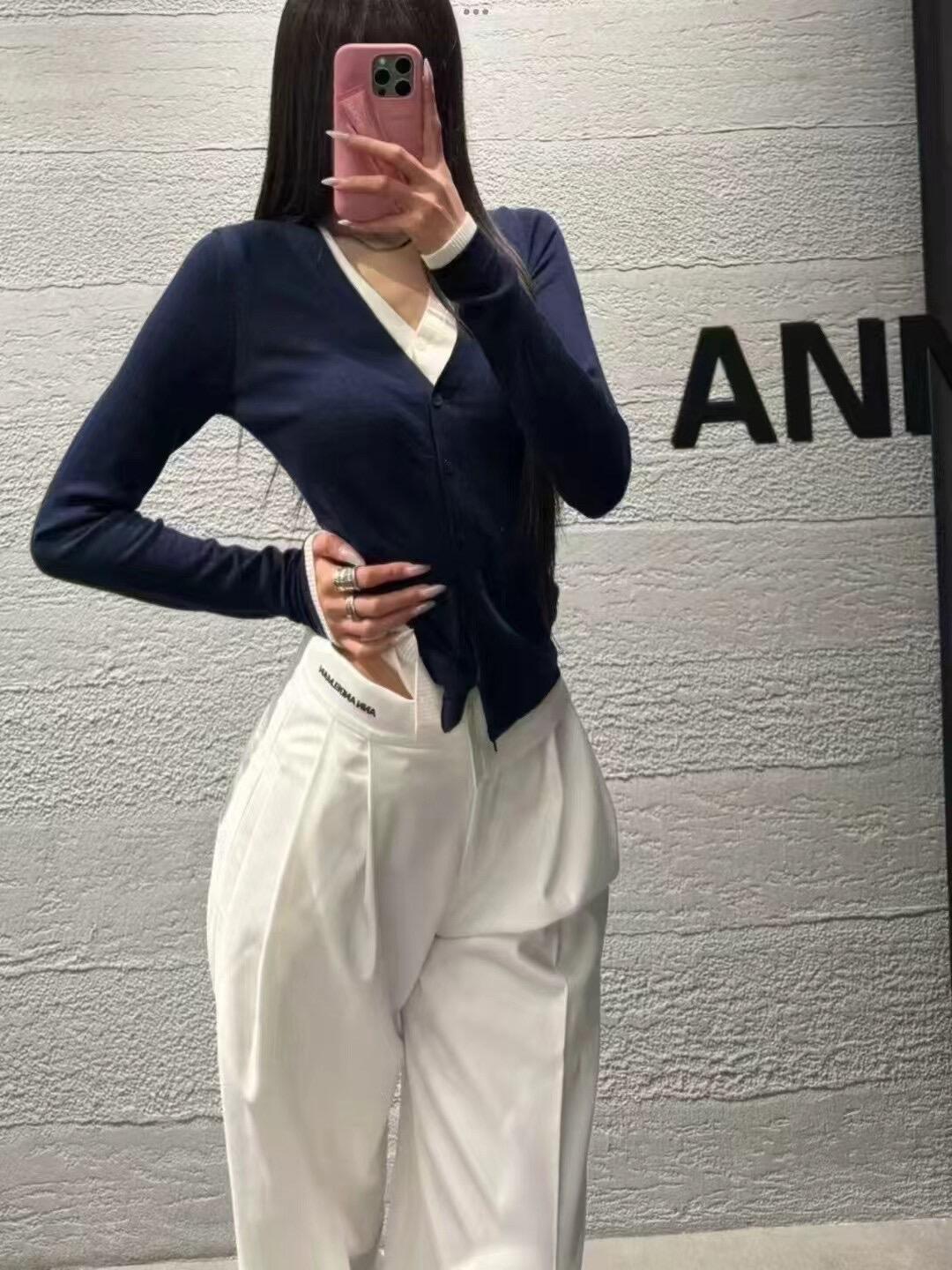 25 nuevo top de punto patchwork de principios de otoño falso de dos piezas de manga larga cárdigan acondicionado de lana fina ajustado cárdigan pequeño