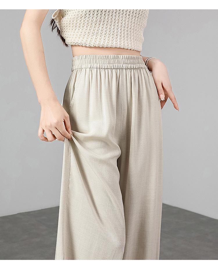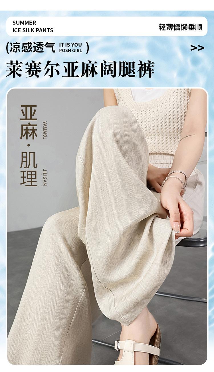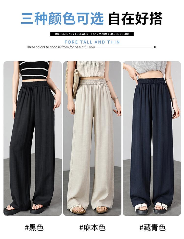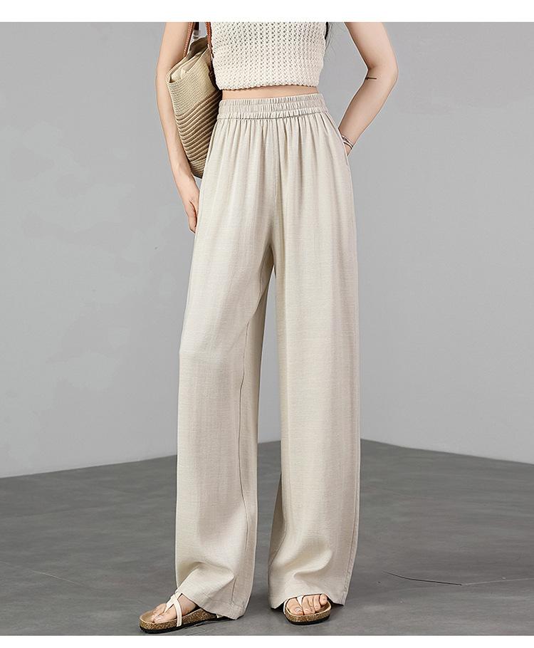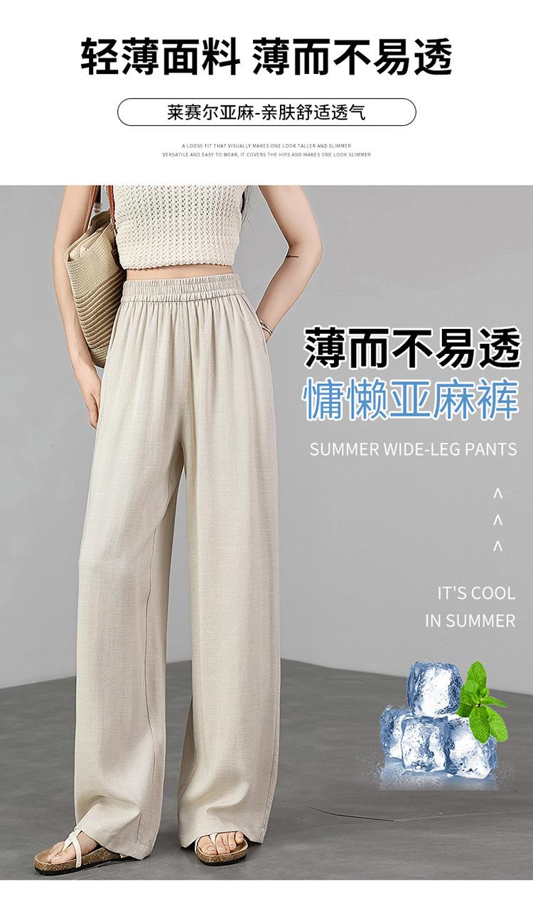 Pantalones de Lino Tencel Resistentes a las Arrugas de Talla Grande para Mujer Verano Delgados 2025 Nuevos Pantalones Sueltos de Pierna Recta Pantalones de Pierna Ancha de Seda Helada