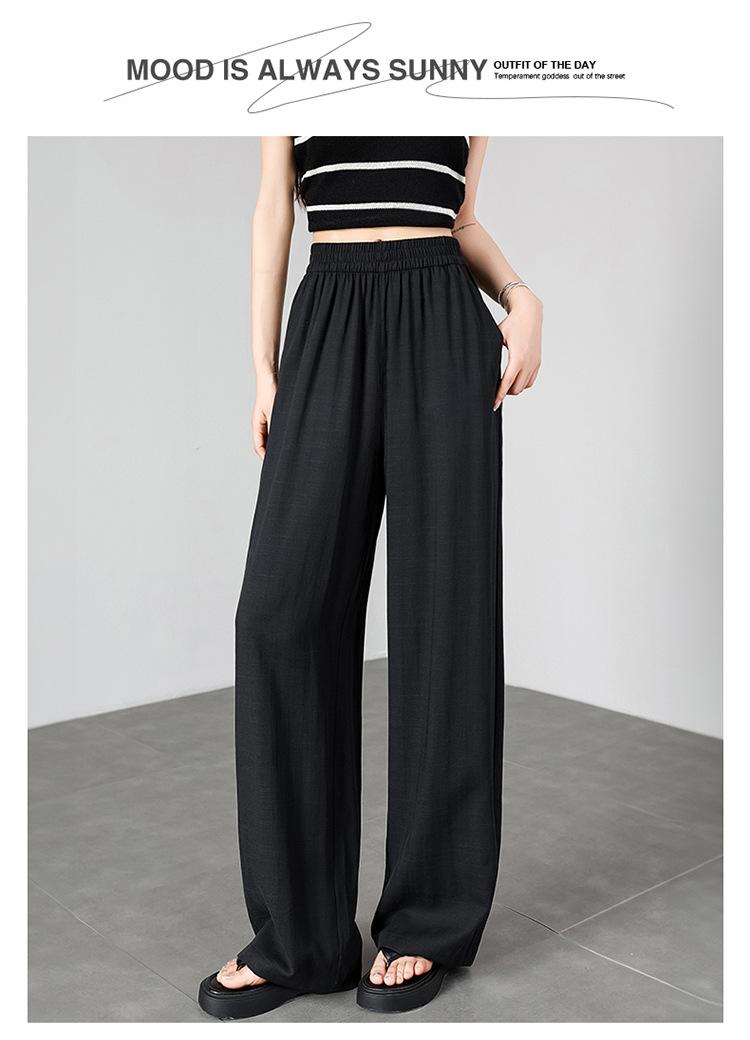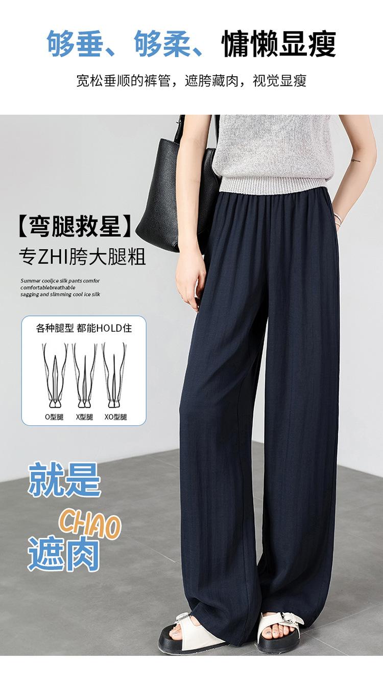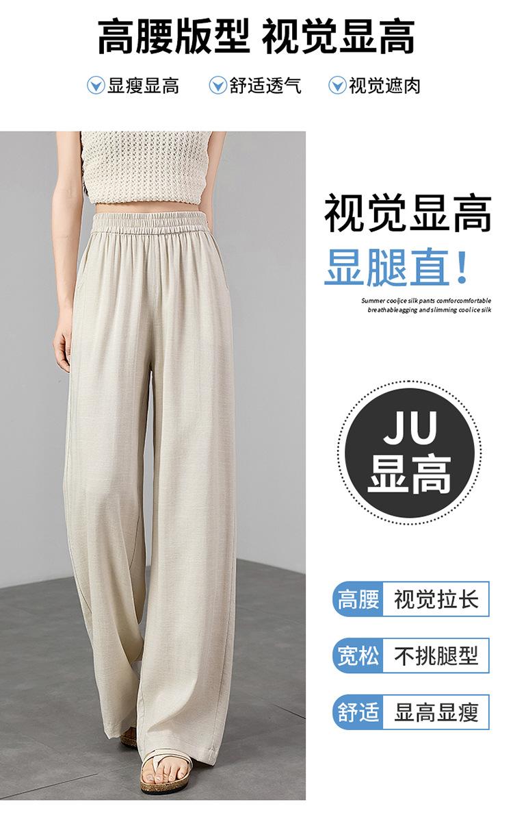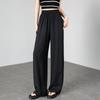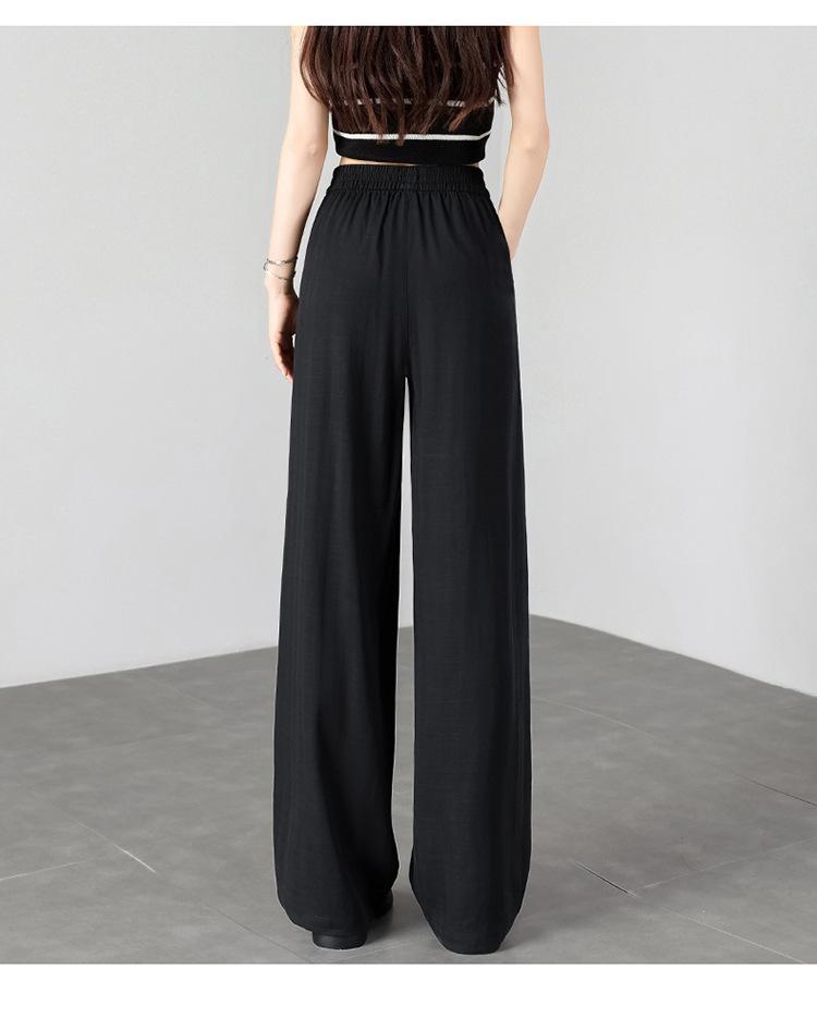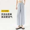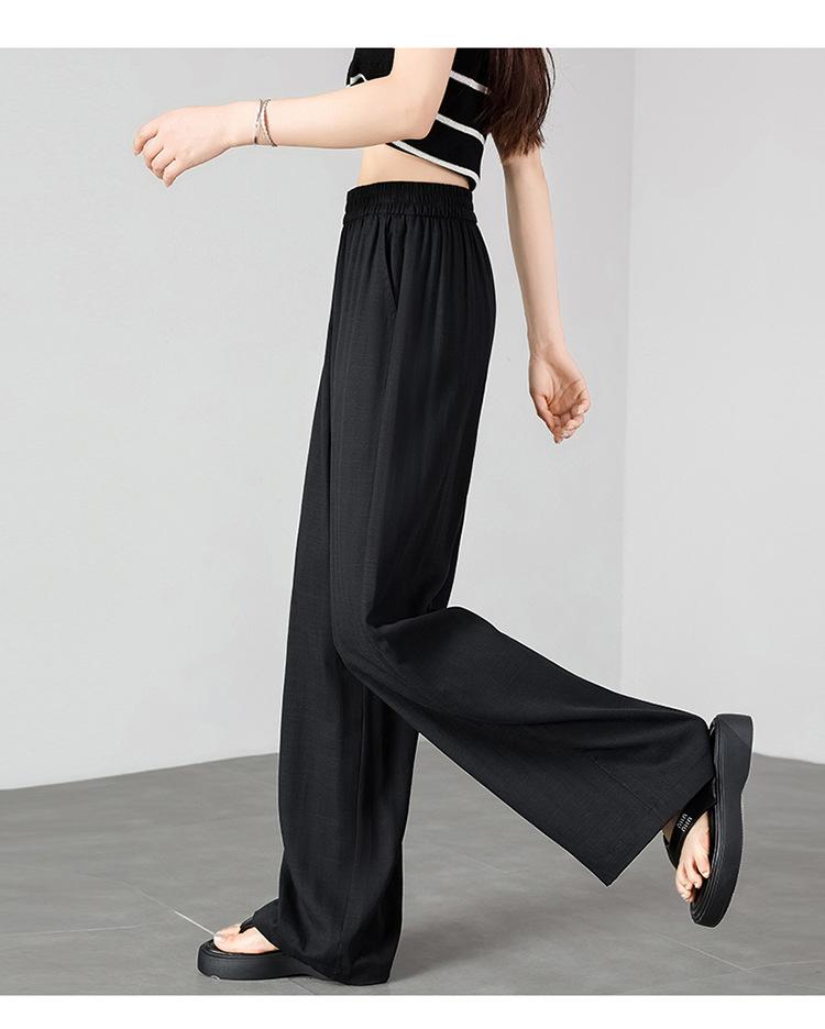 Pantalones de Lino Tencel Resistentes a las Arrugas de Talla Grande para Mujer Verano Delgados 2025 Nuevos Pantalones Sueltos de Pierna Recta Pantalones de Pierna Ancha de Seda Helada
