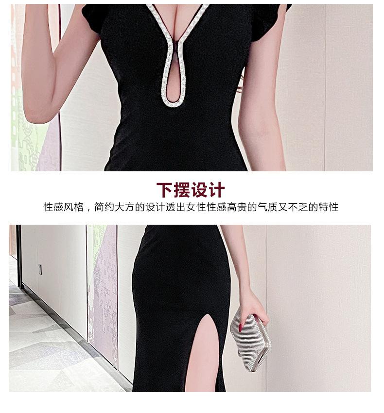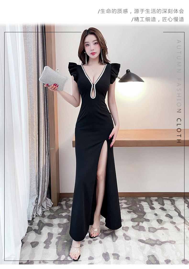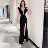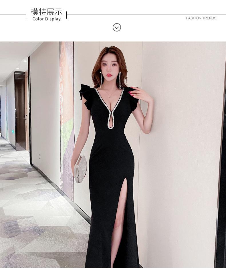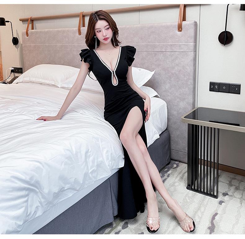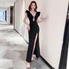Vestido Petite de Manga Corta con Volantes y Abertura Estilo Francés Verano Nuevo Estilo Puro Deseo Adelgazante Bodycon Vestido Largo Ropa de Mujer