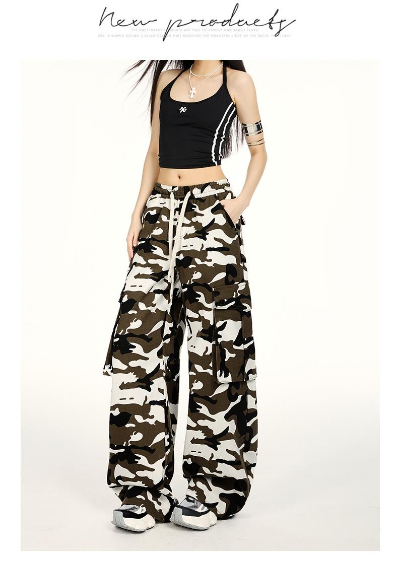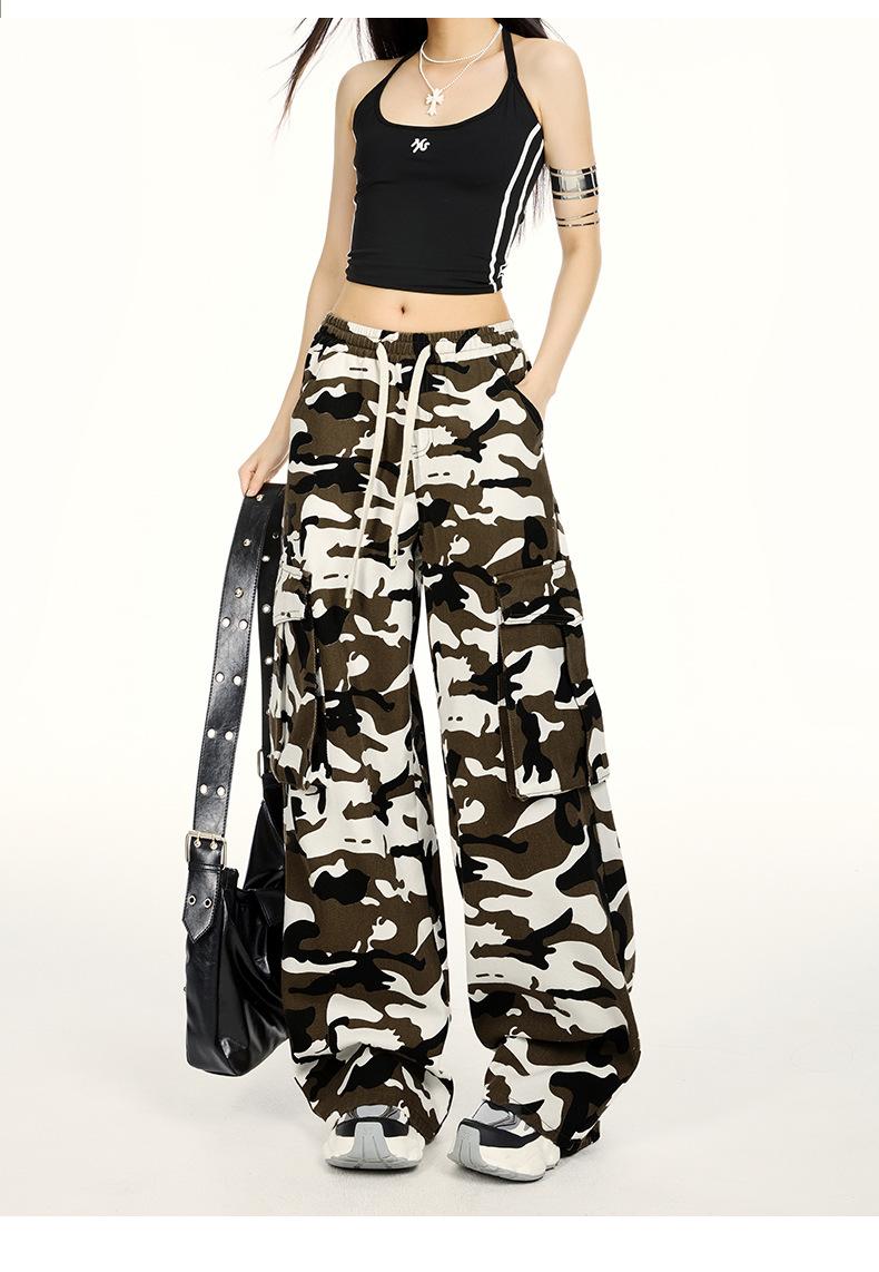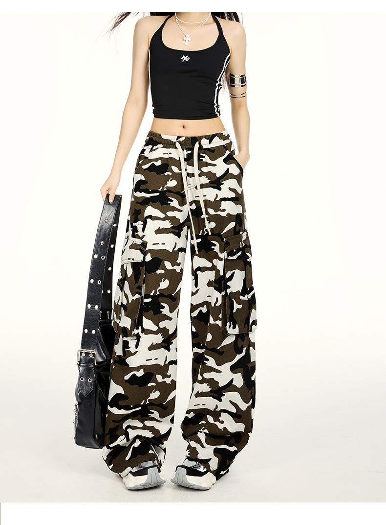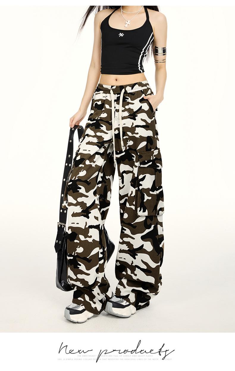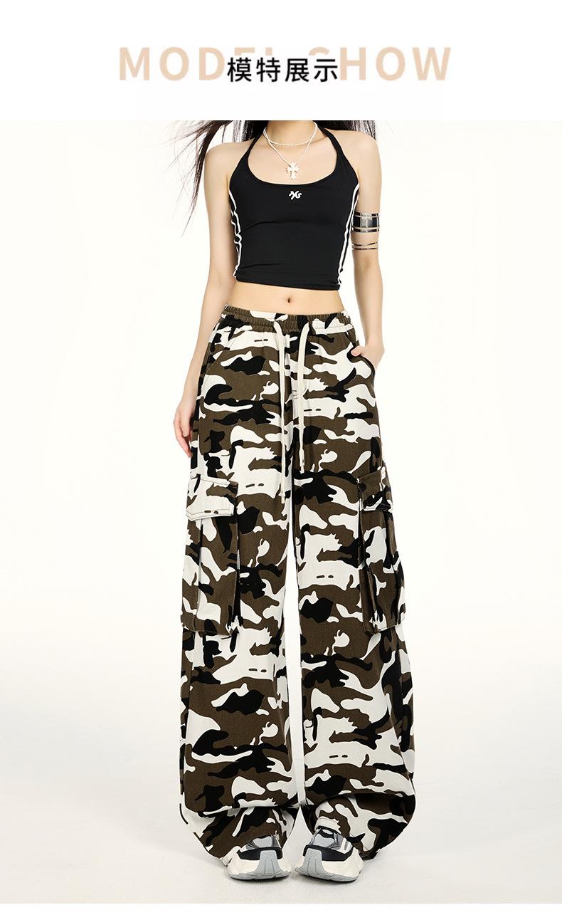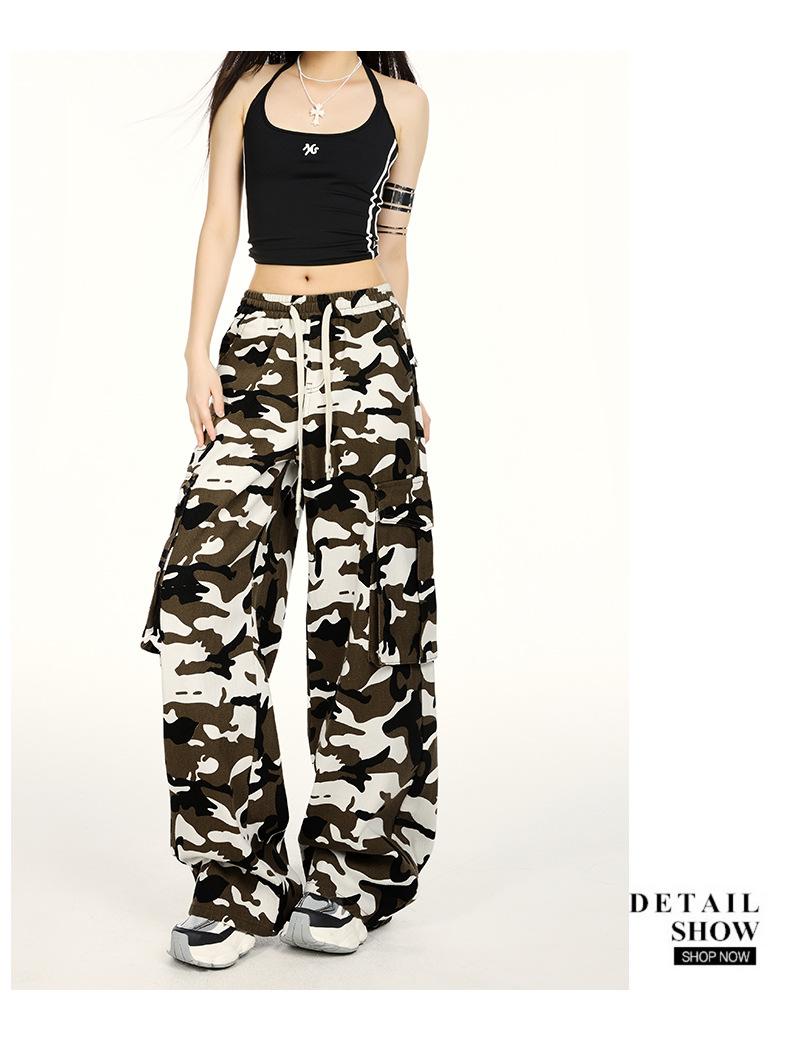 Pantalones Cargo Camuflaje Americano Sueltos Casuales Pierna Ancha Pantalones Moda Personalidad Chica Caliente Jeans con Cordón para Mujer