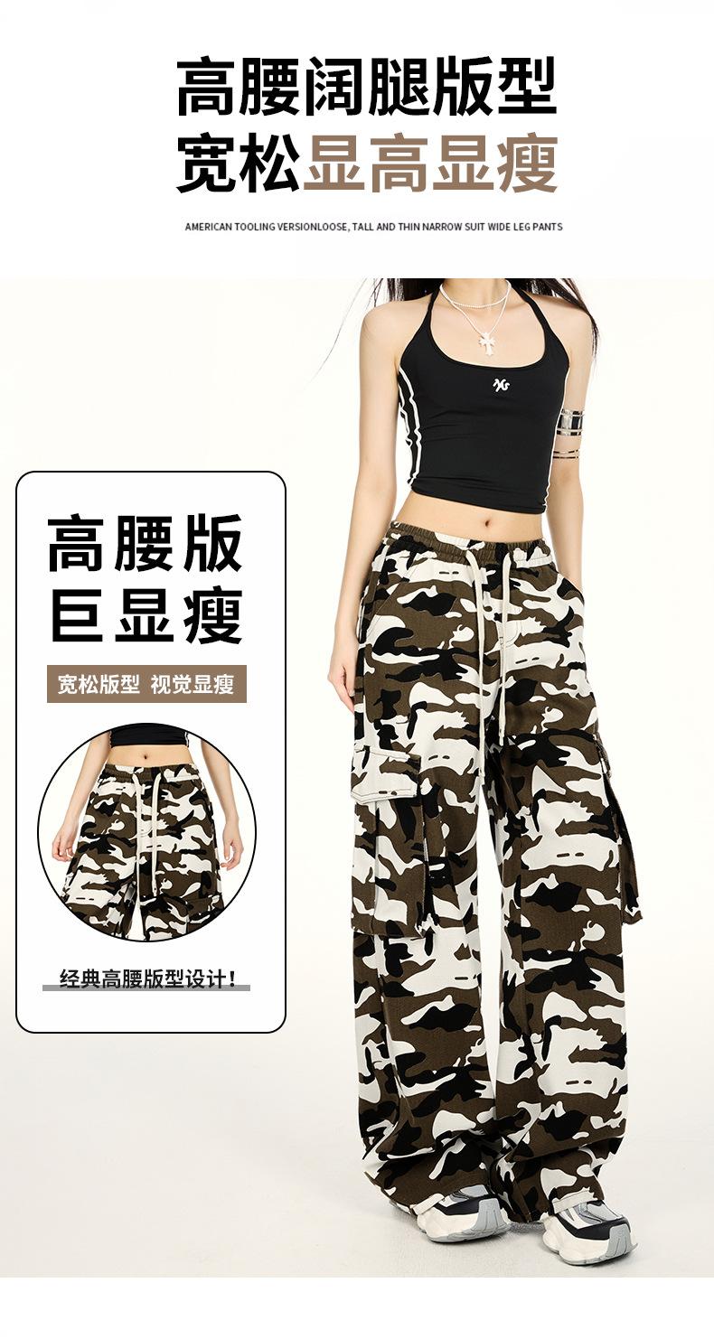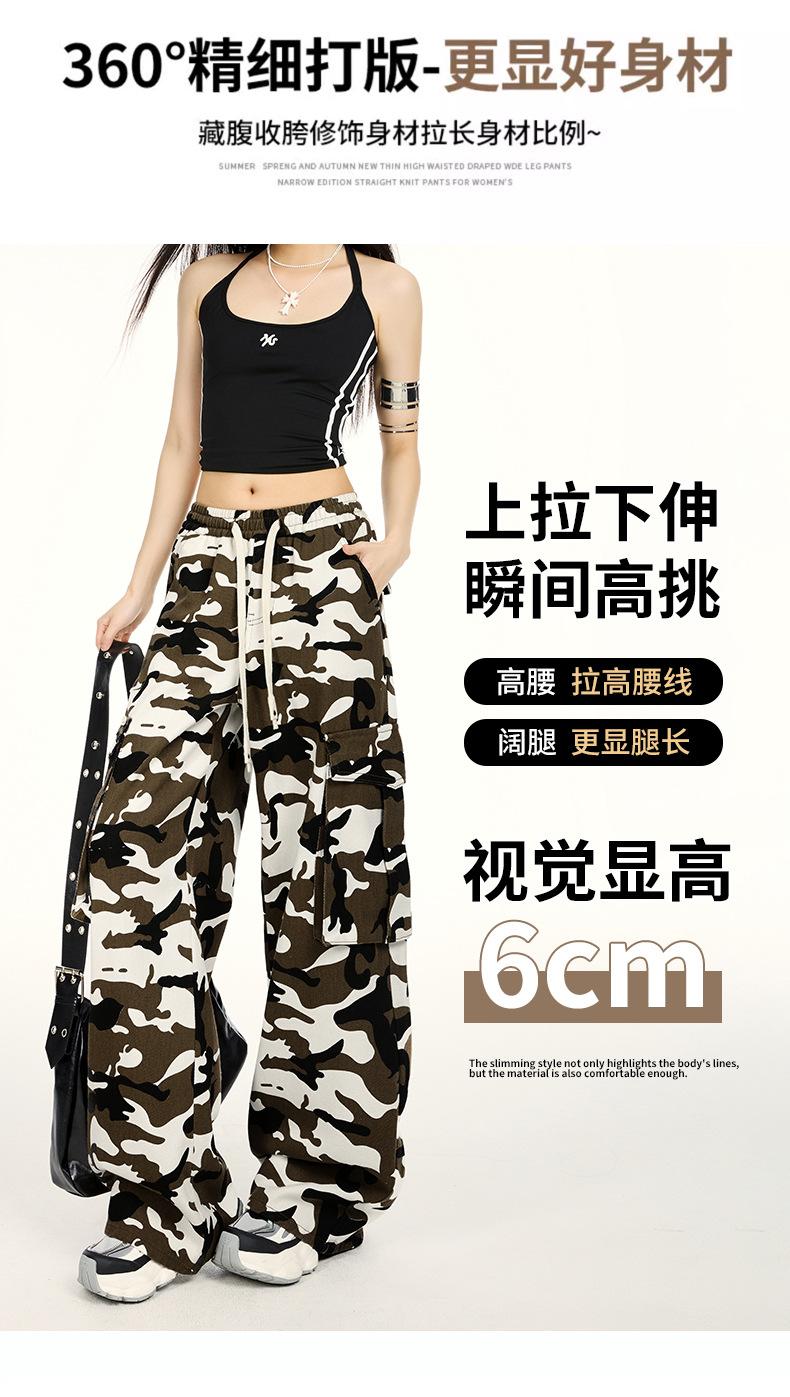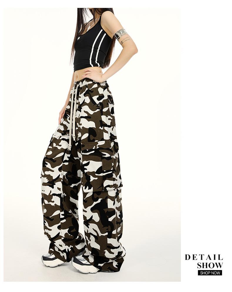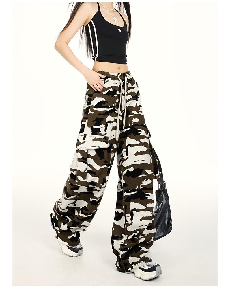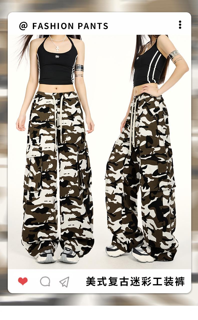 Pantalones Cargo Camuflaje Americano Sueltos Casuales Pierna Ancha Pantalones Moda Personalidad Chica Caliente Jeans con Cordón para Mujer