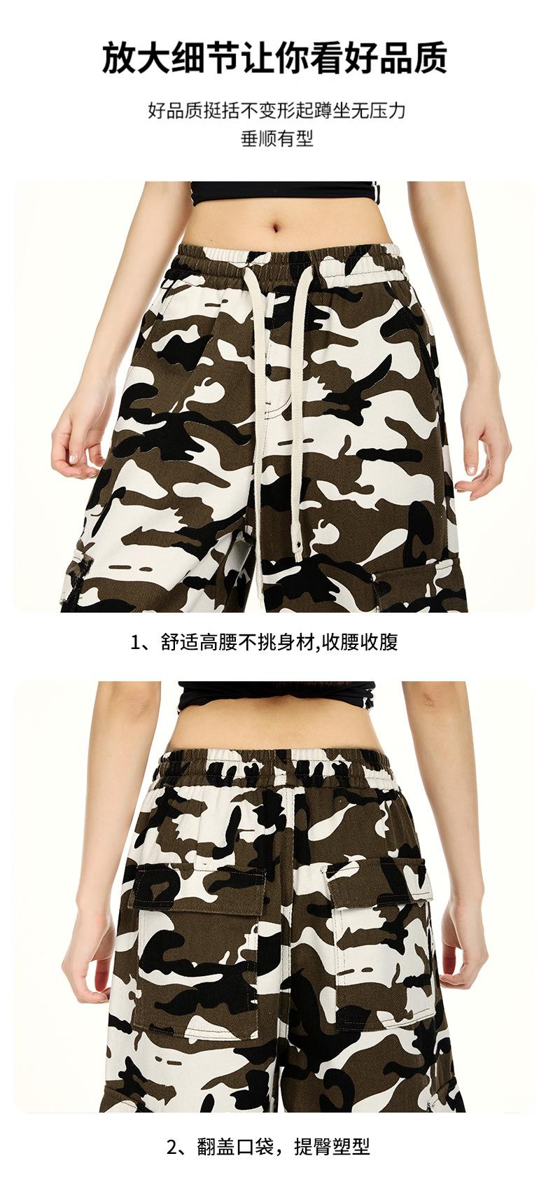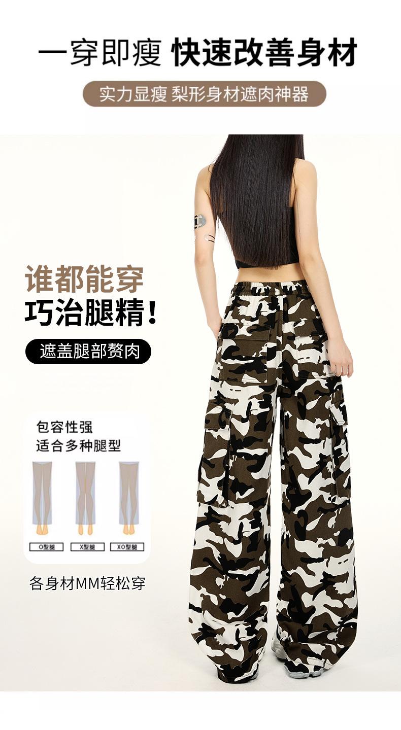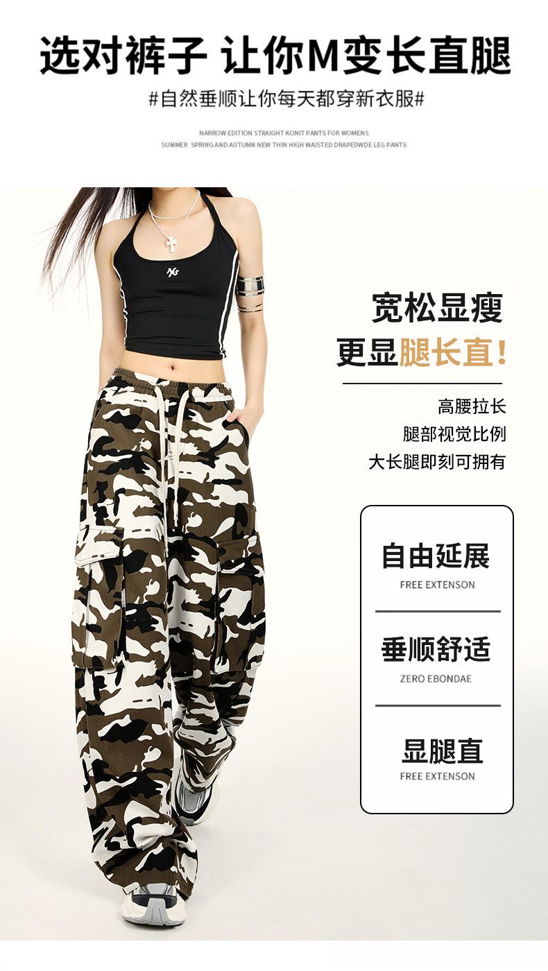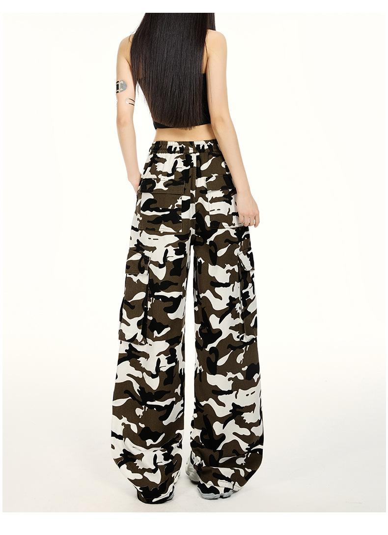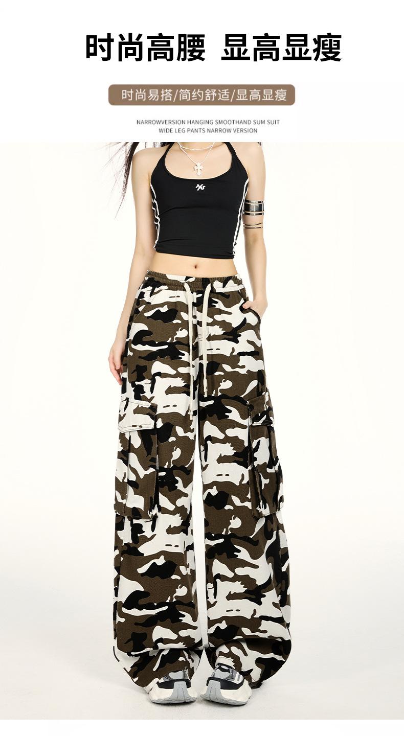 Pantalones Cargo Camuflaje Americano Sueltos Casuales Pierna Ancha Pantalones Moda Personalidad Chica Caliente Jeans con Cordón para Mujer