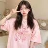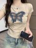 Verano 2025 Nuevo Estilo Europeo y Americano 100% Algodón Puro Camiseta de Manga Corta Estilo Lazy Dulce y Divertida Estampado de Mariposas Top