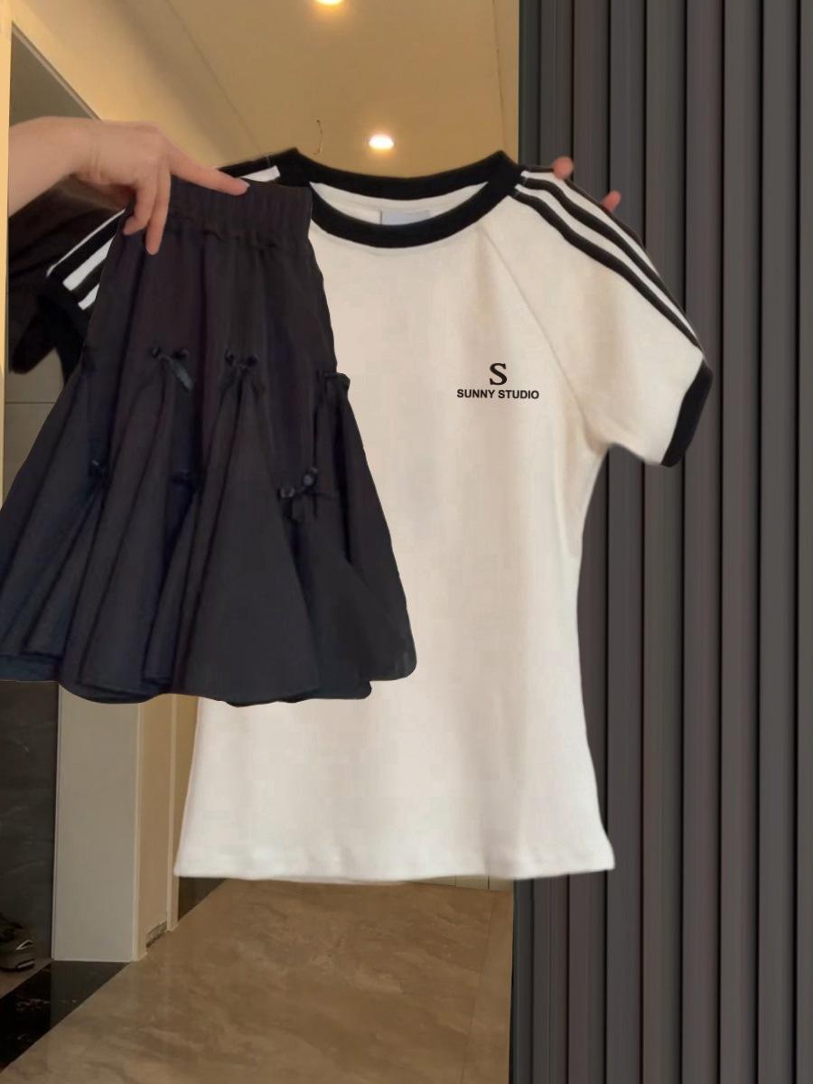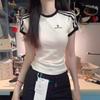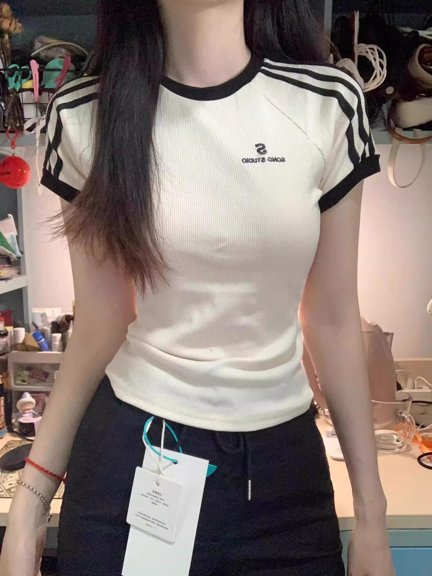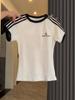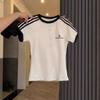 Verano 2025 Diseño Retro Americano Camiseta de Manga Corta a Rayas para Mujer Look Adelgazante Único Top Estampado Chic