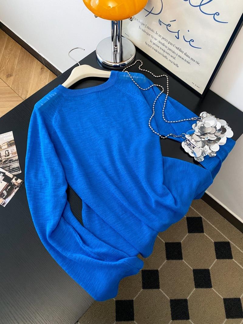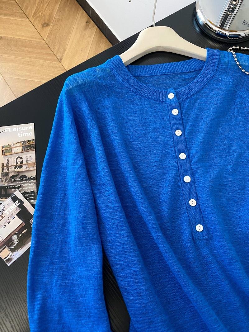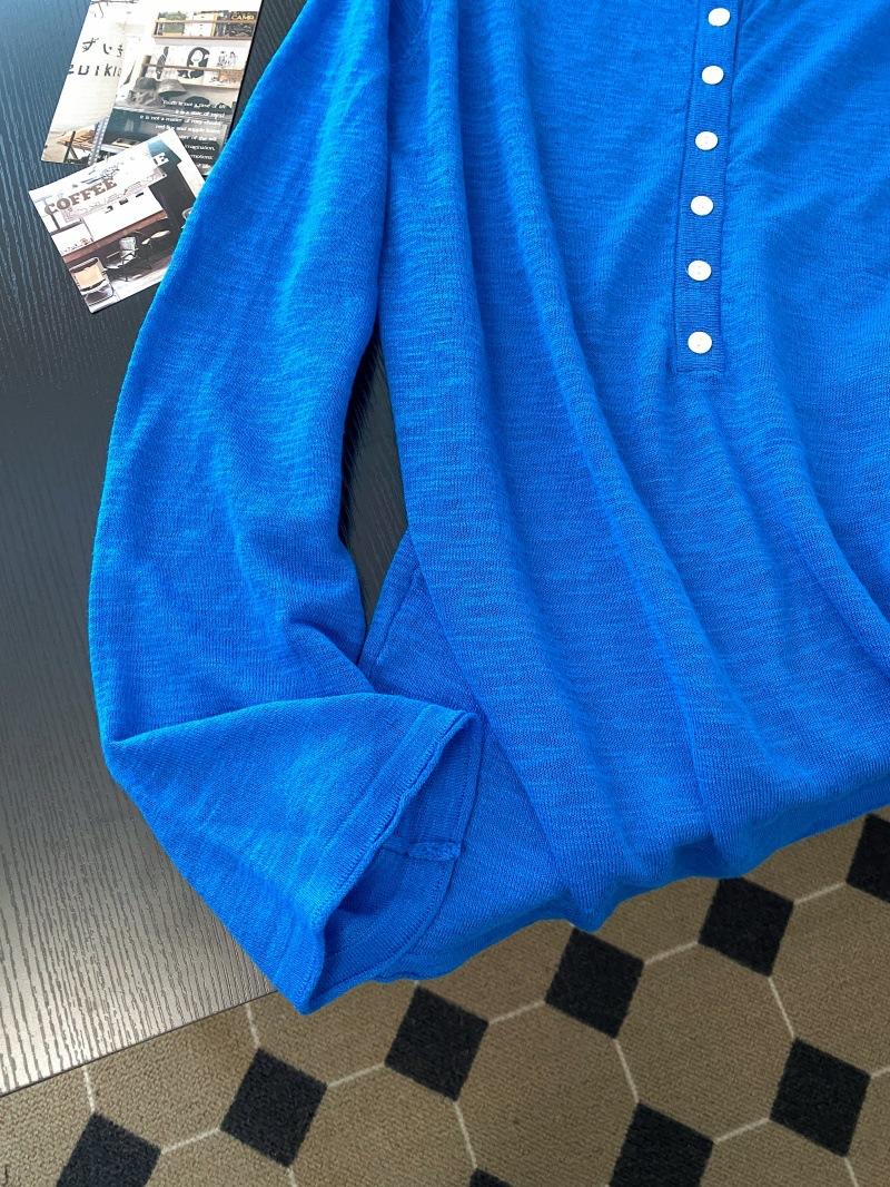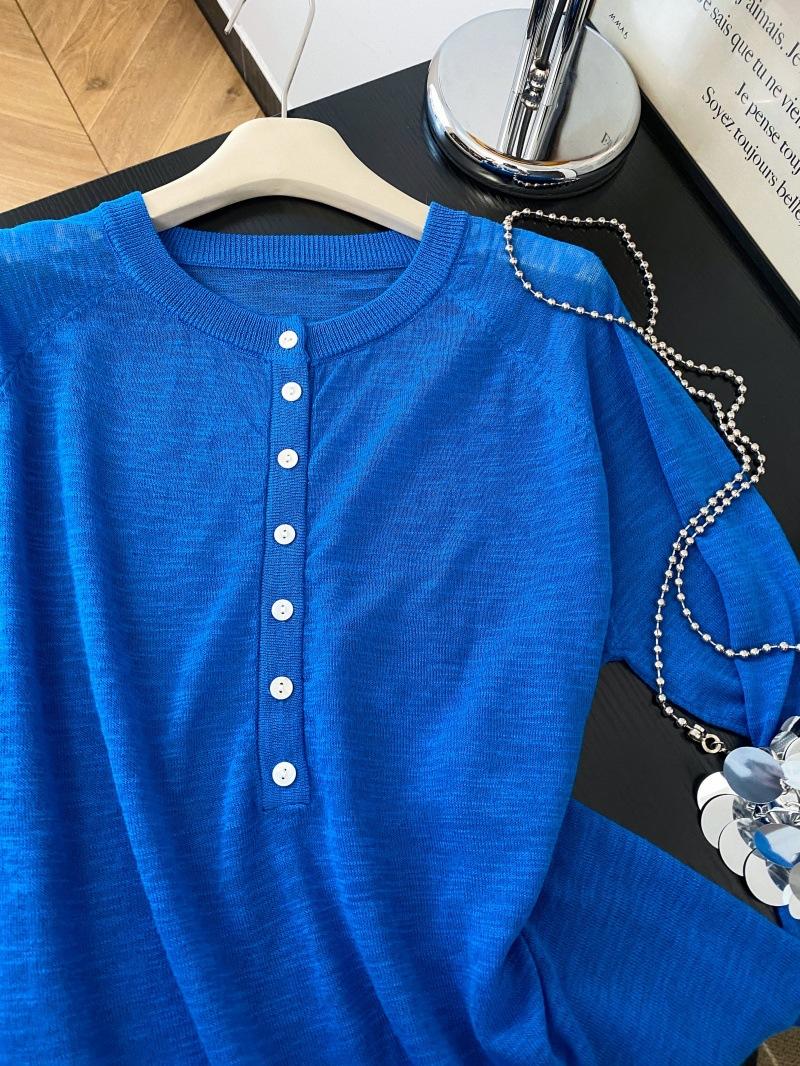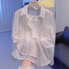 Camiseta de Protección Solar de Manga Larga de Punto de Seda de Hielo Azul Cubre-Camisa para Verano para Mujer Estilo Holgado Perezoso Top de Gasa Microtransparente
