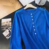 Camiseta de Protección Solar de Manga Larga de Punto de Seda de Hielo Azul para Mujer, Ropa Exterior de Verano, Estilo Holgado y Relajado, Top de Gasa Microtransparente