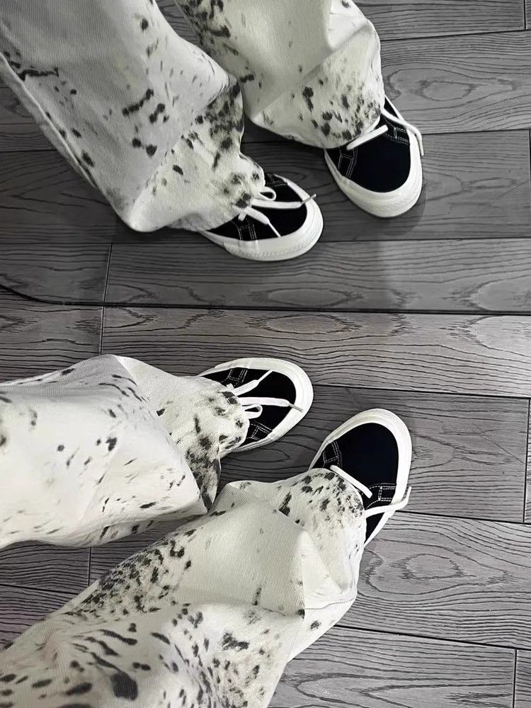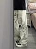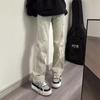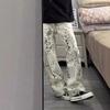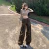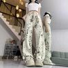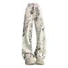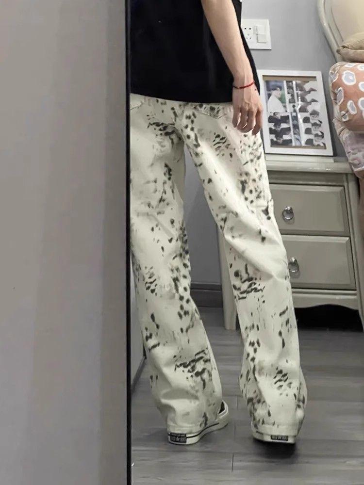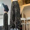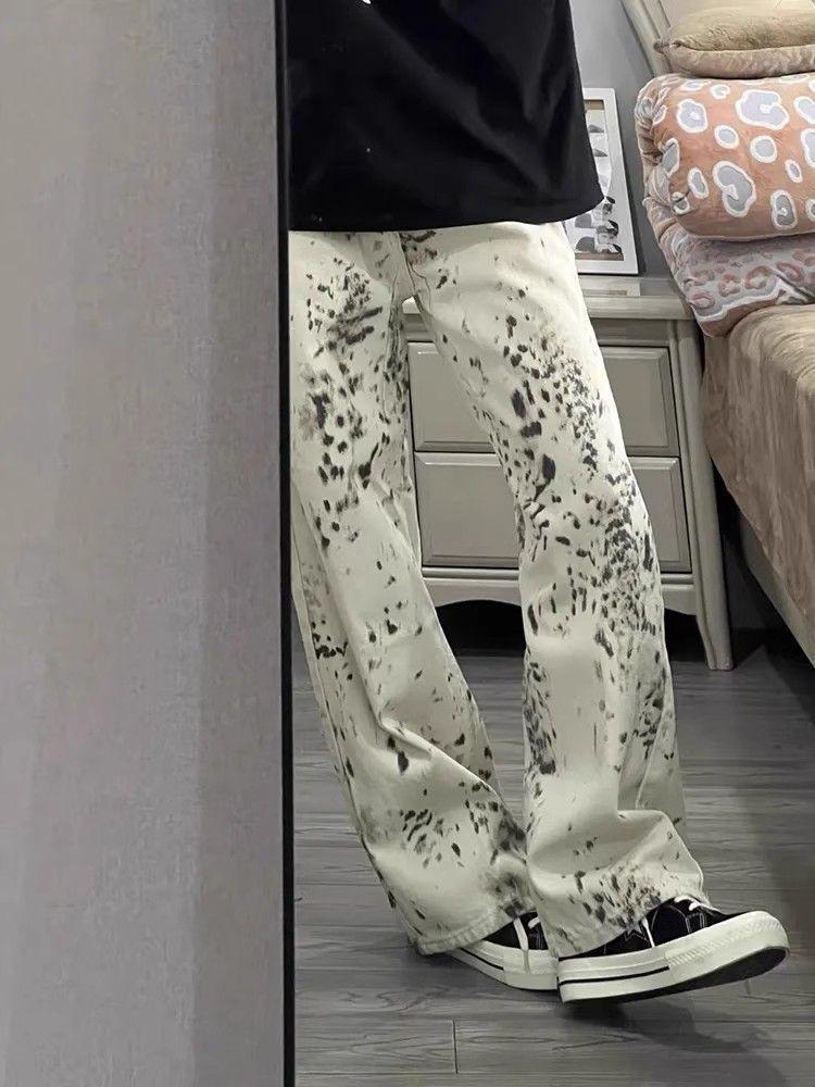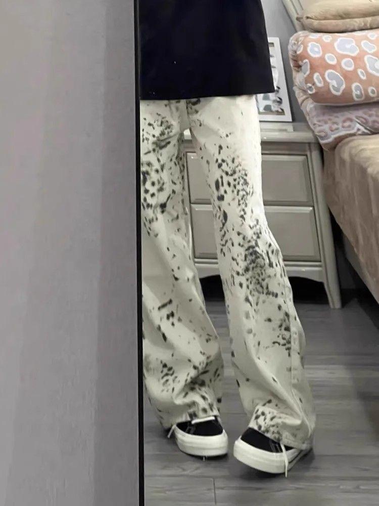 Jeans de Pierna Ancha Estilo Americano Vintage Lavado con Estampado de Leopardo para Mujer Primavera y Otoño High Street Chica Hot Cintura Alta Sueltos Rectos Casuales