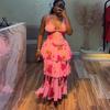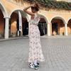 Europeo y Americano 2025 Nuevo Vestido Vacacional de Moda para Mujer Transfronterizo Sexy Ajustado Vestido Largo Elegante de Gasa Estampado