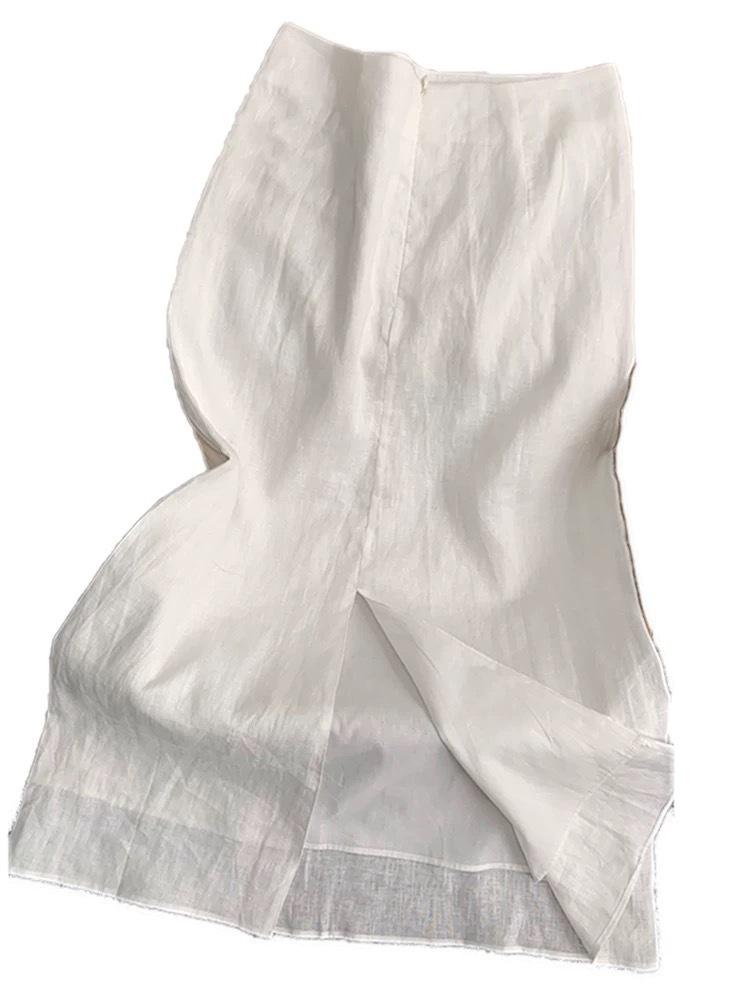 Falda midi de lino de algodón tencel blanco de alta gama para mujer verano 2025 nueva cintura alta largo largo abertura falda de tejido de ramio