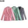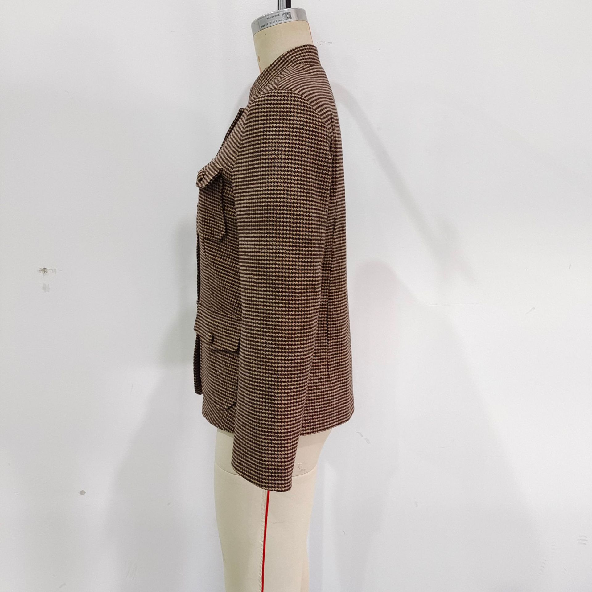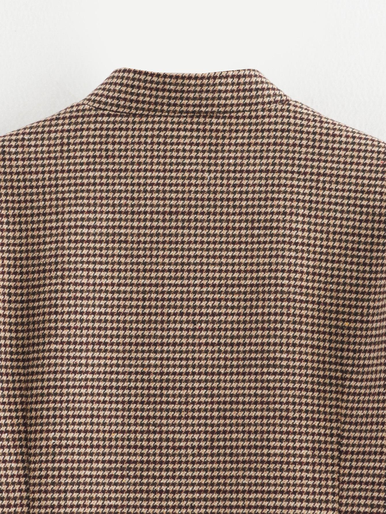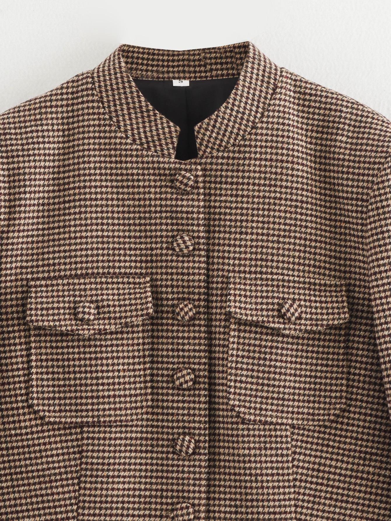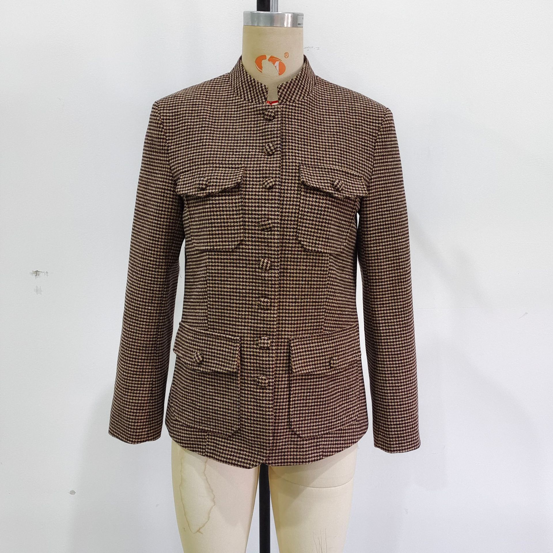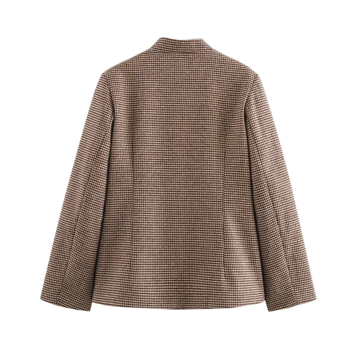Amazon transfronterizo para mujer primavera nueva moda retro cuello alto pata de gallo chaqueta chaqueta chaqueta venta al por mayor