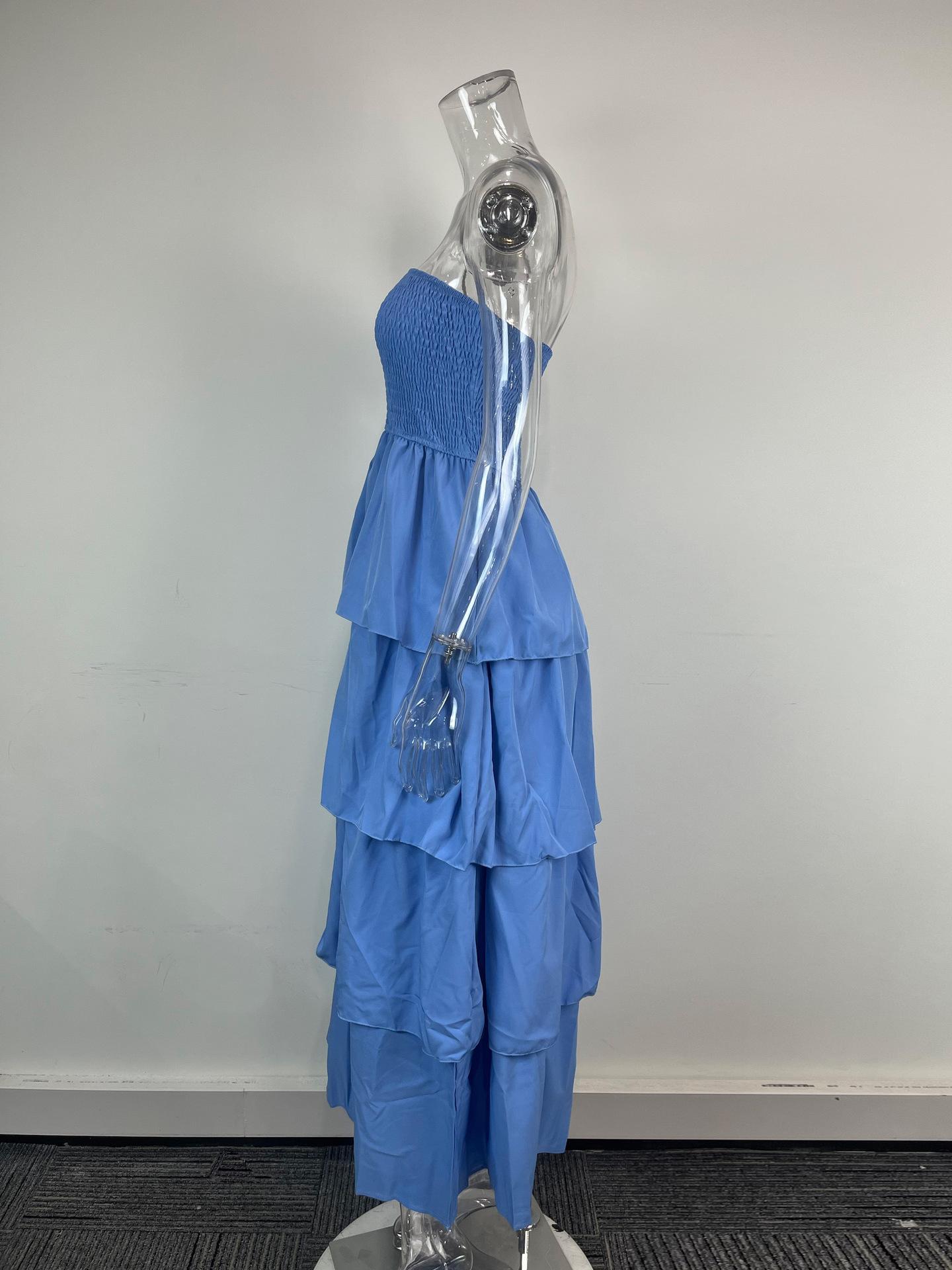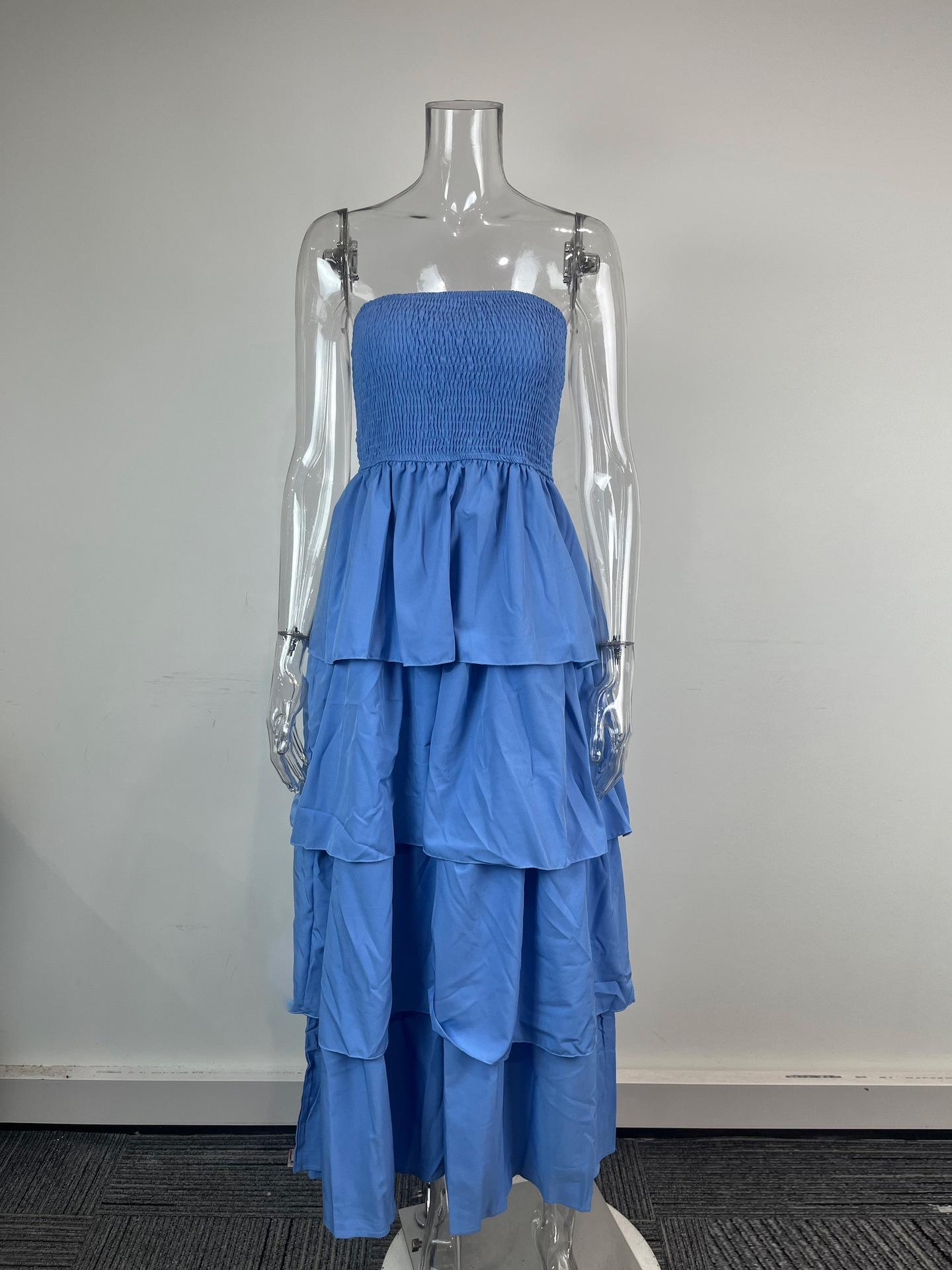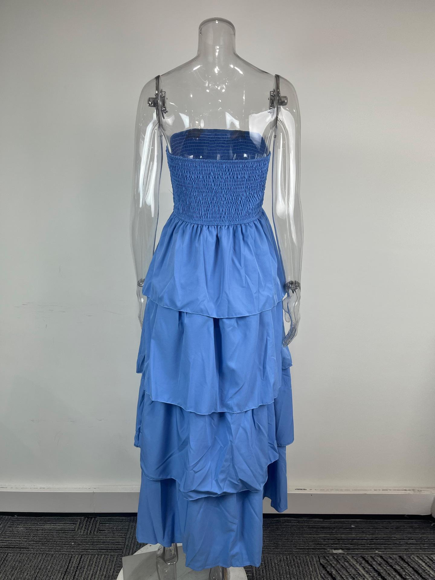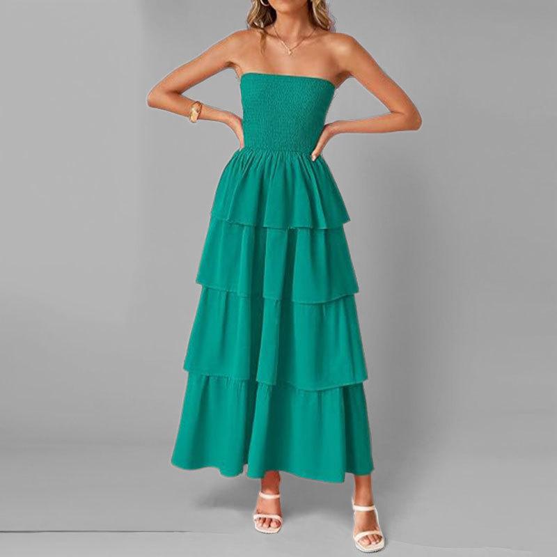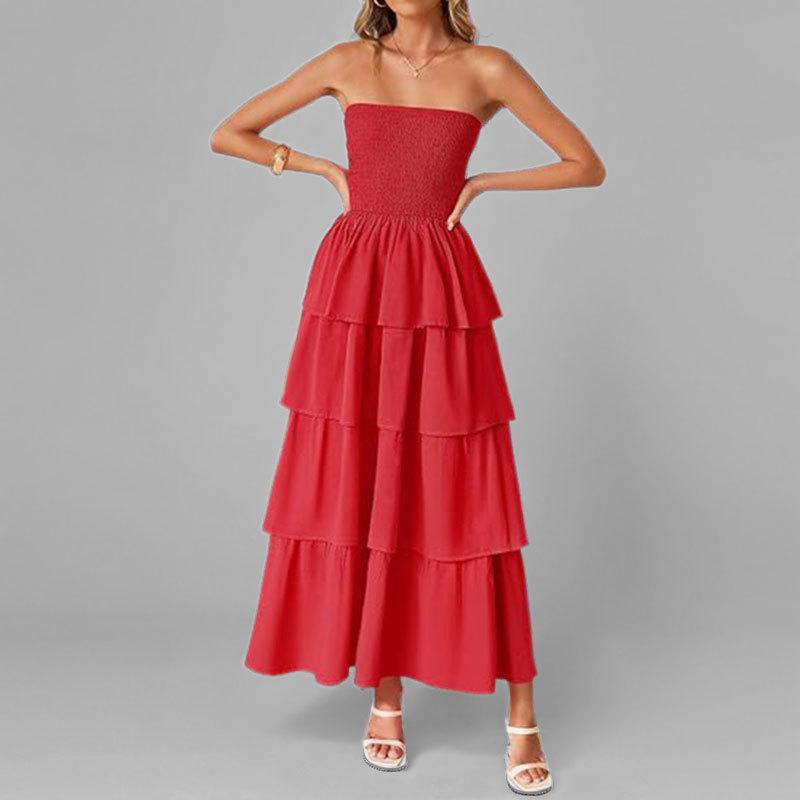 Aliexpress Primavera 2025 Nuevo Vestido Largo de Moda sin Tirantes de Color Sólido para Mujer Europeo y Americano Transfronterizo