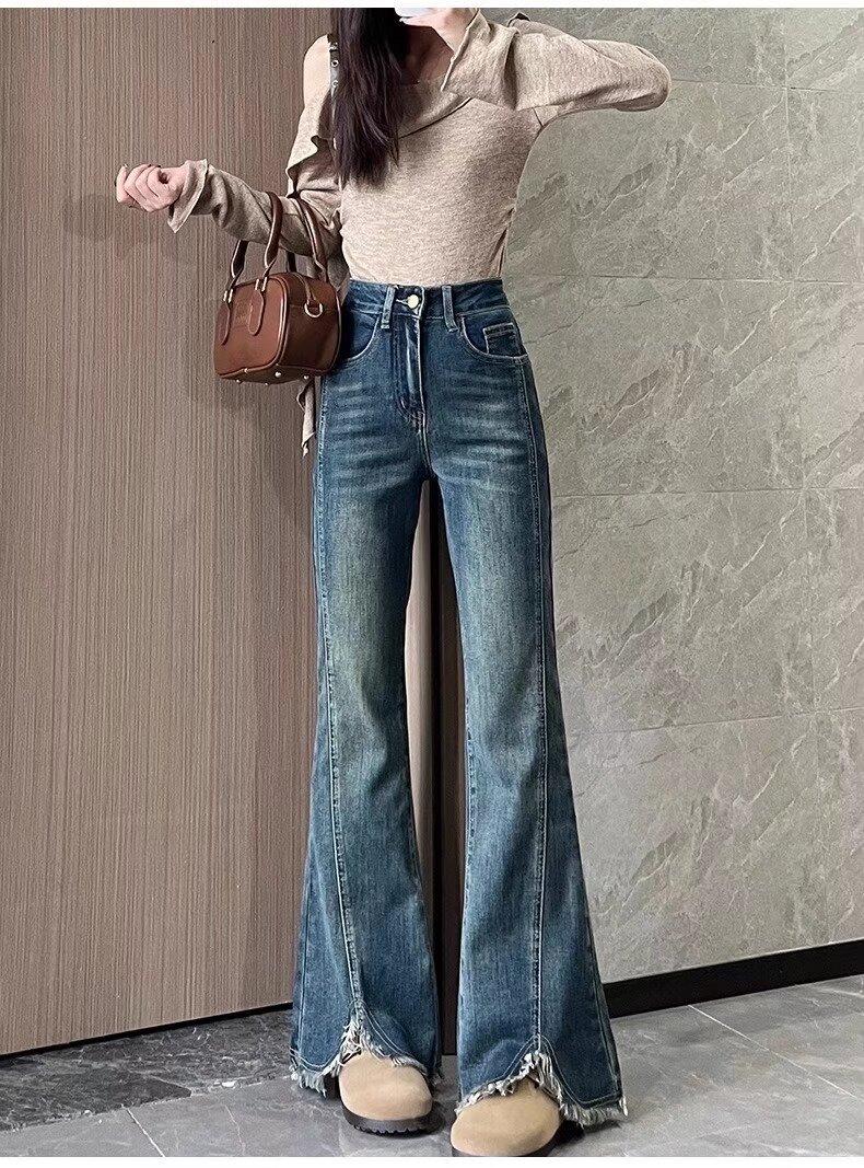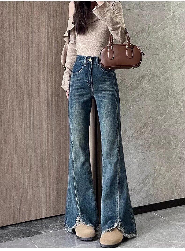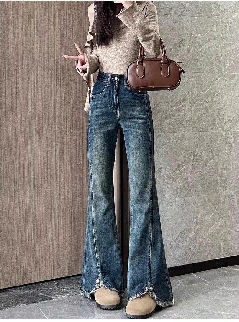 Pantalones de mezclilla micro con abertura americana para mujer, primavera, otoño e invierno 2025, nuevos, de cintura alta, adelgazantes, estilo trompeta