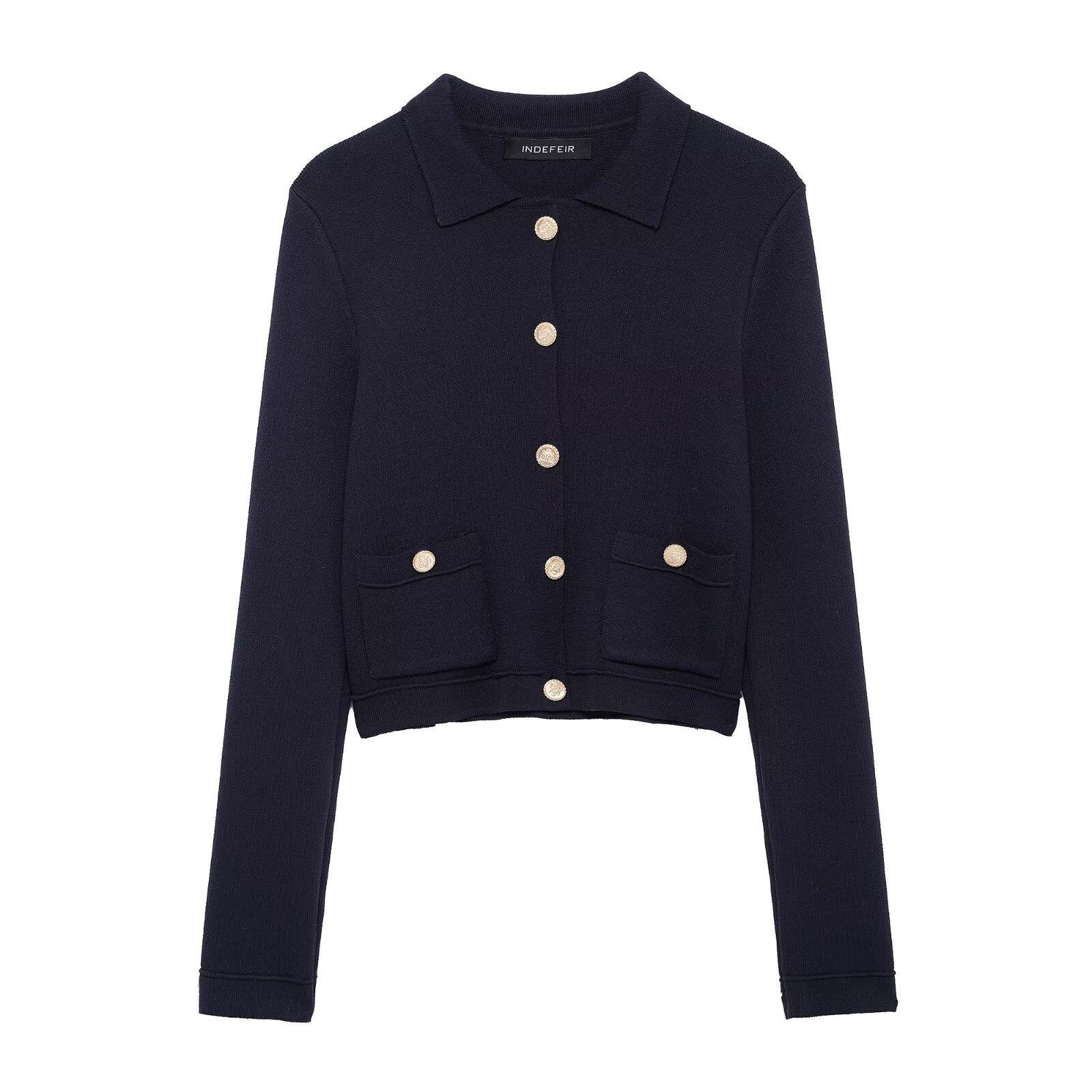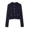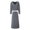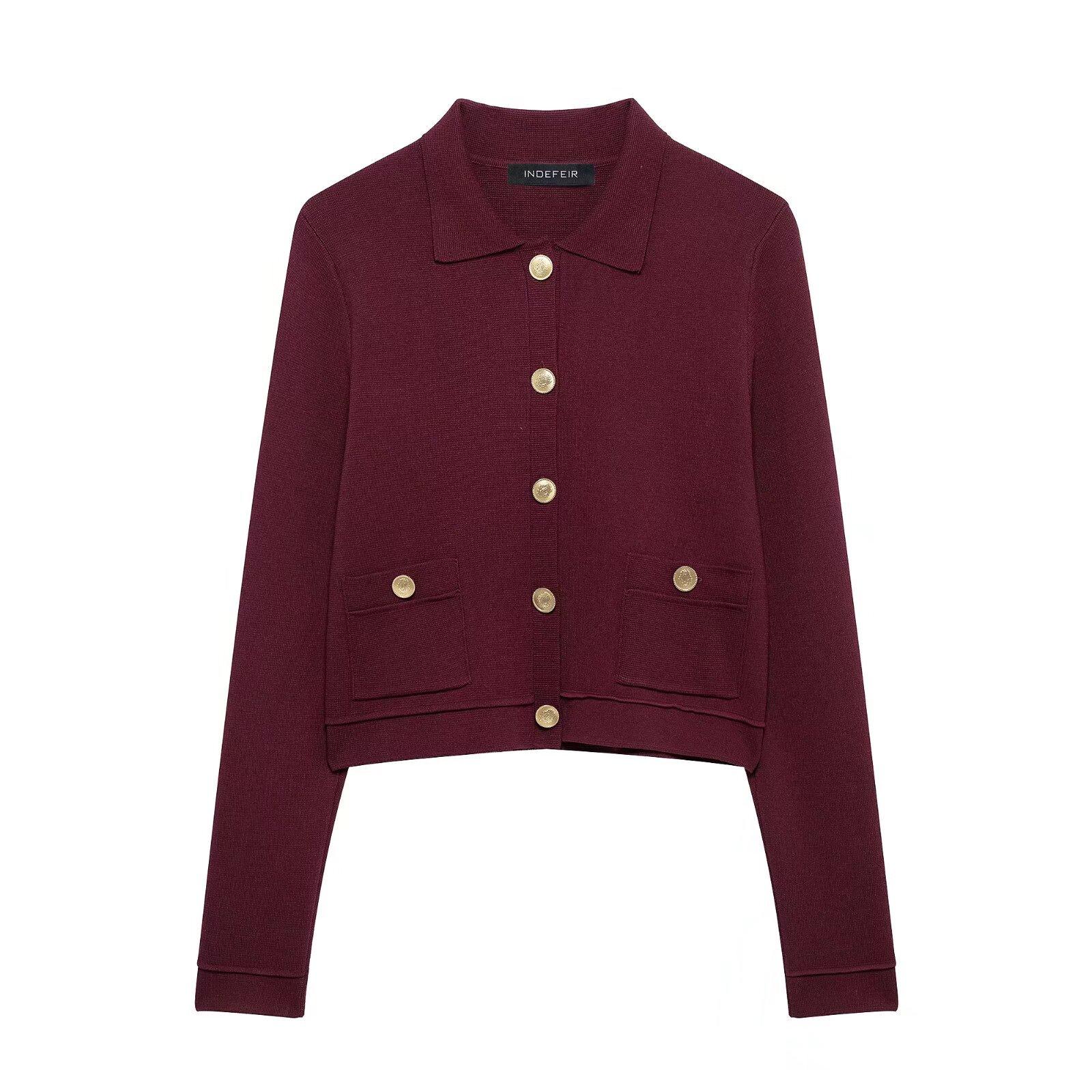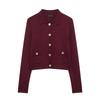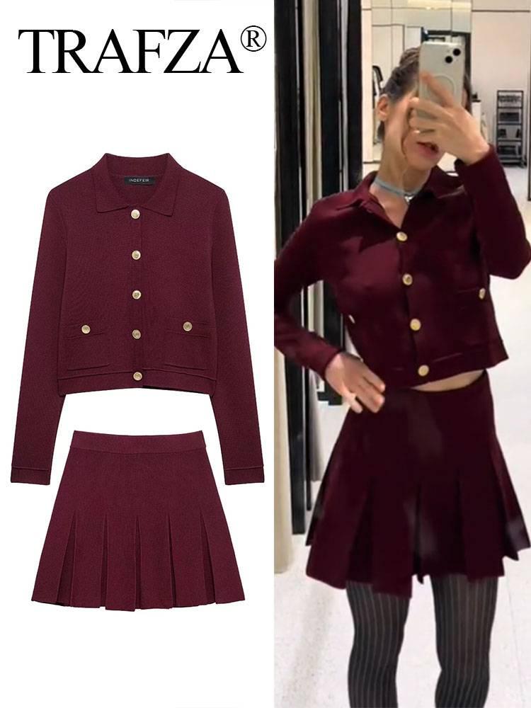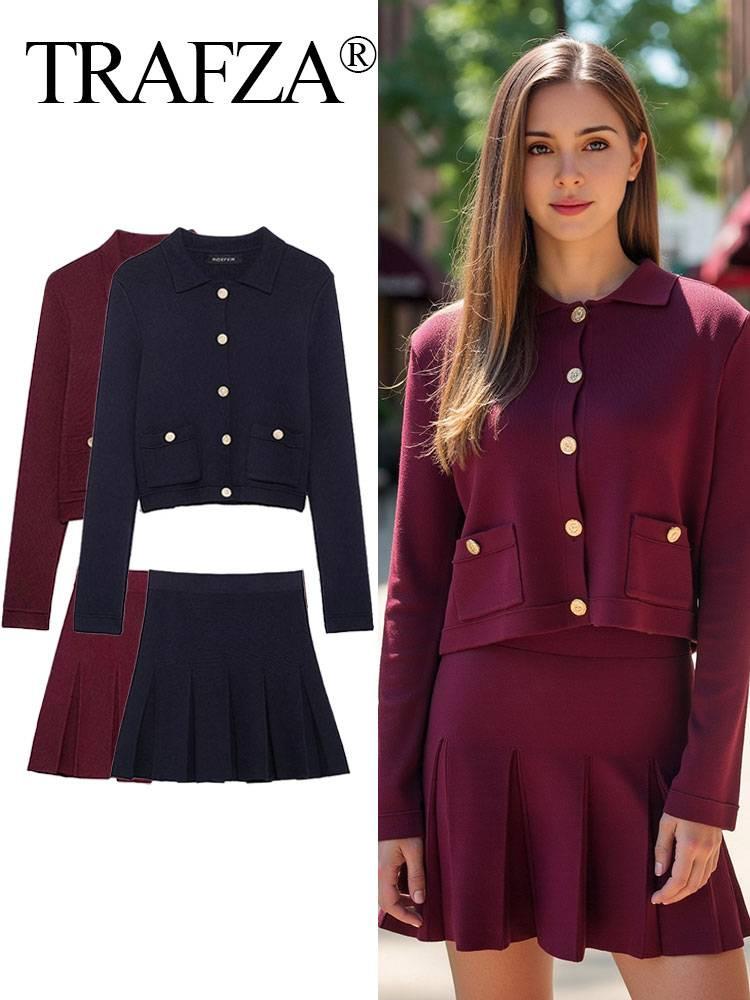 Ropa Nueva Europea y Americana Transfronteriza para Mujer Suéter de Manga Larga con Cuello Mao y Botón Dorado Cárdigan de Punto Traje de Falda Plisada
