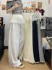 Pantalones Casuales Dulces Coreanos Falsos de Dos Piezas con Ribete de Encaje para Mujer Verano Sueltos de Pierna Recta Pierna Ancha Pantalones Largos Petites