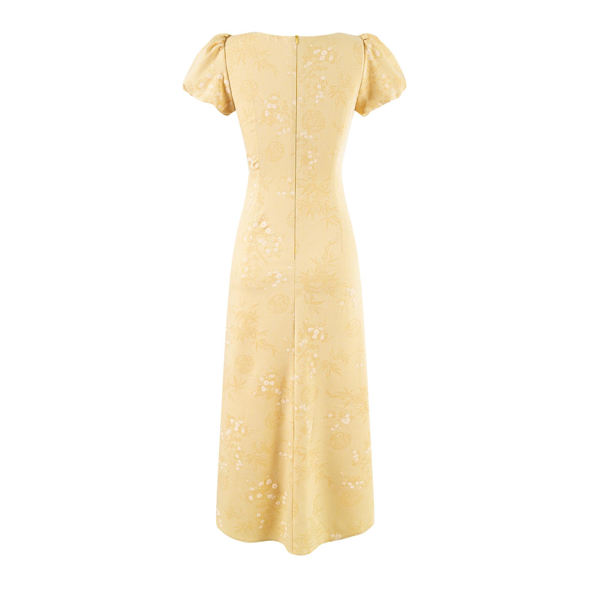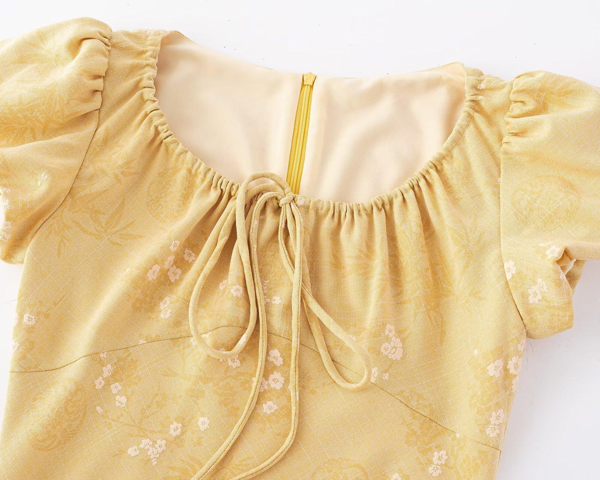 25415-Vestido Sexy de Manga Abullonada Sexy Estilo Europeo y Americano para Mujer 2025 Nuevo Estilo Cuello con Lazo Ajustado Cadera Falda Larga