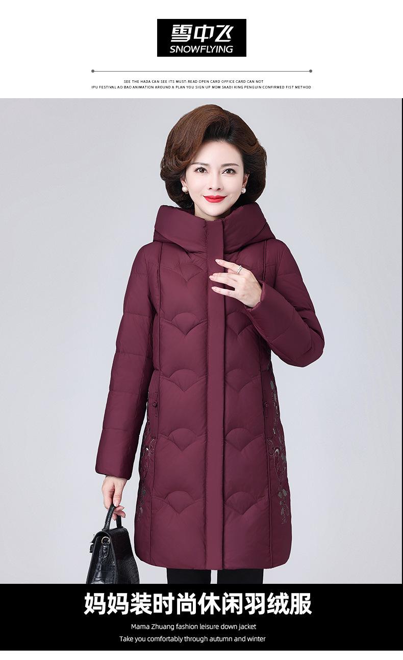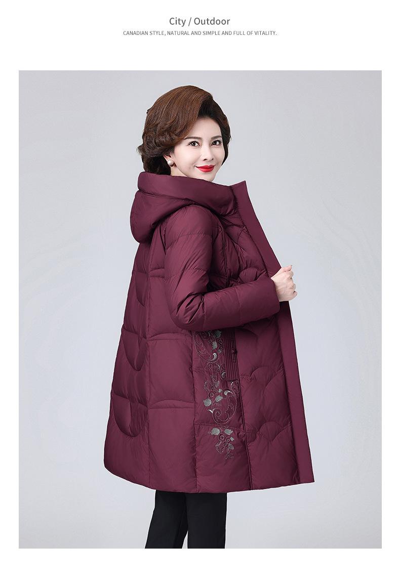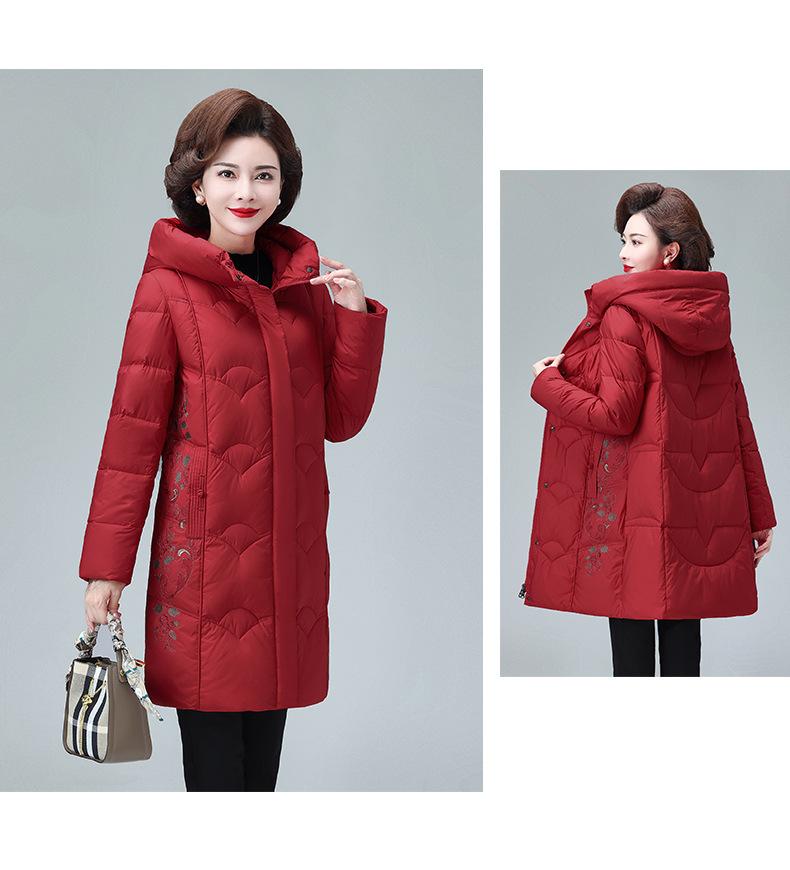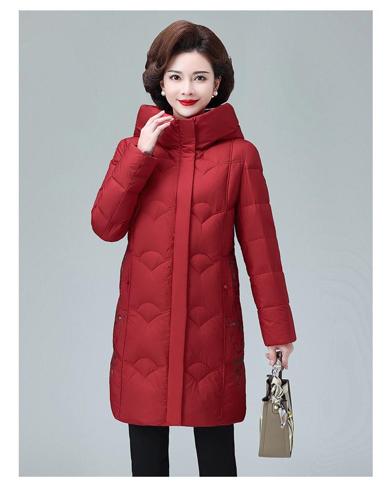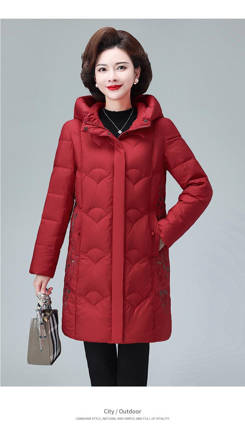 Abrigo rojo de plumón para nieve para mujer largo 2024 nuevo invierno bordado moda para mujeres de mediana edad y mayores