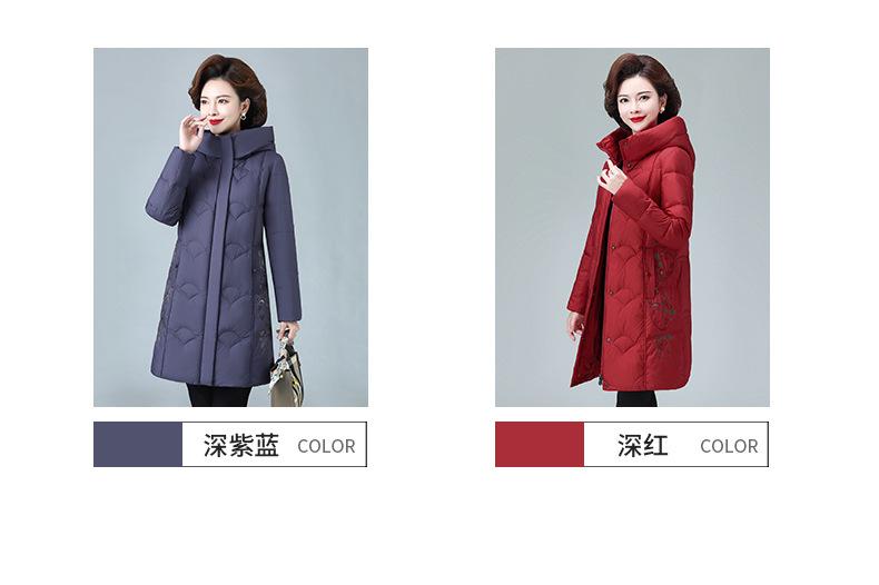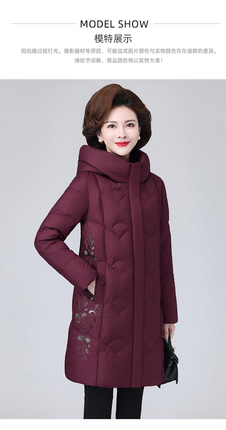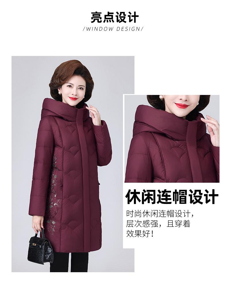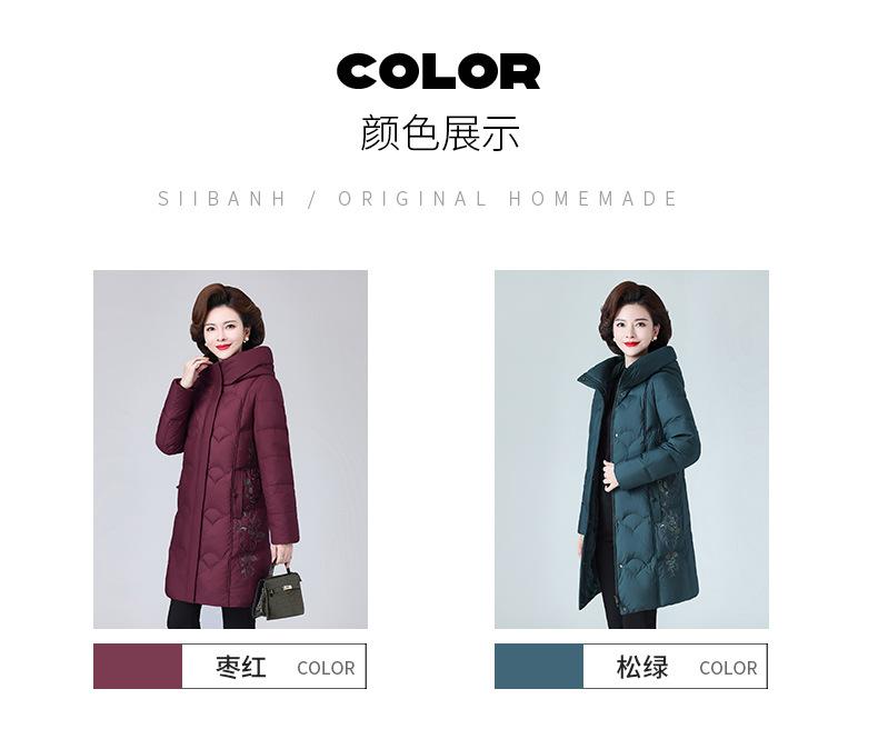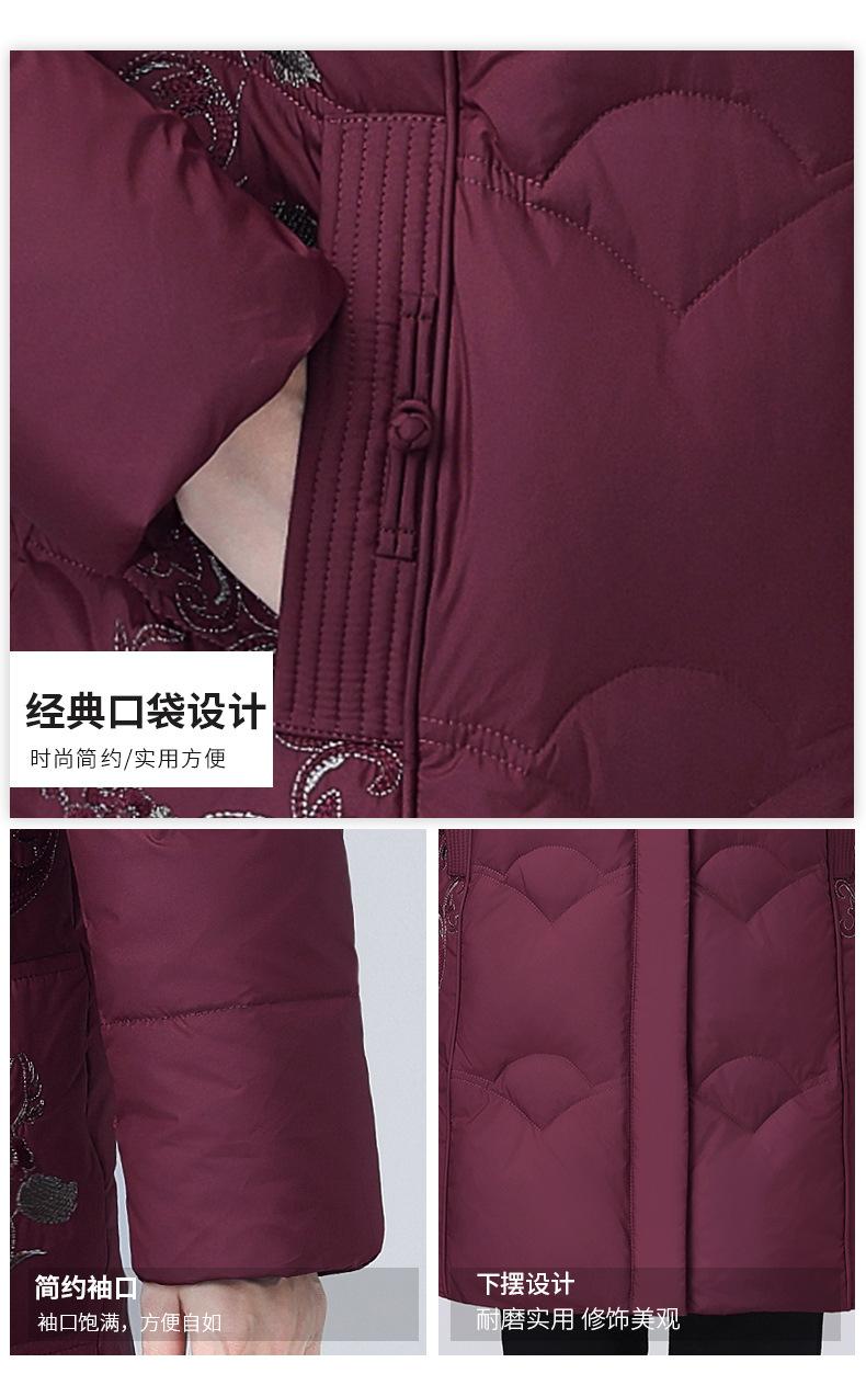 Abrigo rojo de plumón para nieve para mujer largo 2024 nuevo invierno bordado moda para mujeres de mediana edad y mayores
