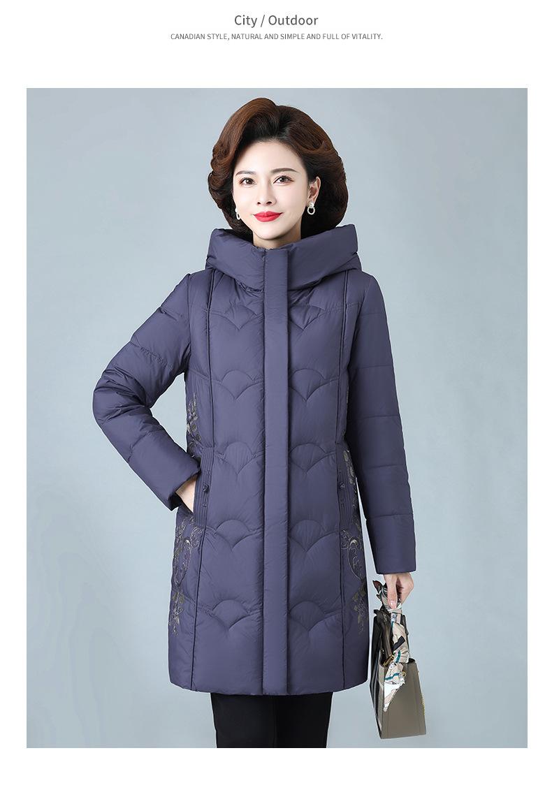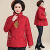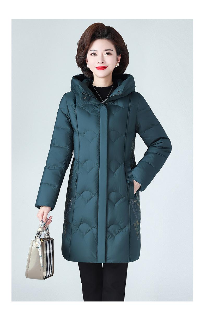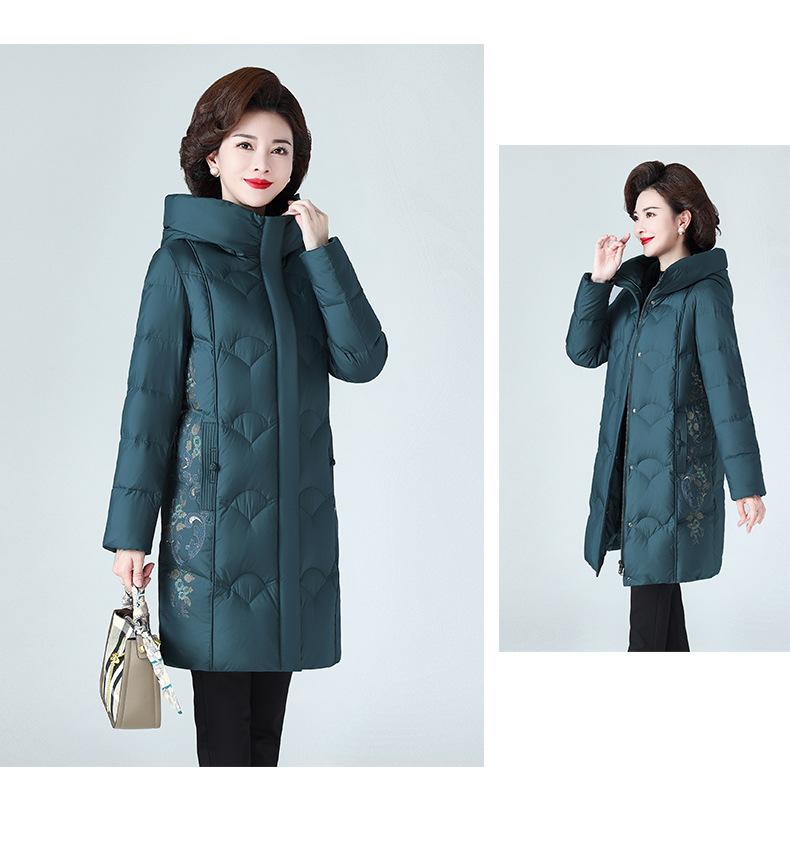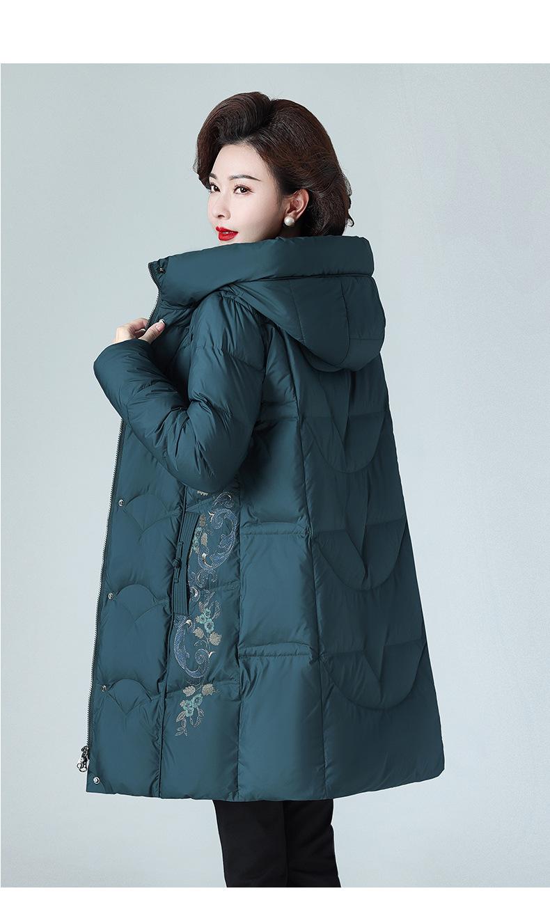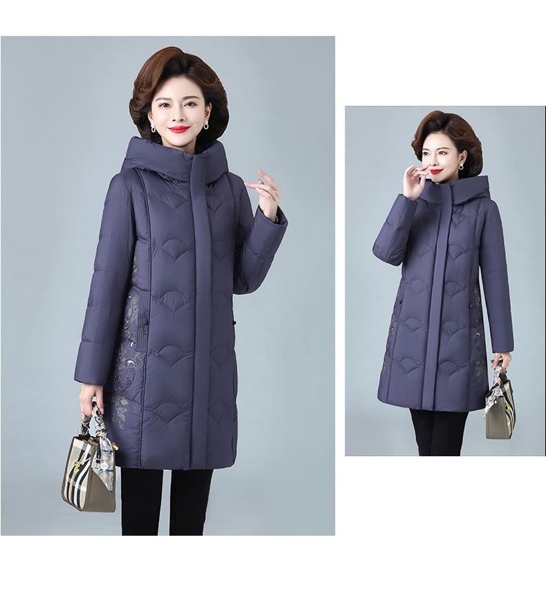 Abrigo rojo de plumón para nieve para mujer largo 2024 nuevo invierno bordado moda para mujeres de mediana edad y mayores