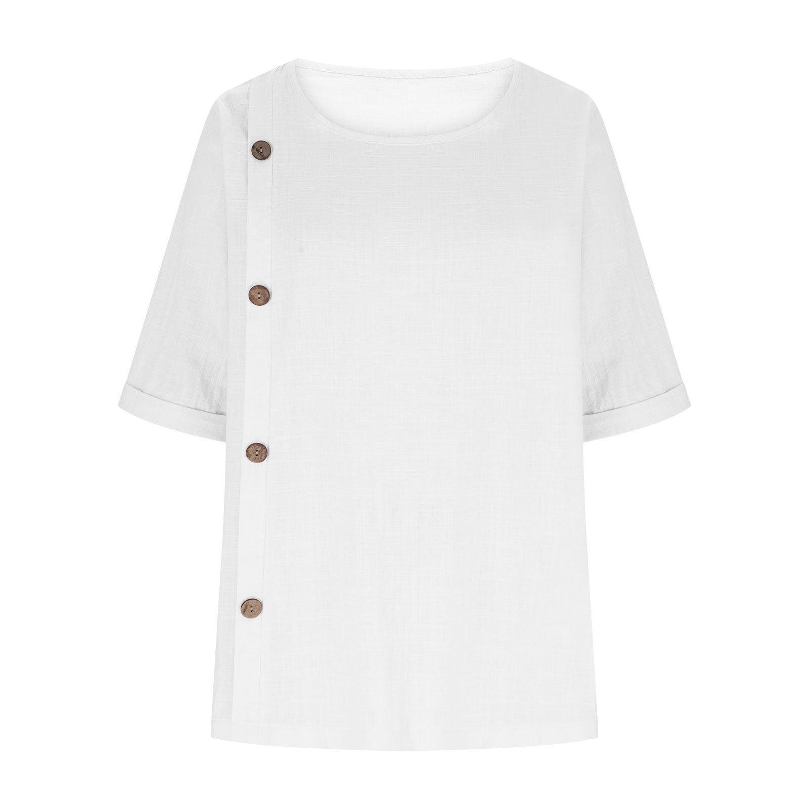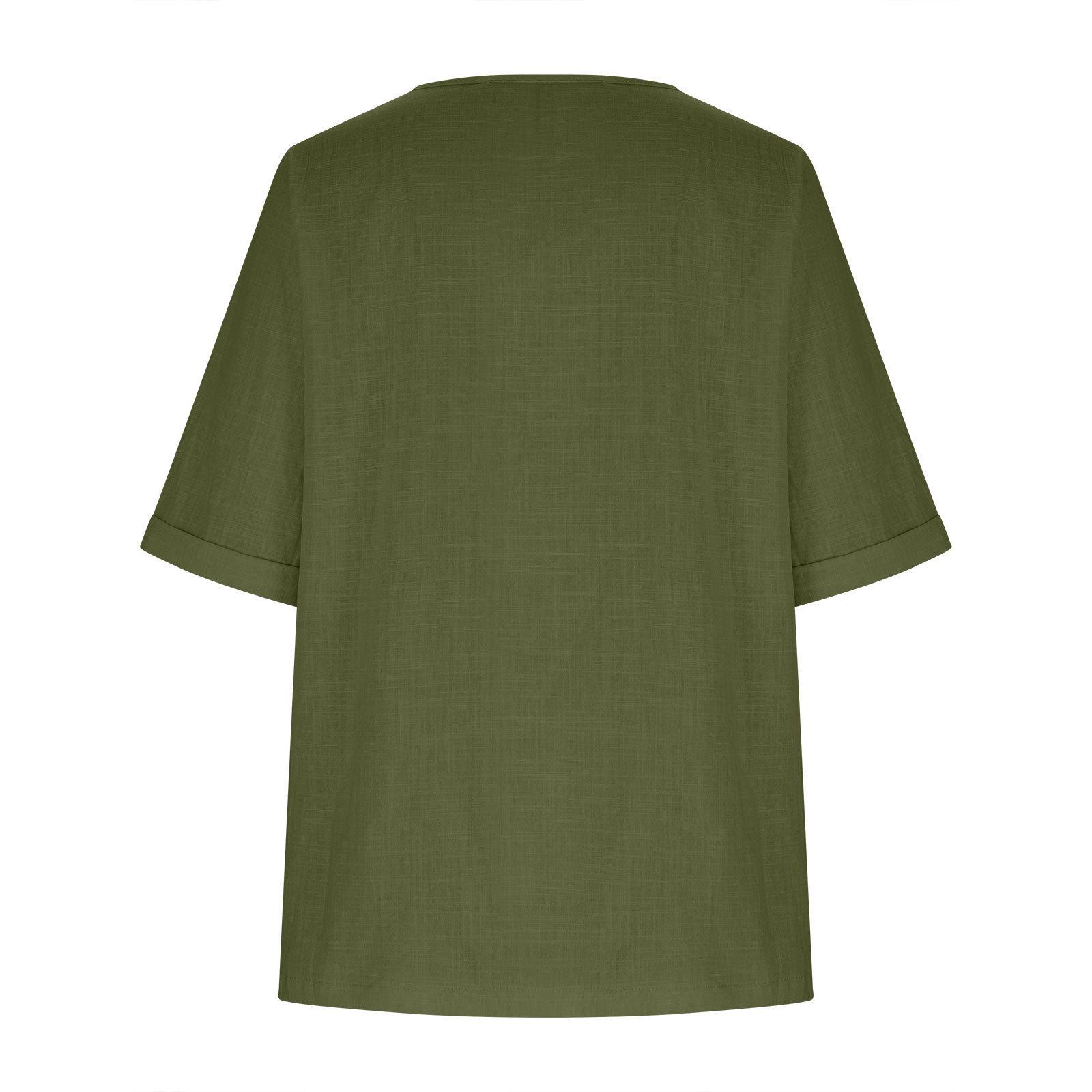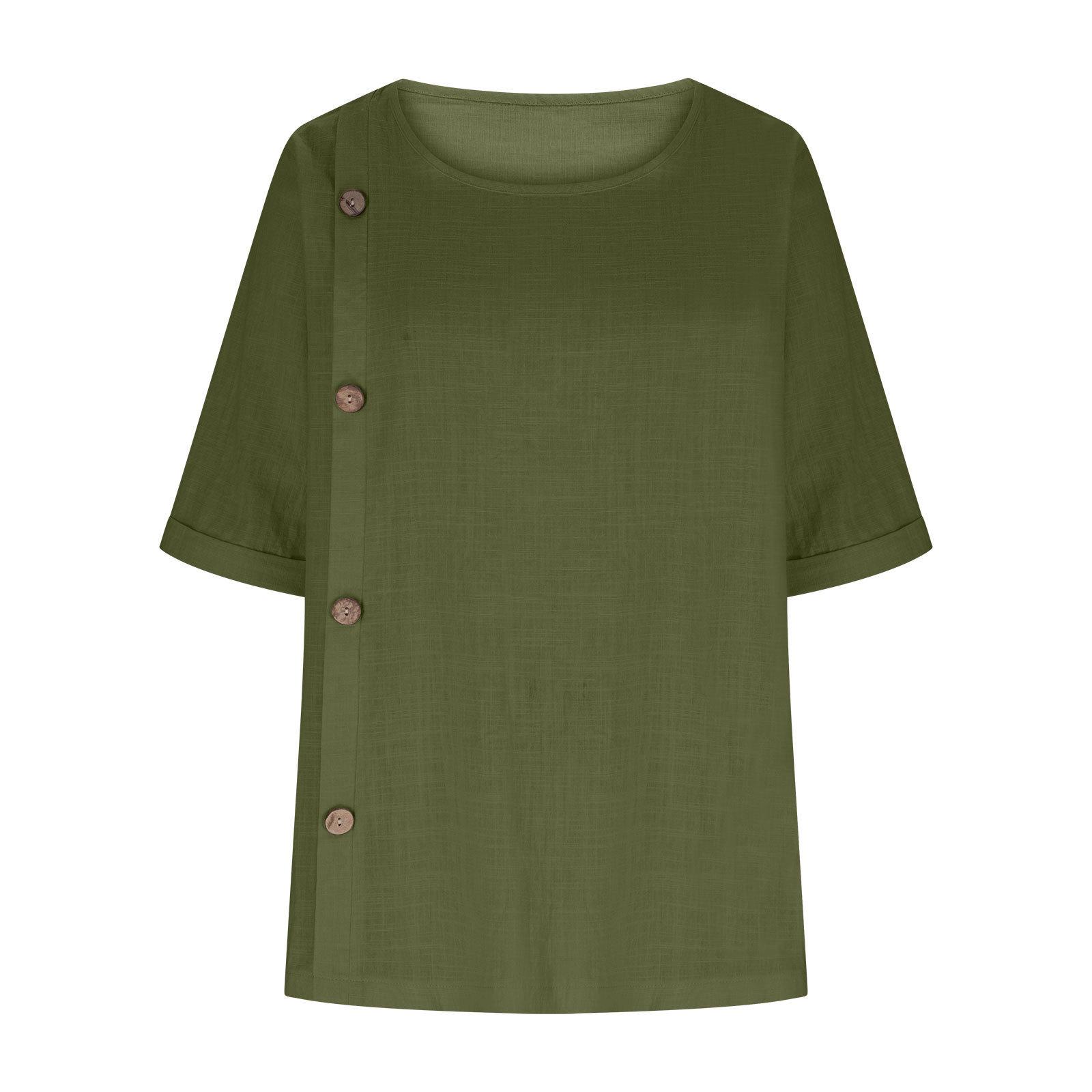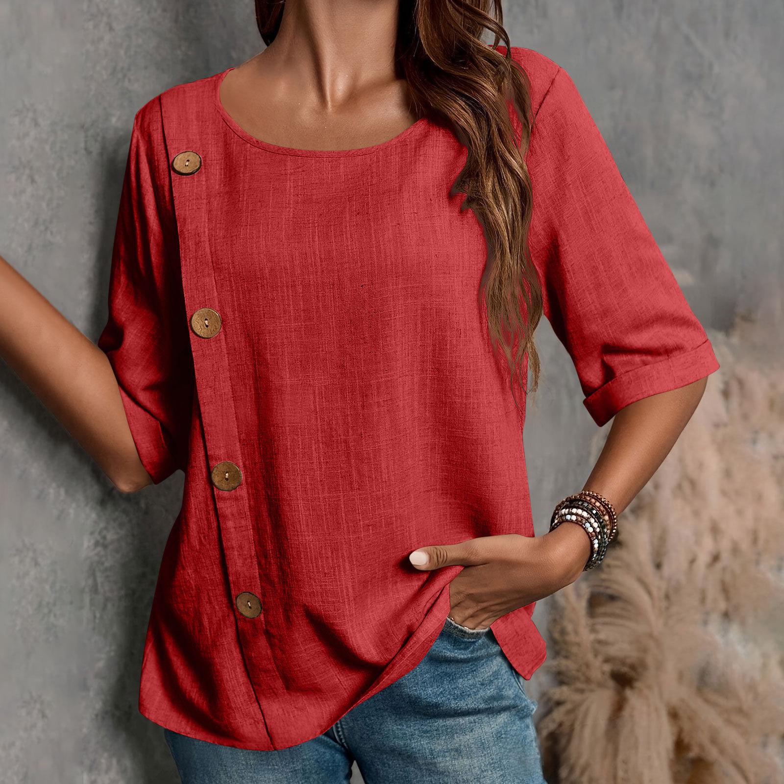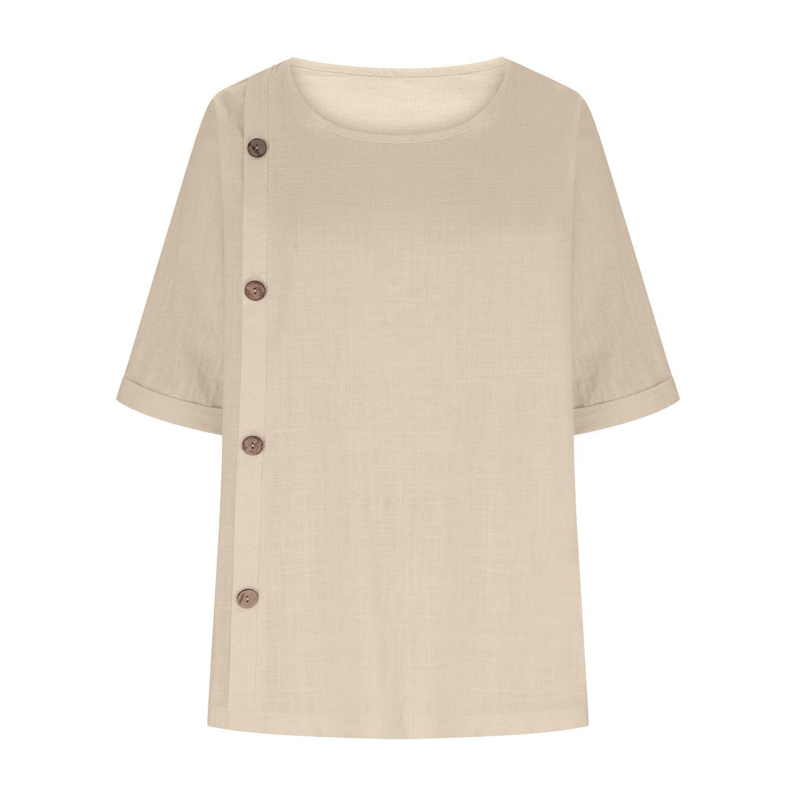 2025 Europeo y Americano Transfronterizo Nuevo Algodón y Lino Botón Moda Casual Tops de Mujer