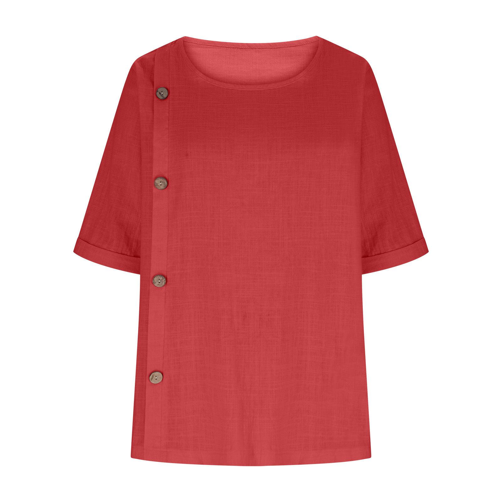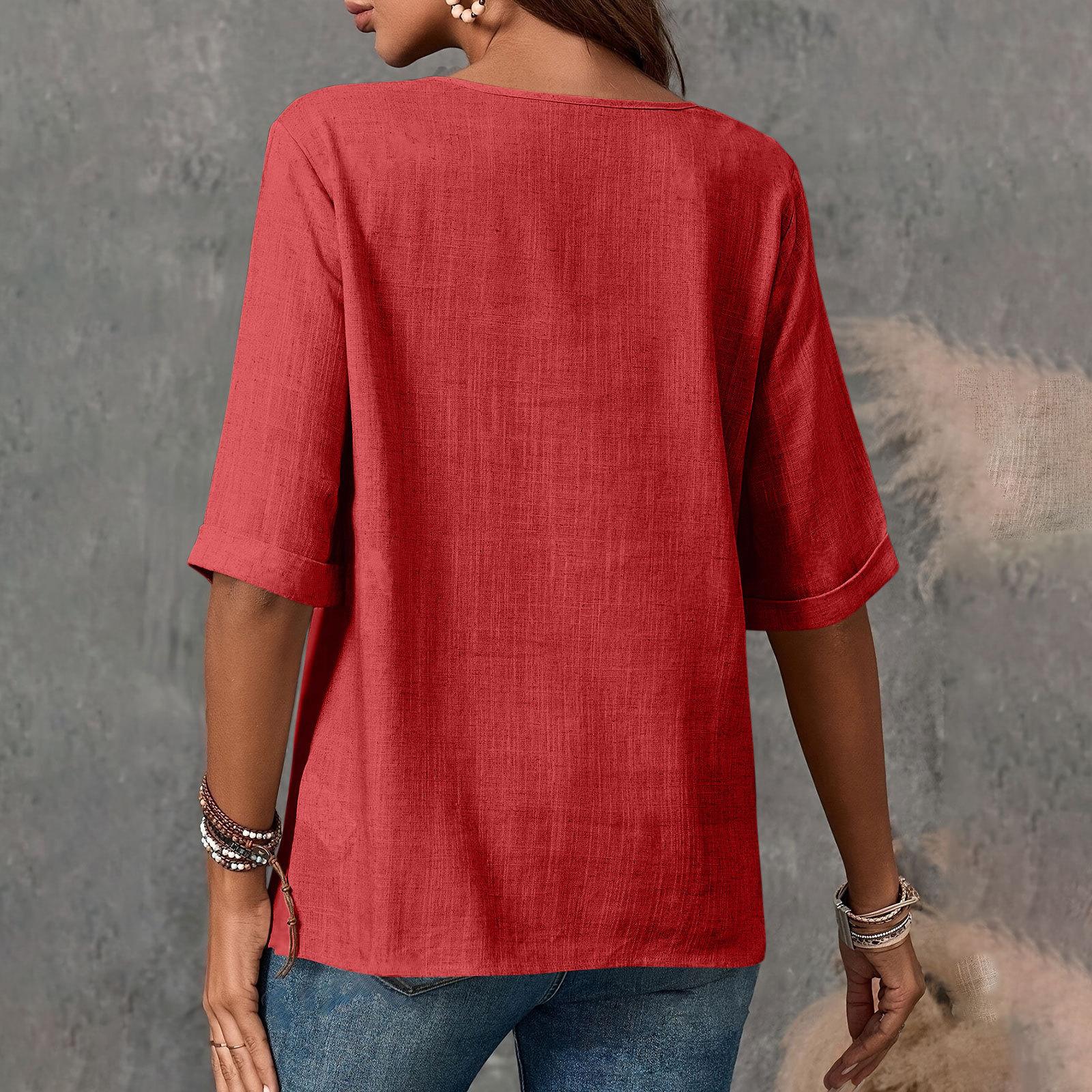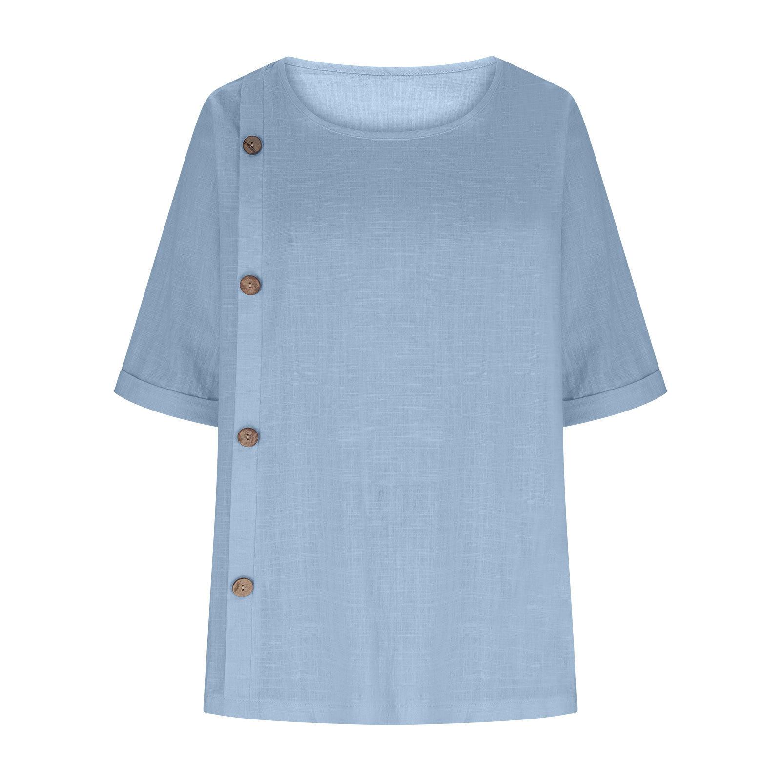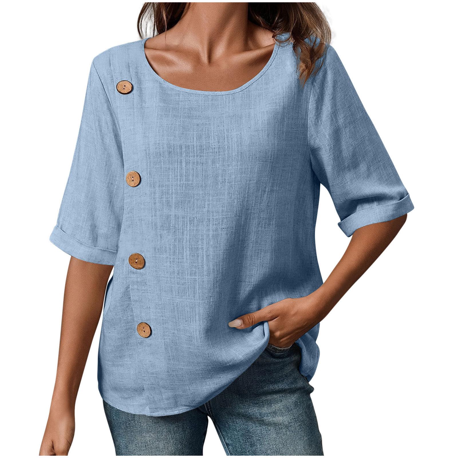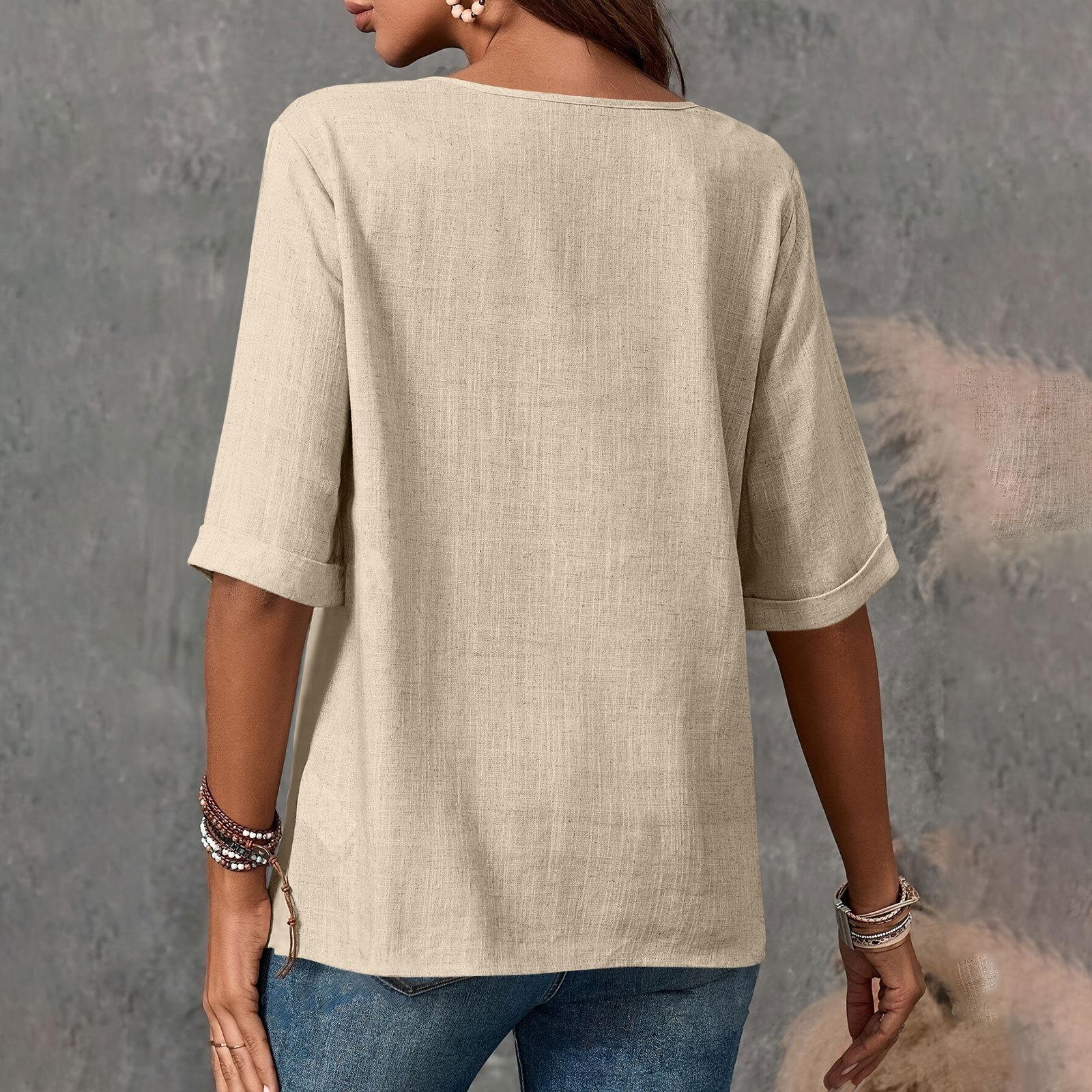 2025 Europeo y Americano Transfronterizo Nuevo Top Casual de Moda con Botones de Algodón Lino para Mujer