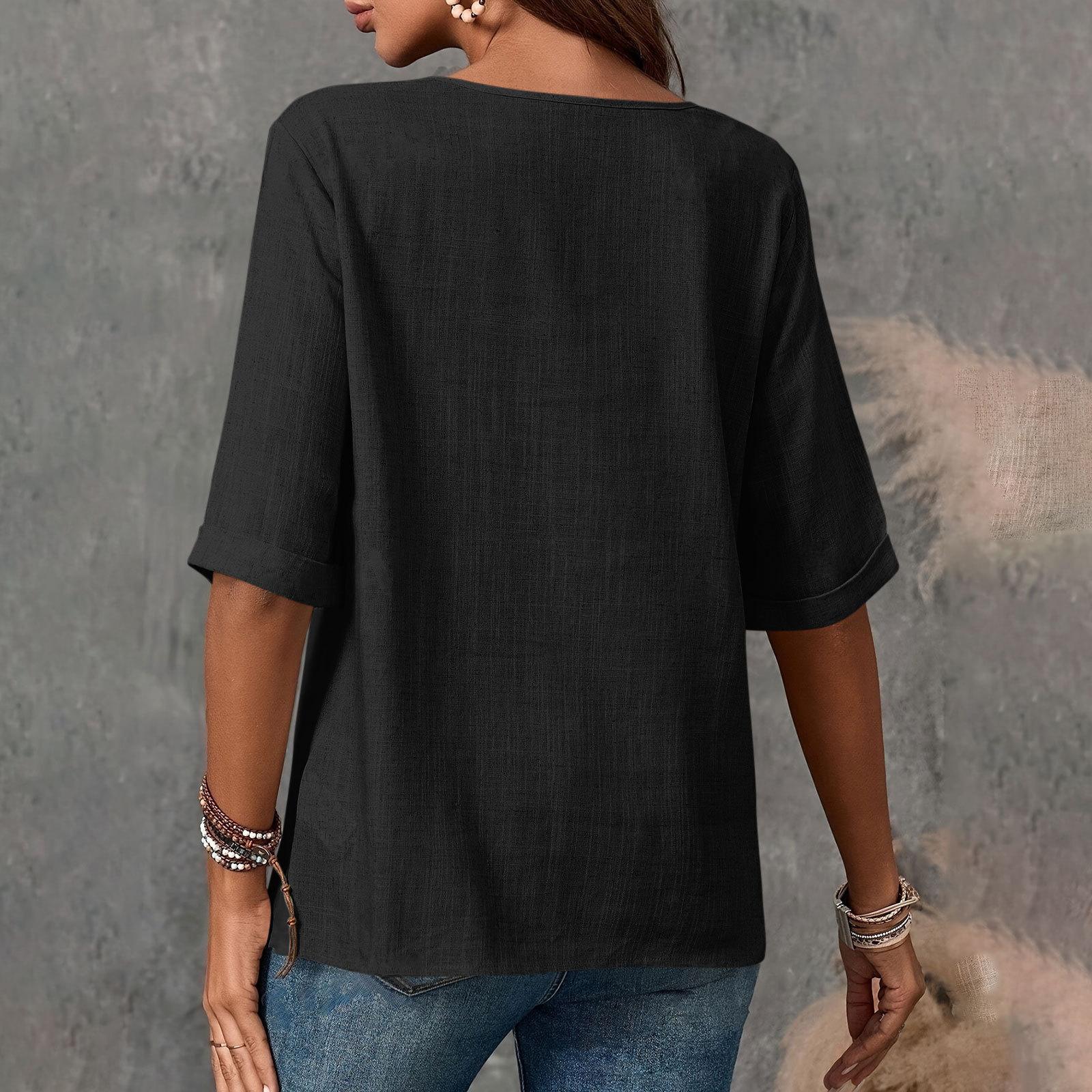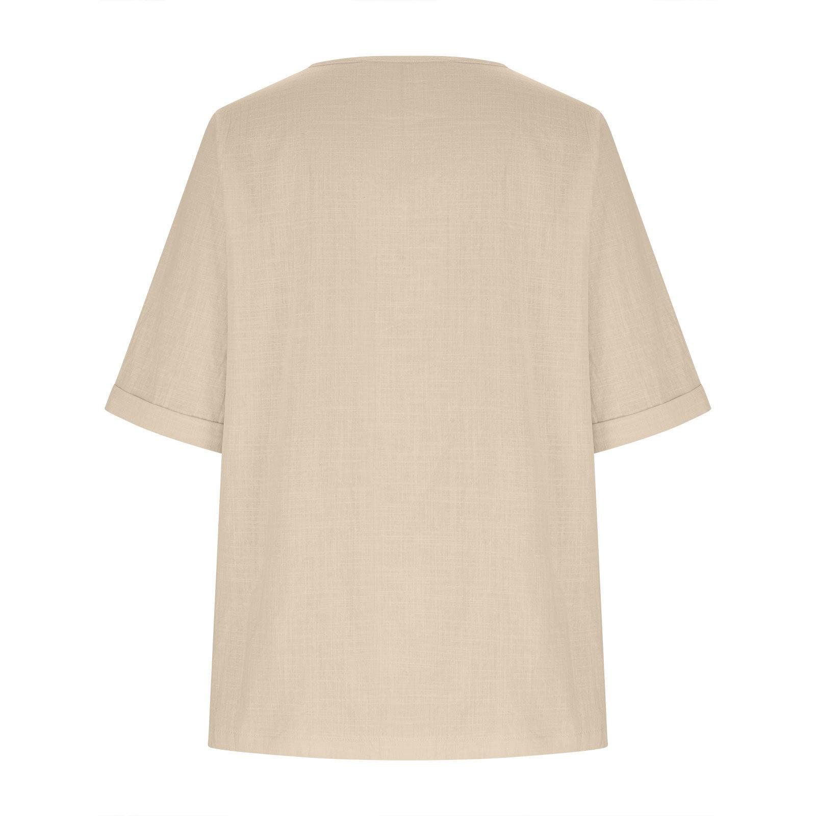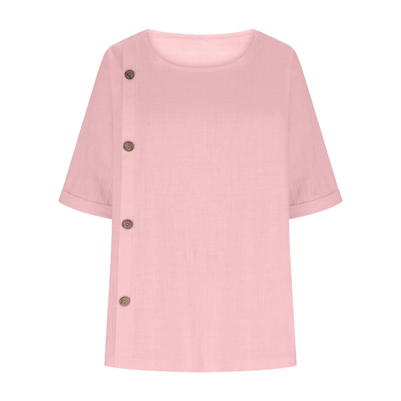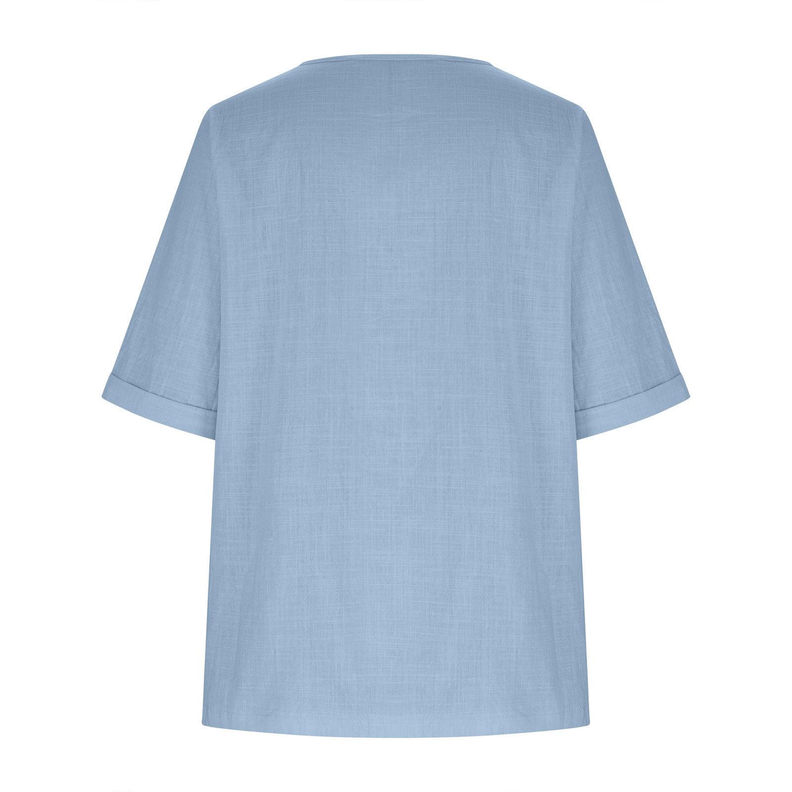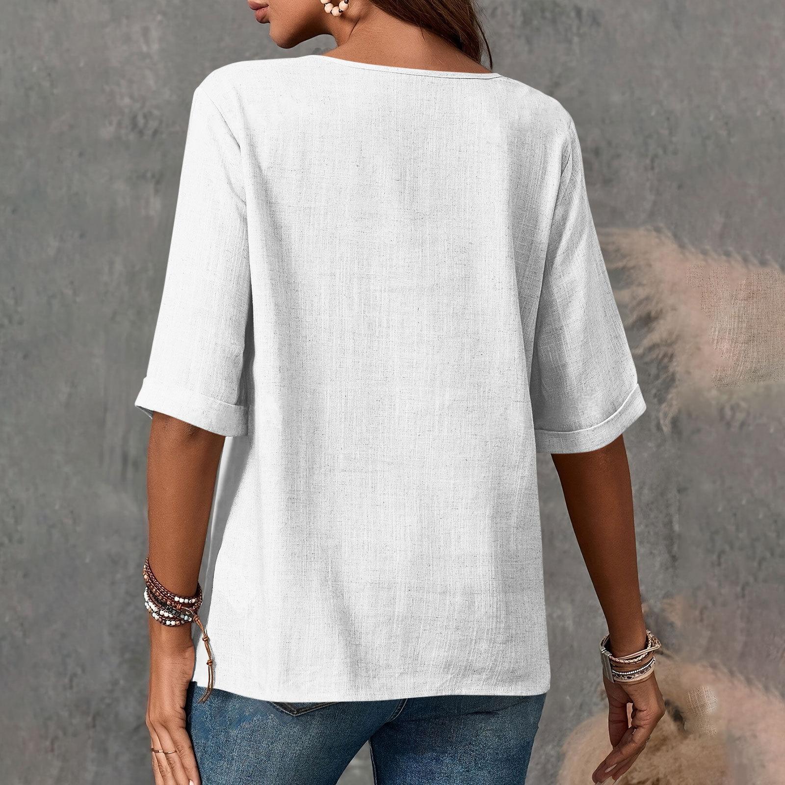 2025 Europeo y Americano Transfronterizo Nuevo Top Casual de Moda con Botones de Algodón Lino para Mujer